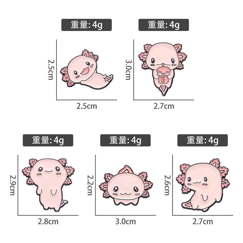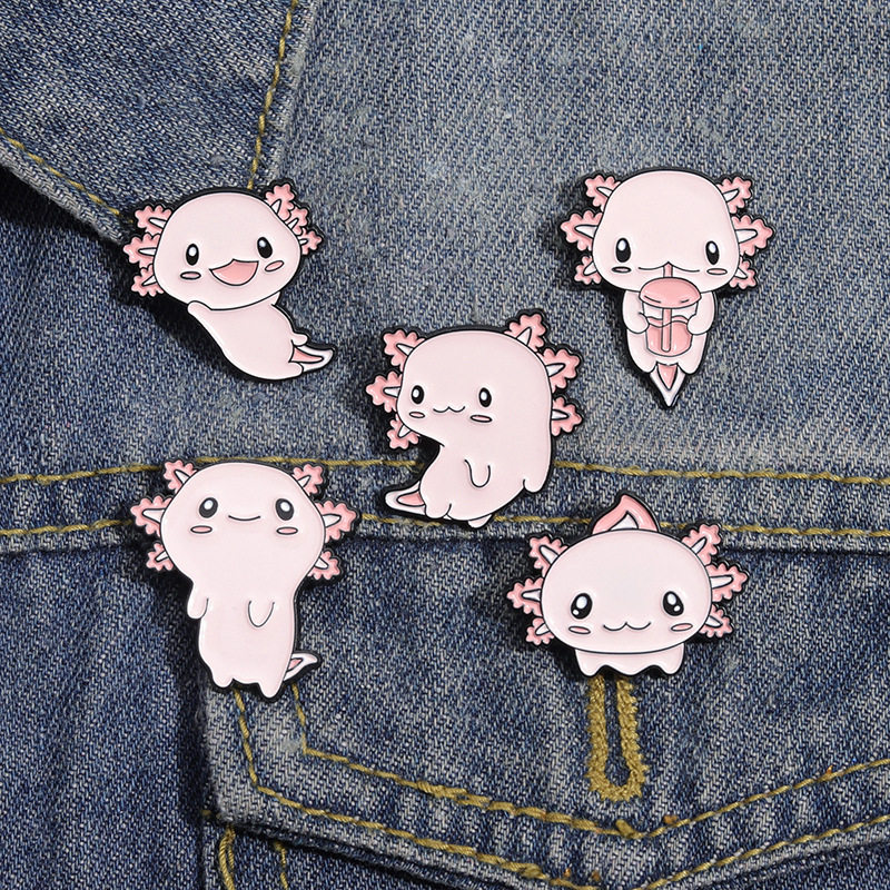Cute cartoon salamander-shaped animal alloy brooches, creative anime-themed badges, clothing, bags, and accessories.