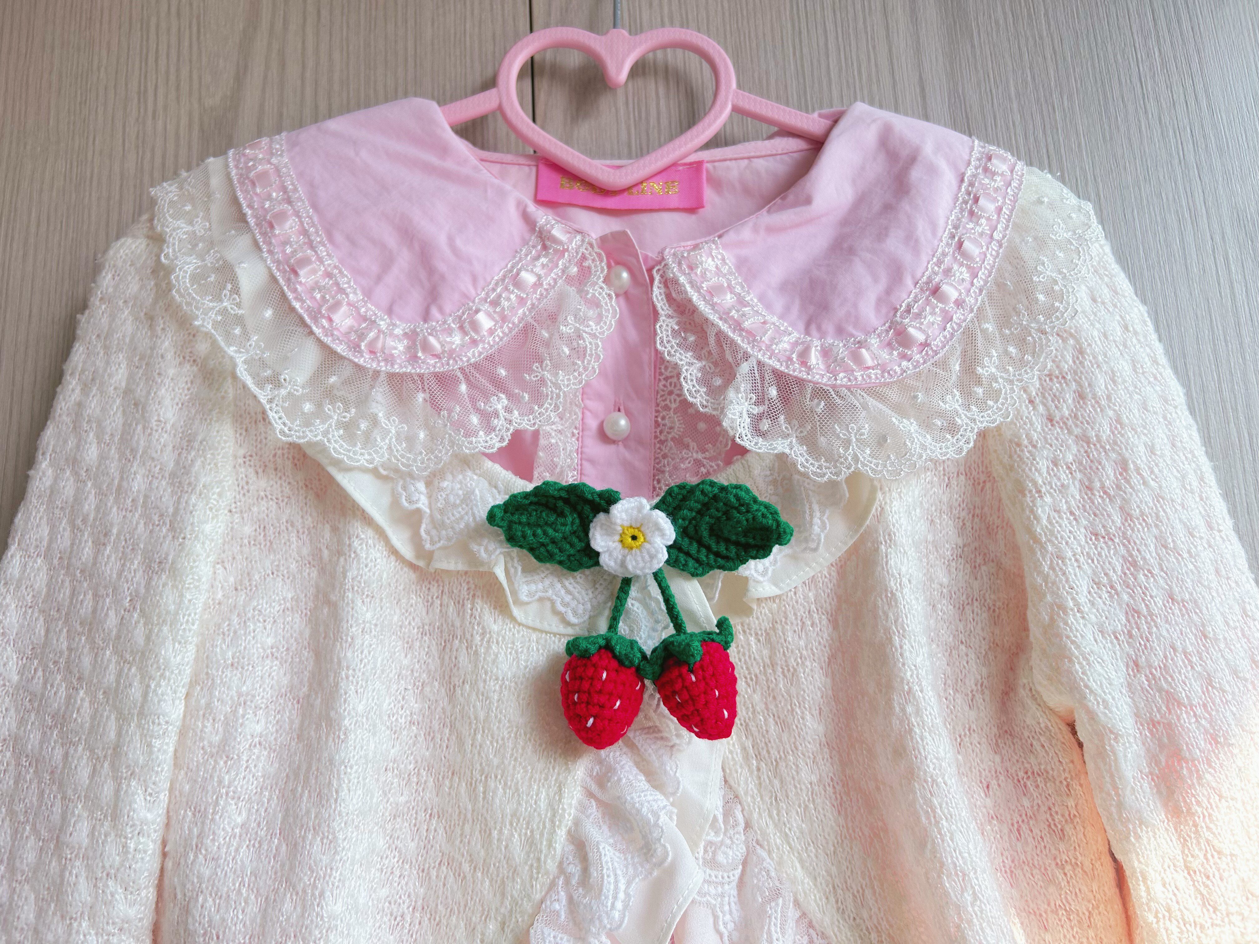 可爱甜系毛线钩针红色草莓别针胸针复古vintage风格毛衣开衫配饰 [Original Page Link]
