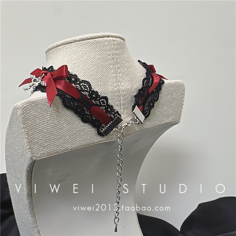 「萝莉暗黑系」哥特风黑红朋克系手作颈圈原宿y2k项炼choker颈带 [Original Page Link]