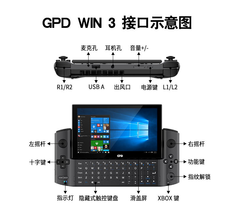 Used GPD Win3 handheld gaming tablet PC, mini portable high-performance game console, single-player handheld.