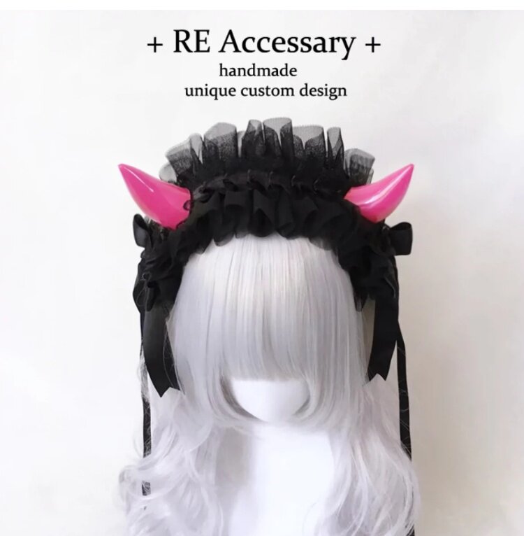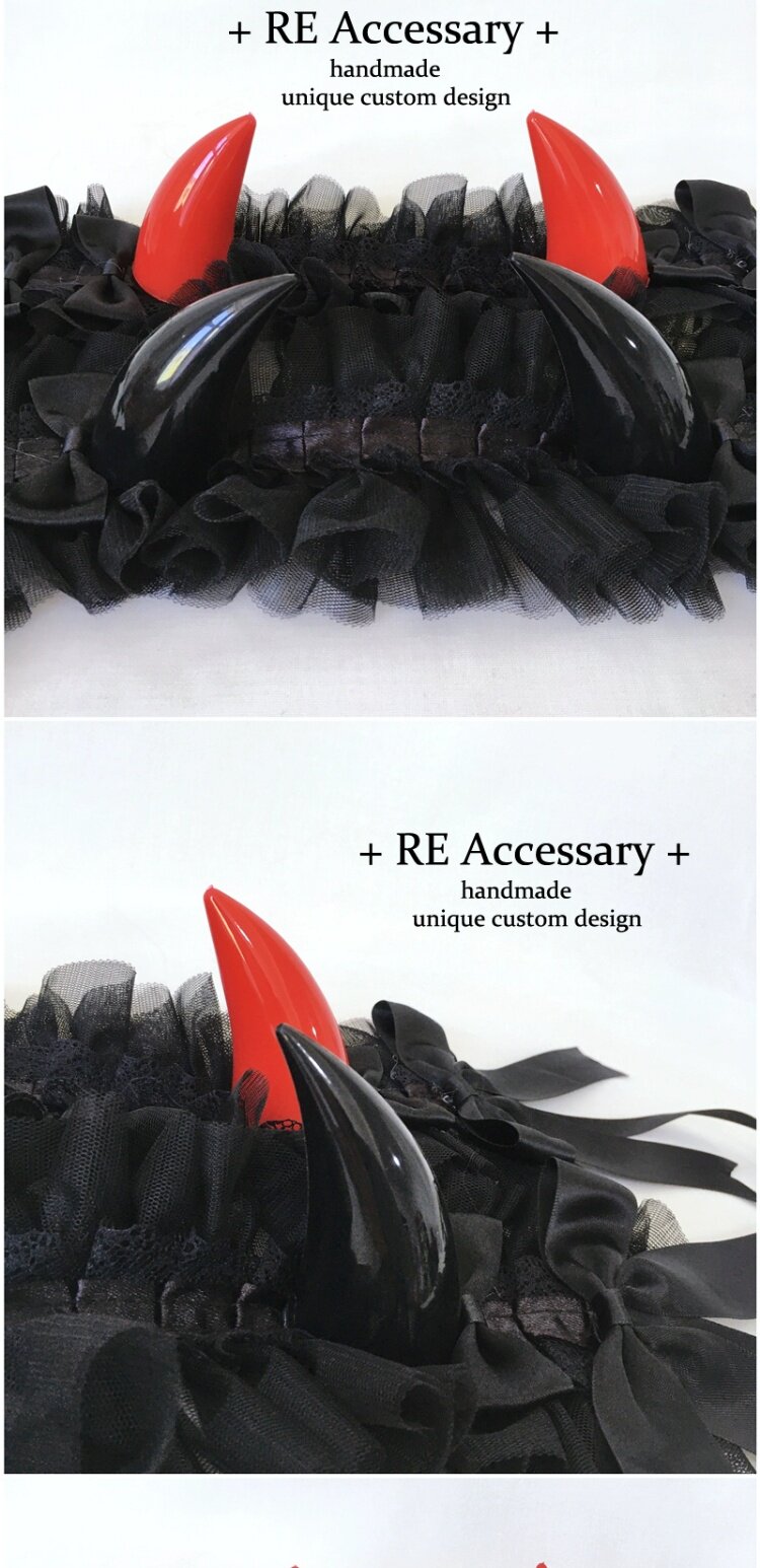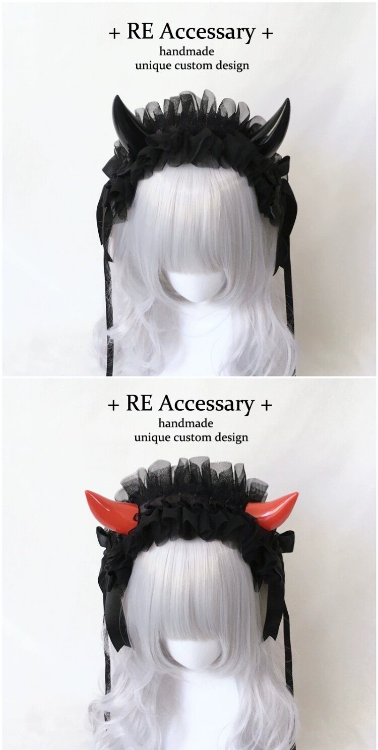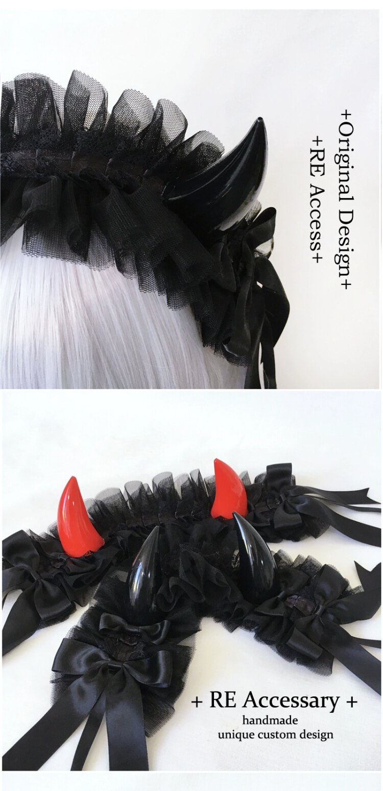 浮梦原创手作LOLITA恶魔角哥特发带cos多色多层蕾丝kc头饰亚文化 [Original Page Link]