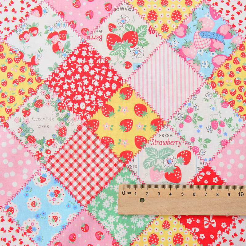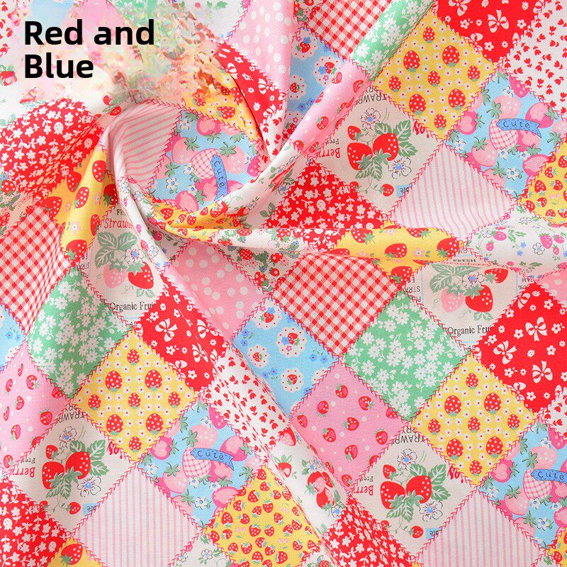 DIY cotton clothing, book, and bag crafts; cotton fabric with a pastoral strawberry floral patchwork plaid pattern.