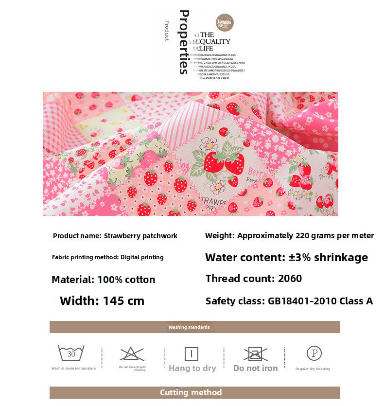 纯棉织物手工DIY服装书衣服袋纯棉织物棉花田园草莓花拼接格纹 [Original Page Link]