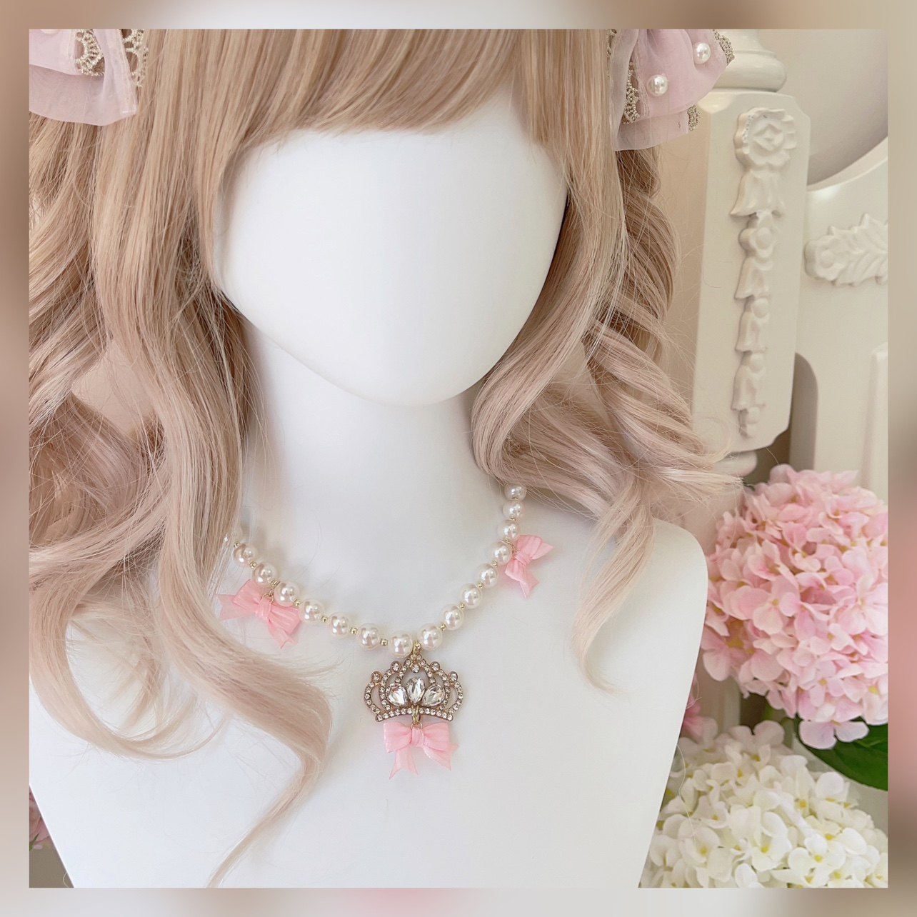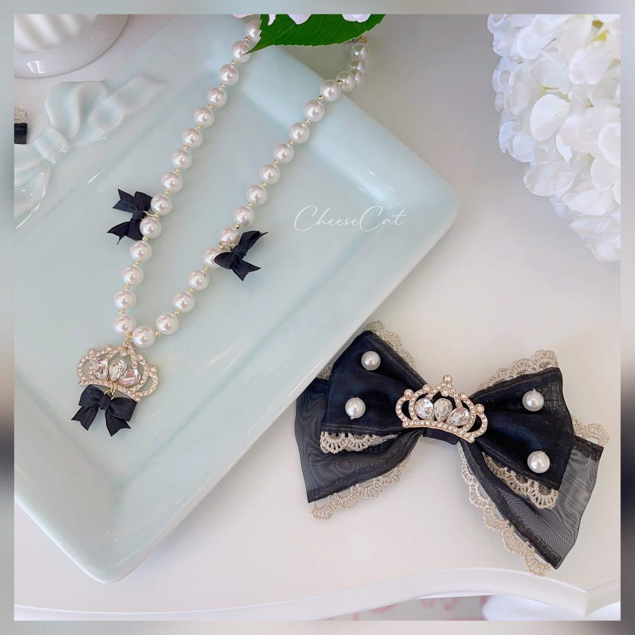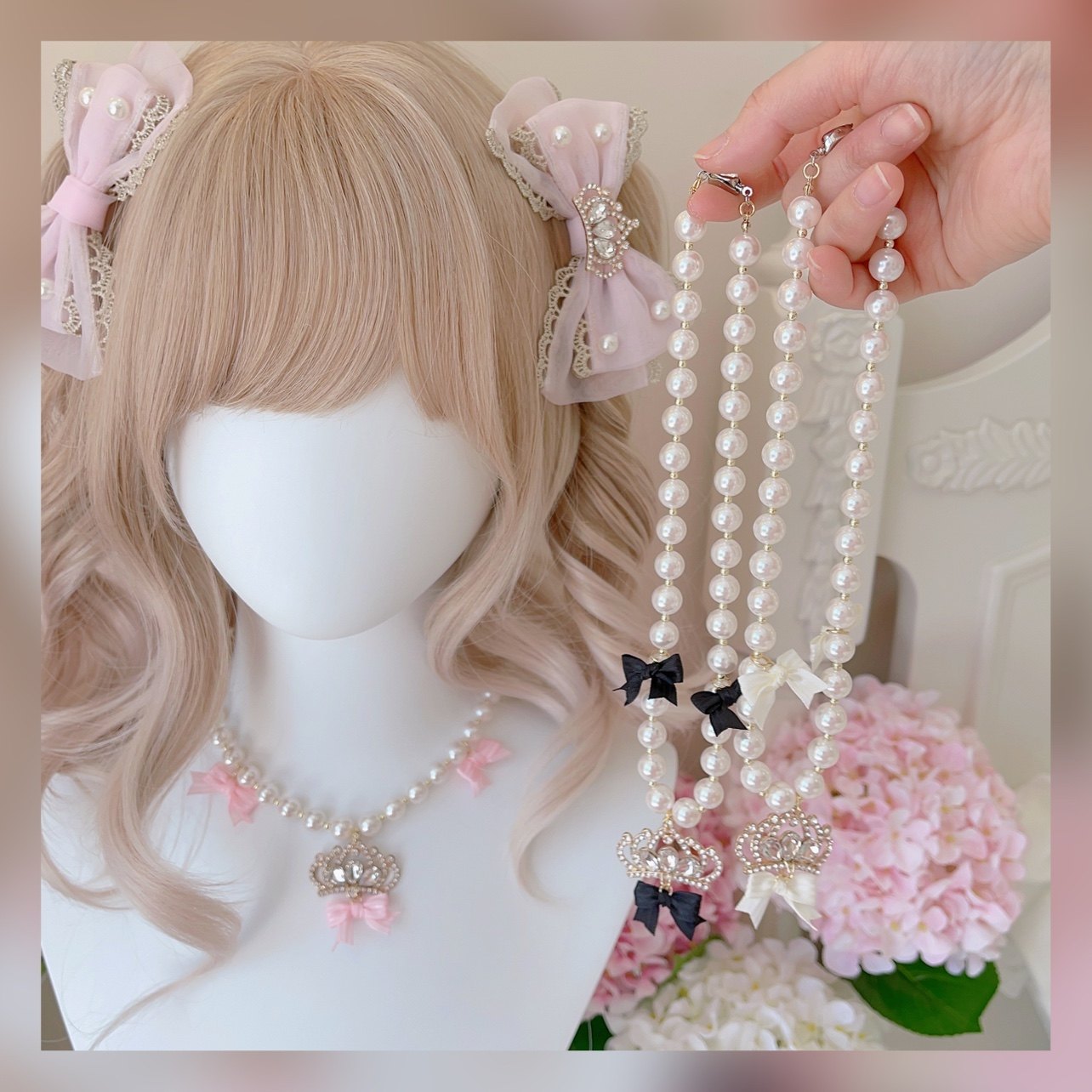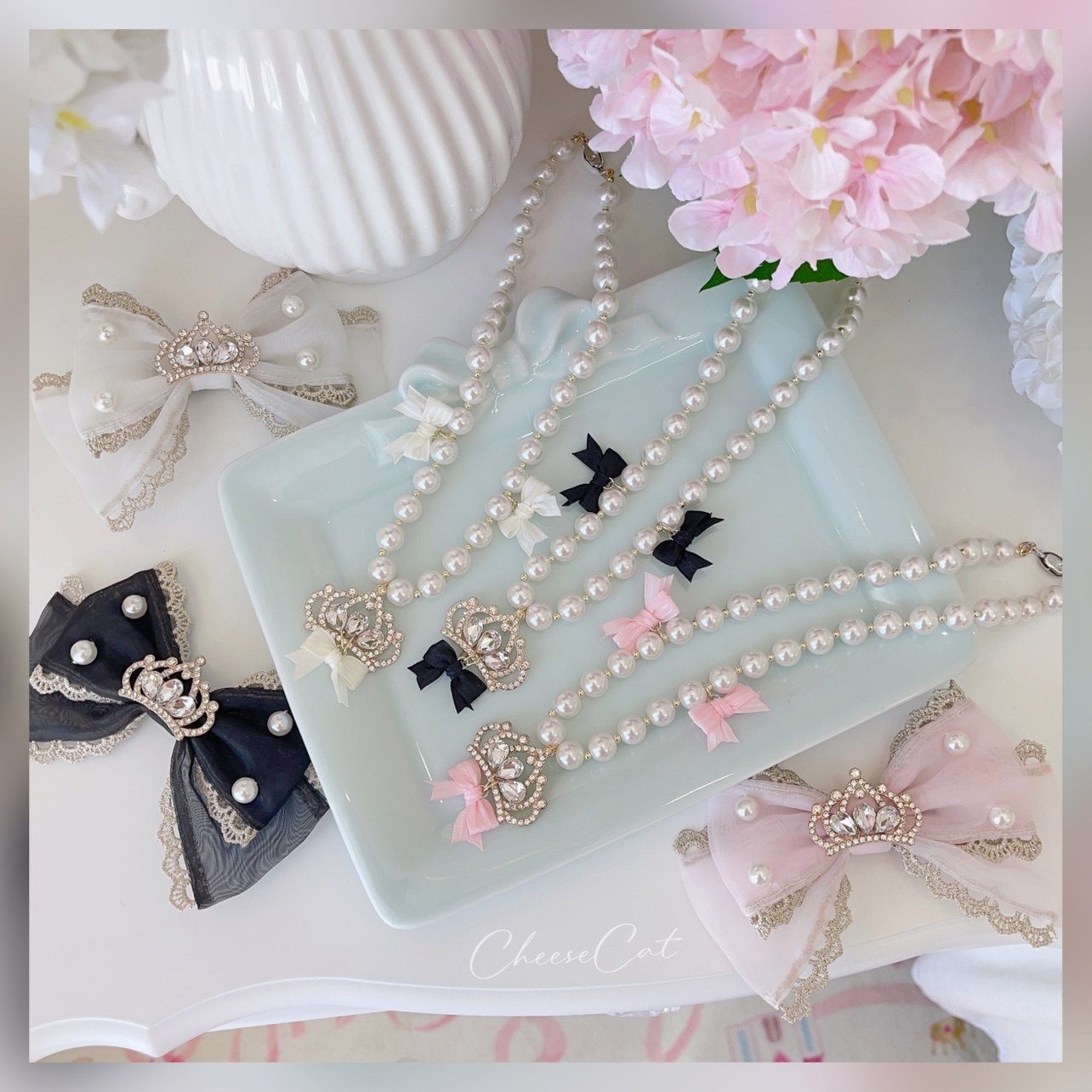 【Cheese Cat Handmade】Classic Doll Dreamy Bow Crown Lolita Accessory Necklace Pearl Necklace