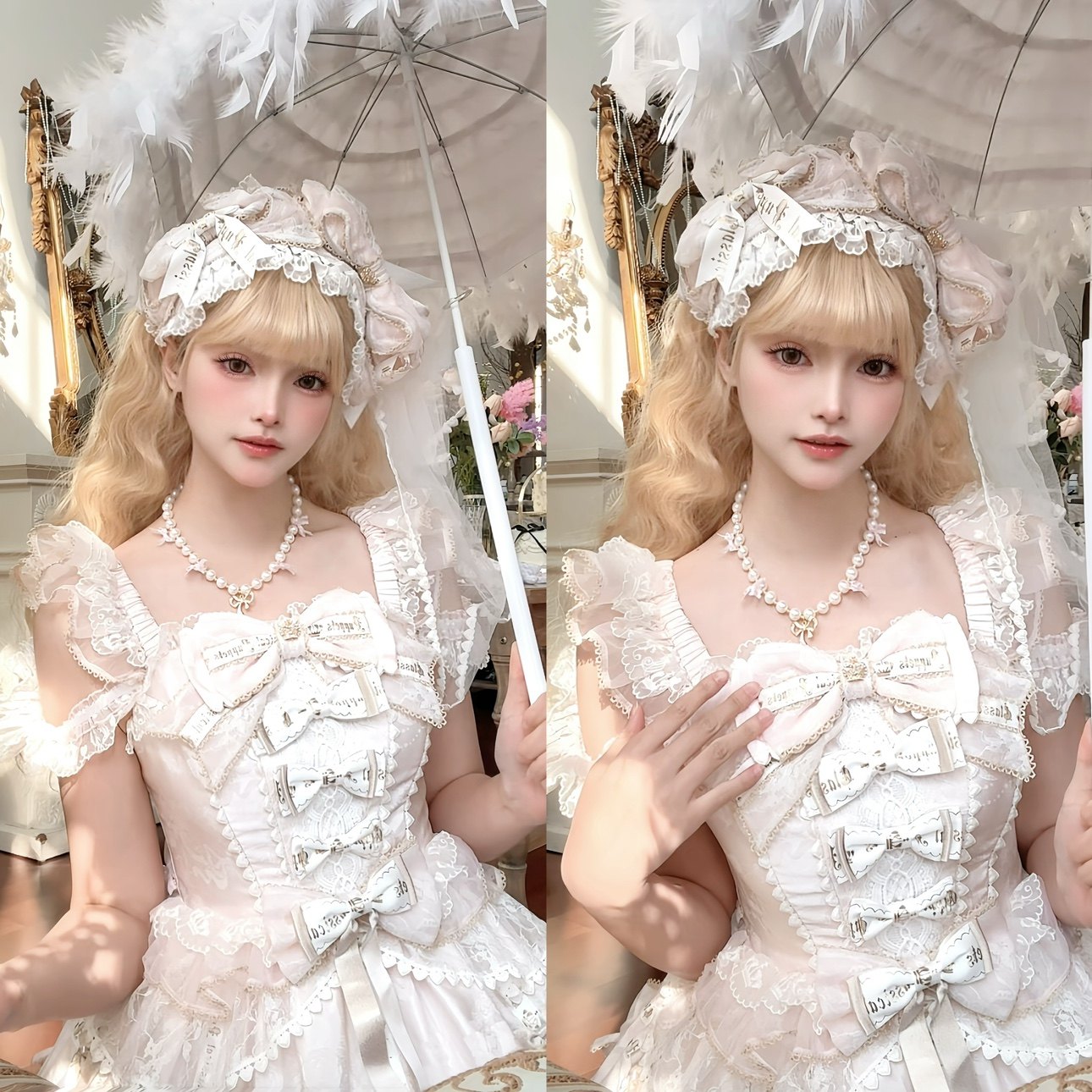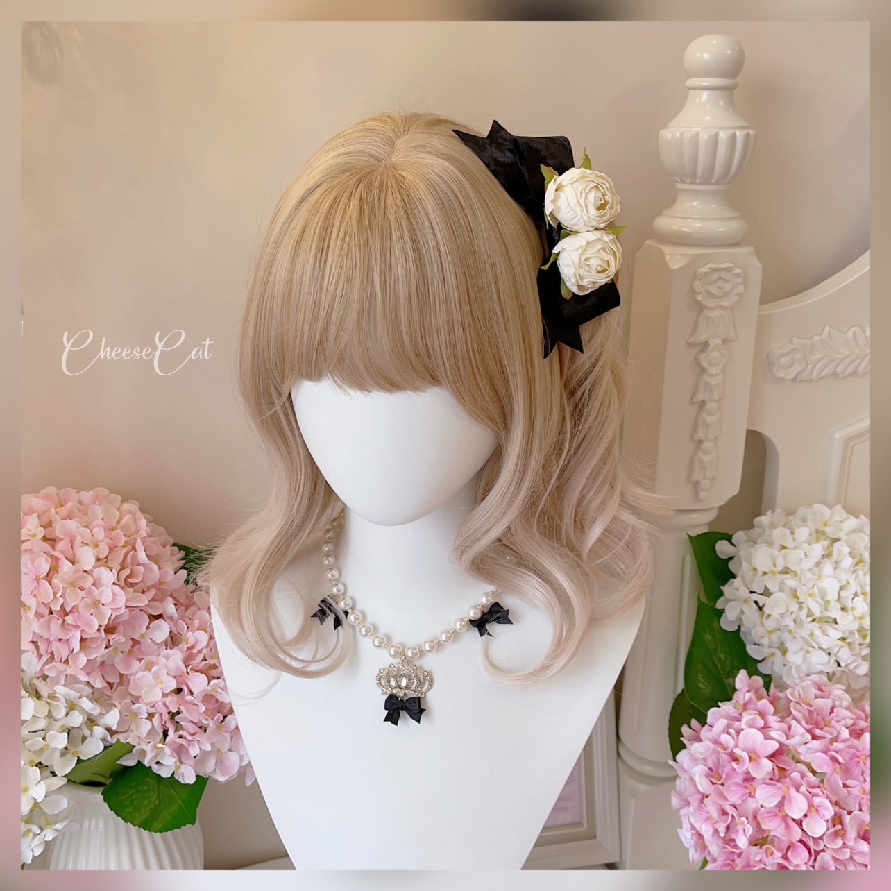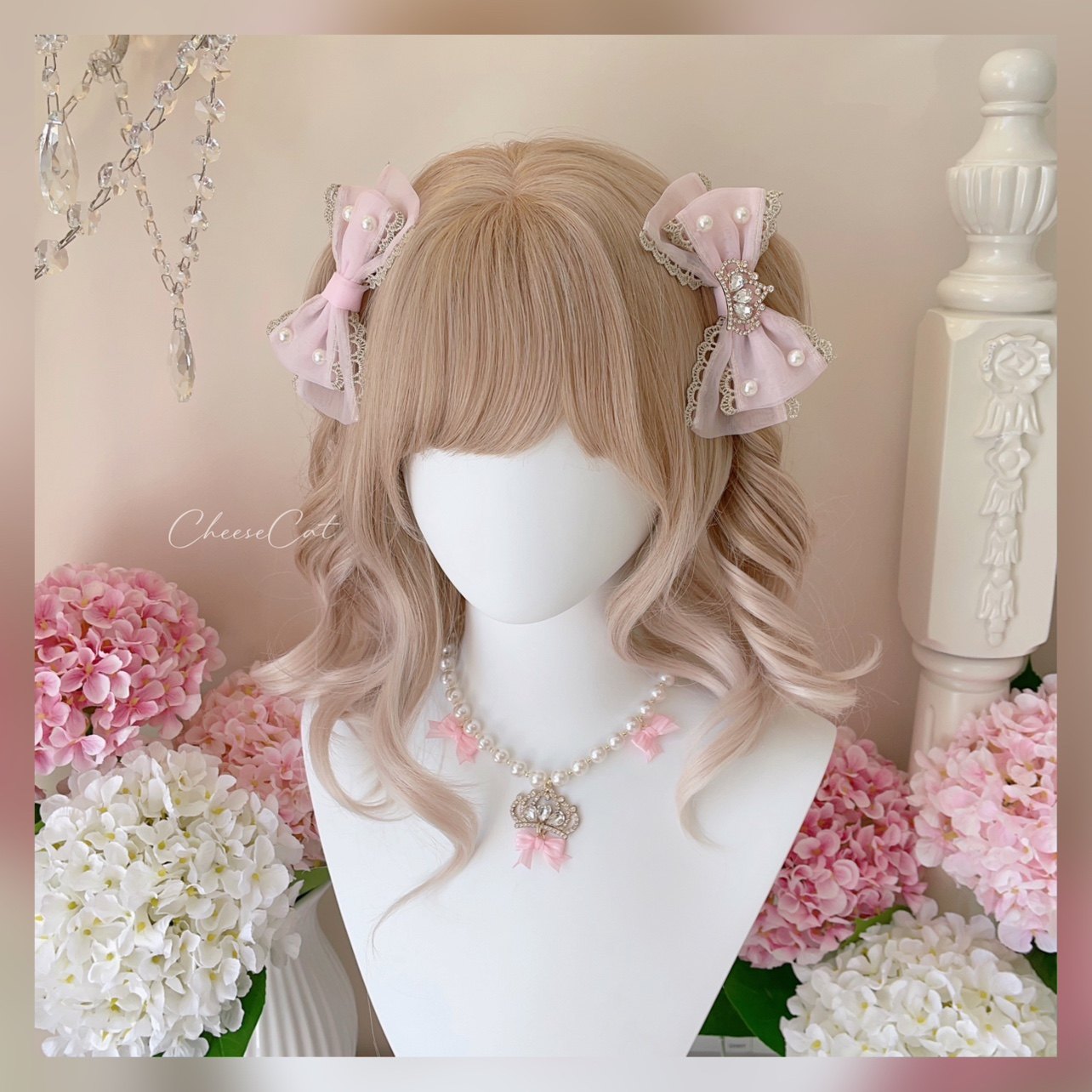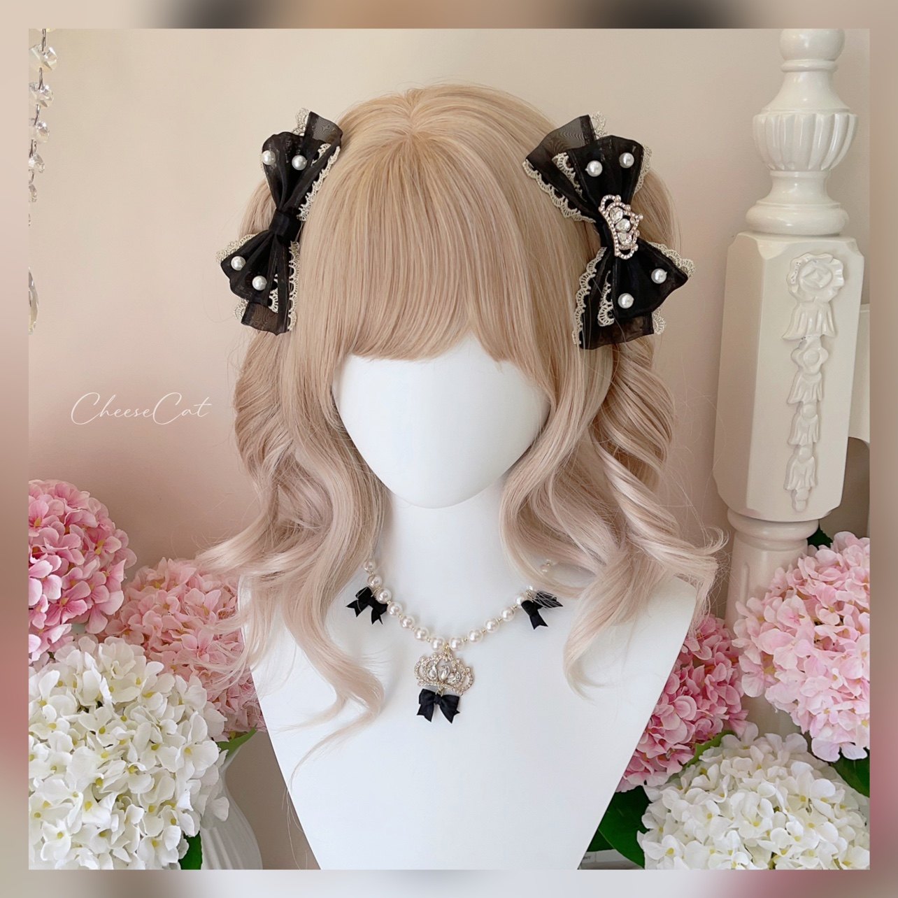 【Cheese Cat Handmade】Classic Doll Dreamy Bow Crown Lolita Accessory Necklace Pearl Necklace