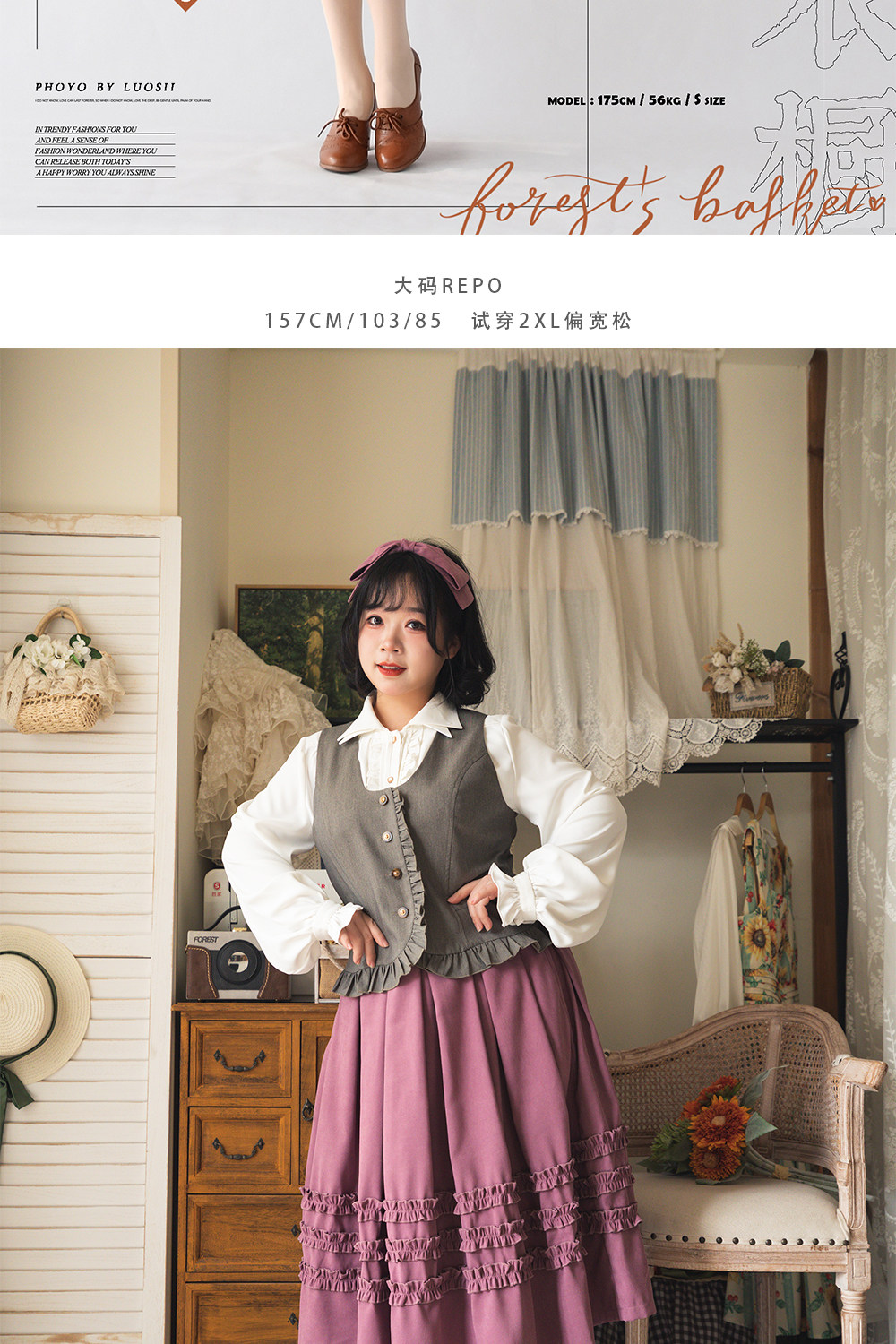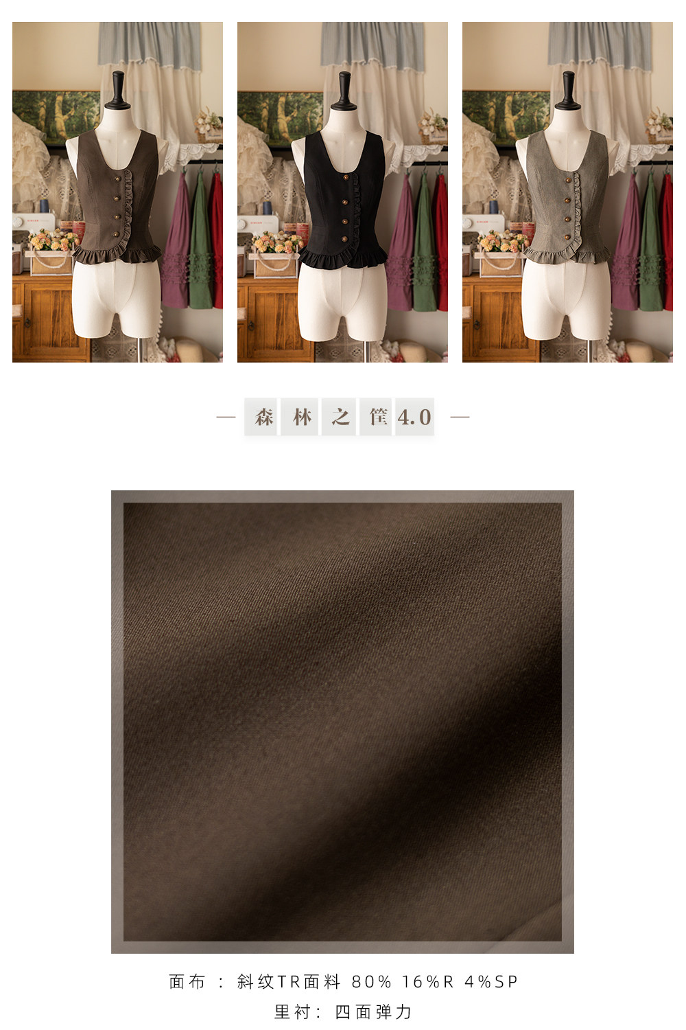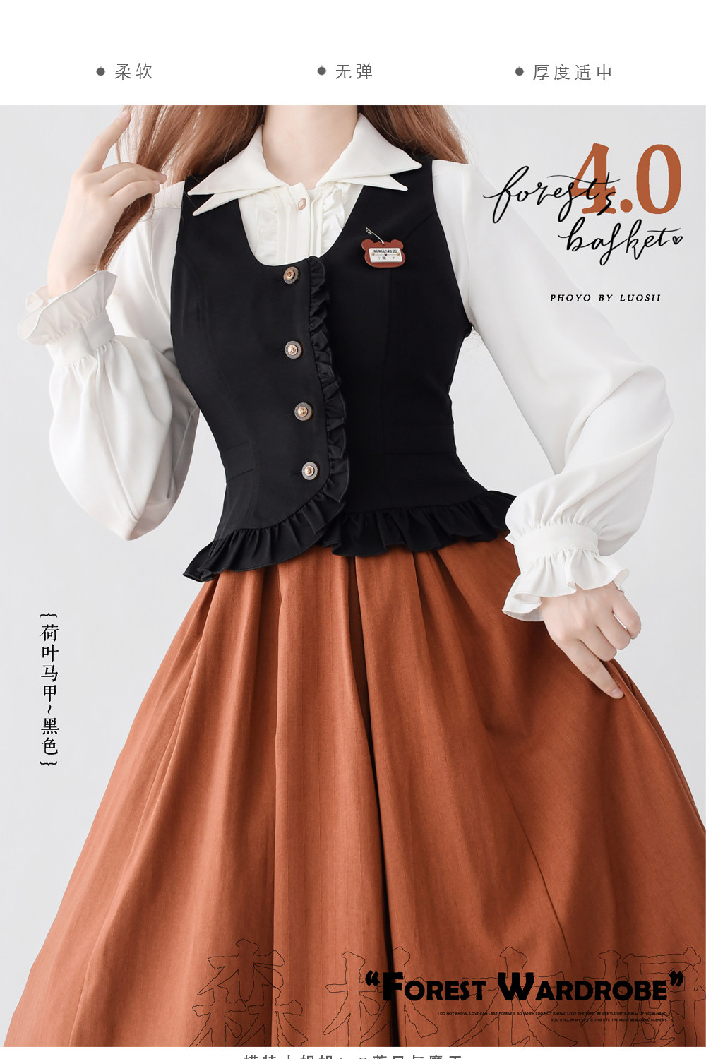 【森林之筐】4.0荷叶边马甲森林衣橱原创春秋优雅CLA百搭复古典 [Original Page Link]
