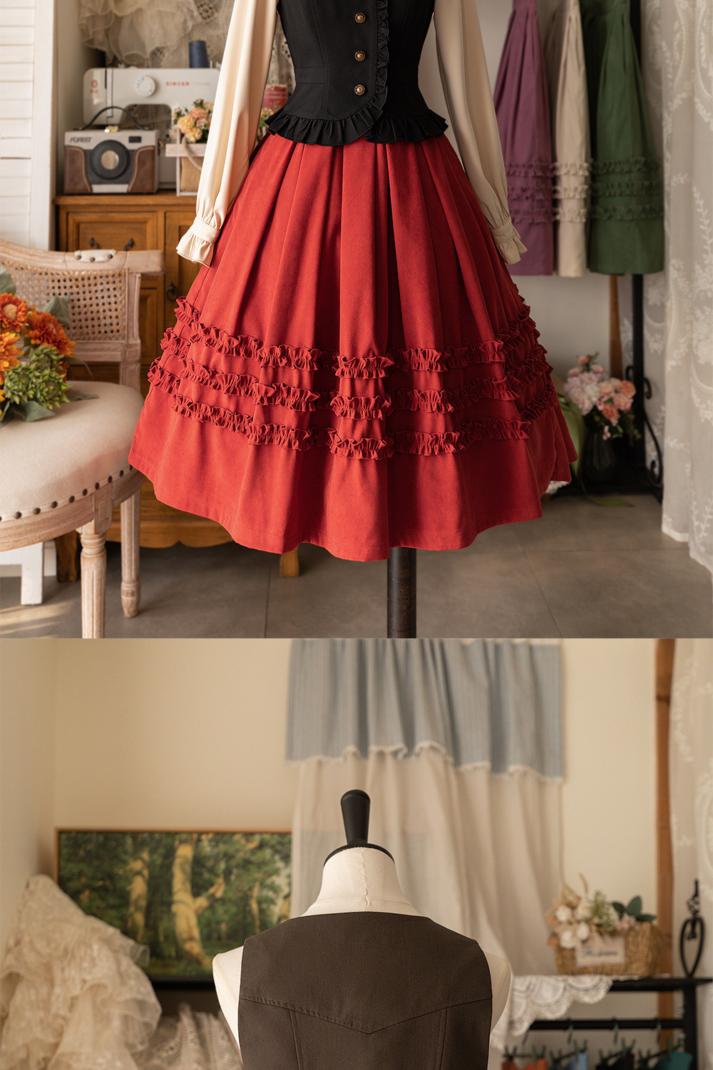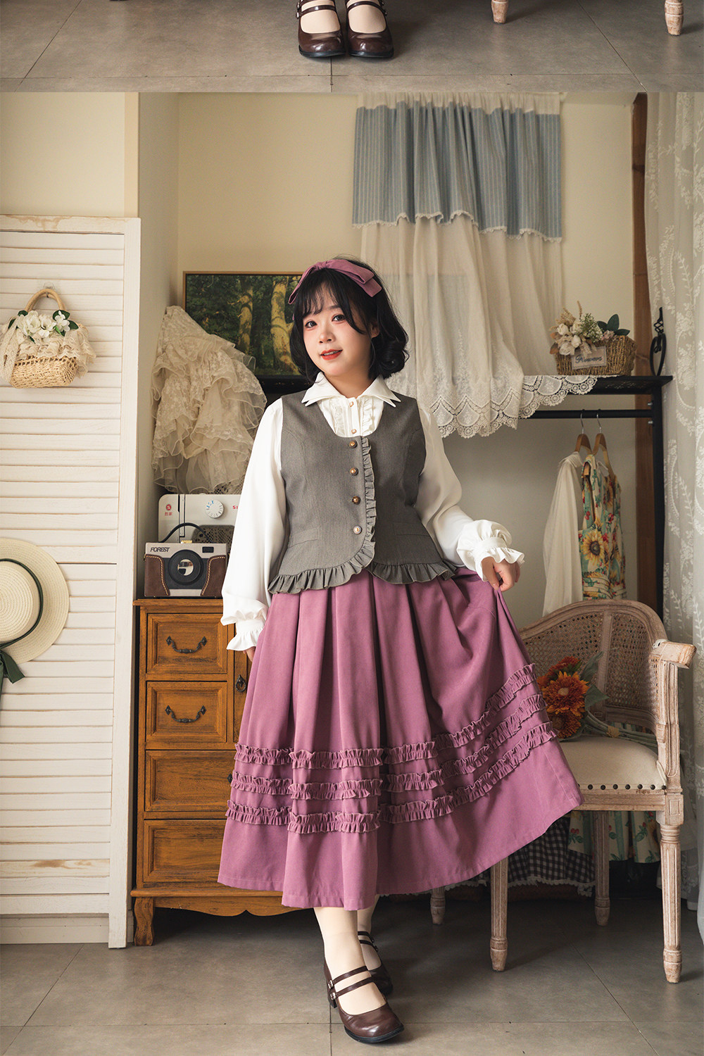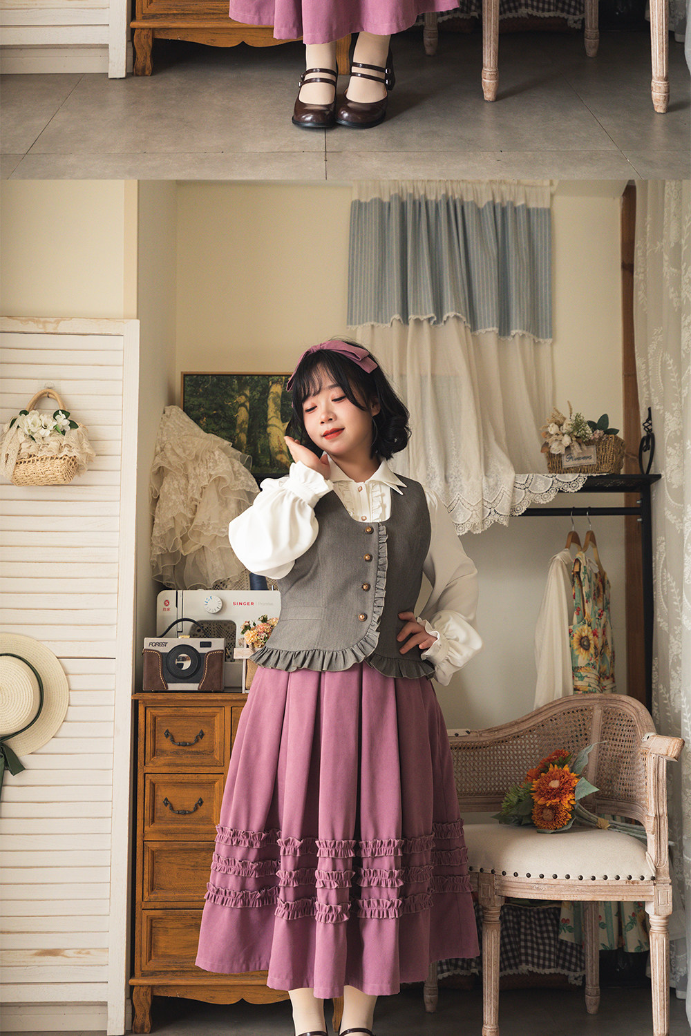 【森林之筐】4.0荷叶边马甲森林衣橱原创春秋优雅CLA百搭复古典 [Original Page Link]