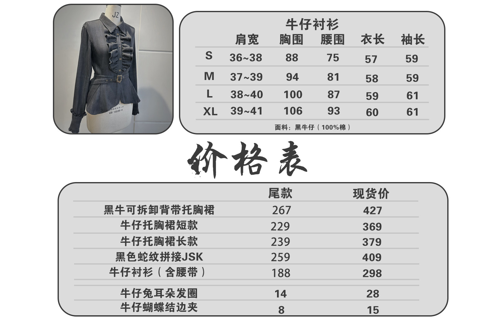 尾款【 素心SUSIN】[瑰沁2.0 ]lolita收腰显瘦牛仔托 托胸裙/抱婴袋裙 [Original Page Link]