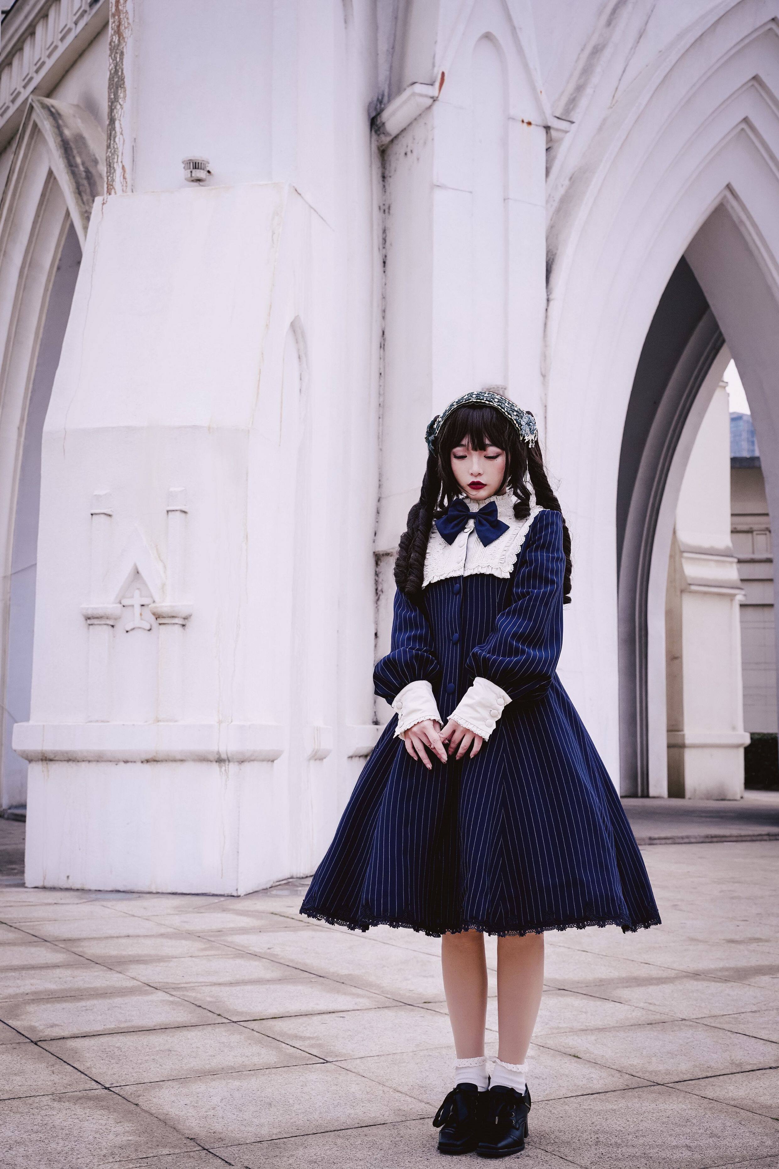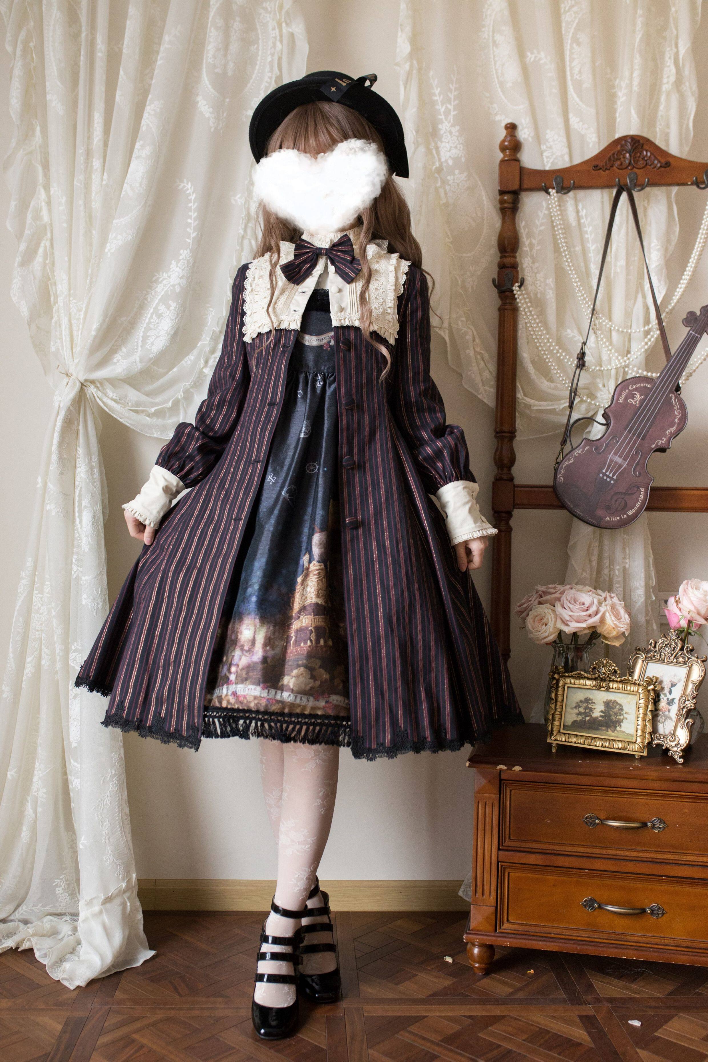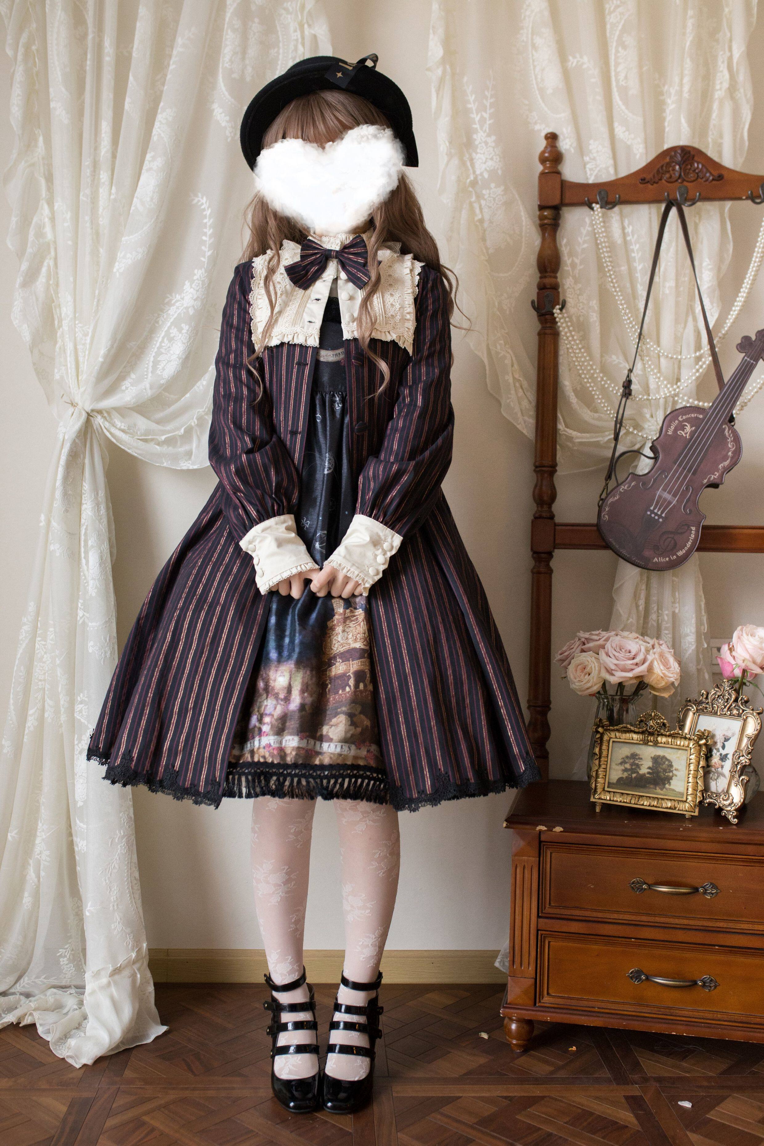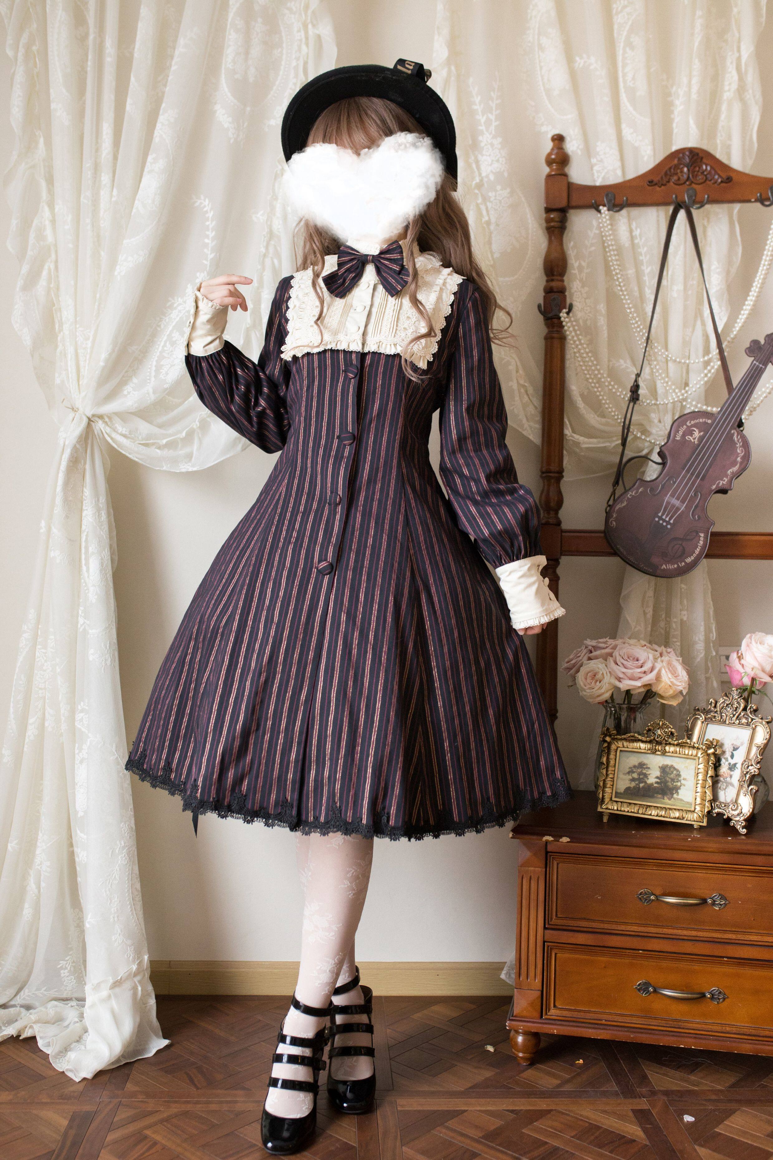 草莓巫女 夏洛克风衣春秋条纹布料Lolita裙日常款 [Original Page Link]