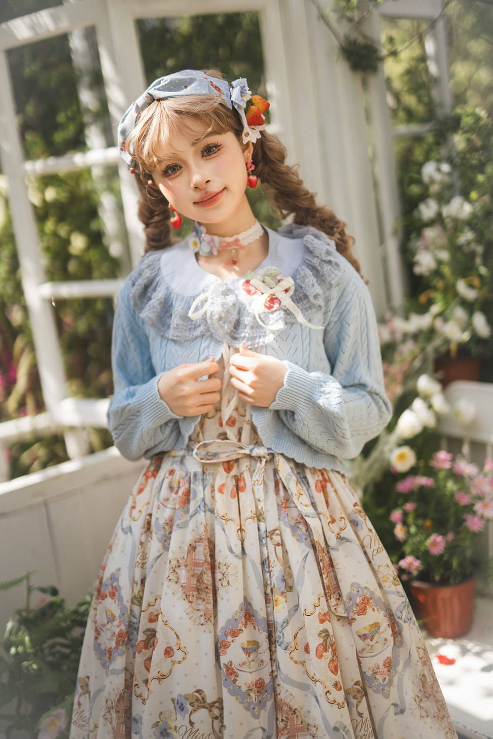 ●Original Design●Cat Rose Tea Lolita Accessories KC Fake Collar Embroidered Brooch Necklace Belt●