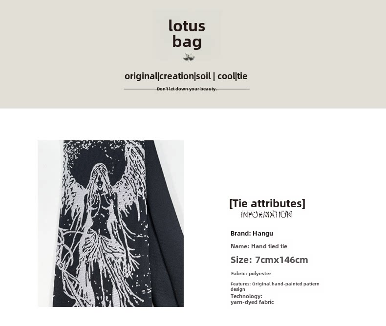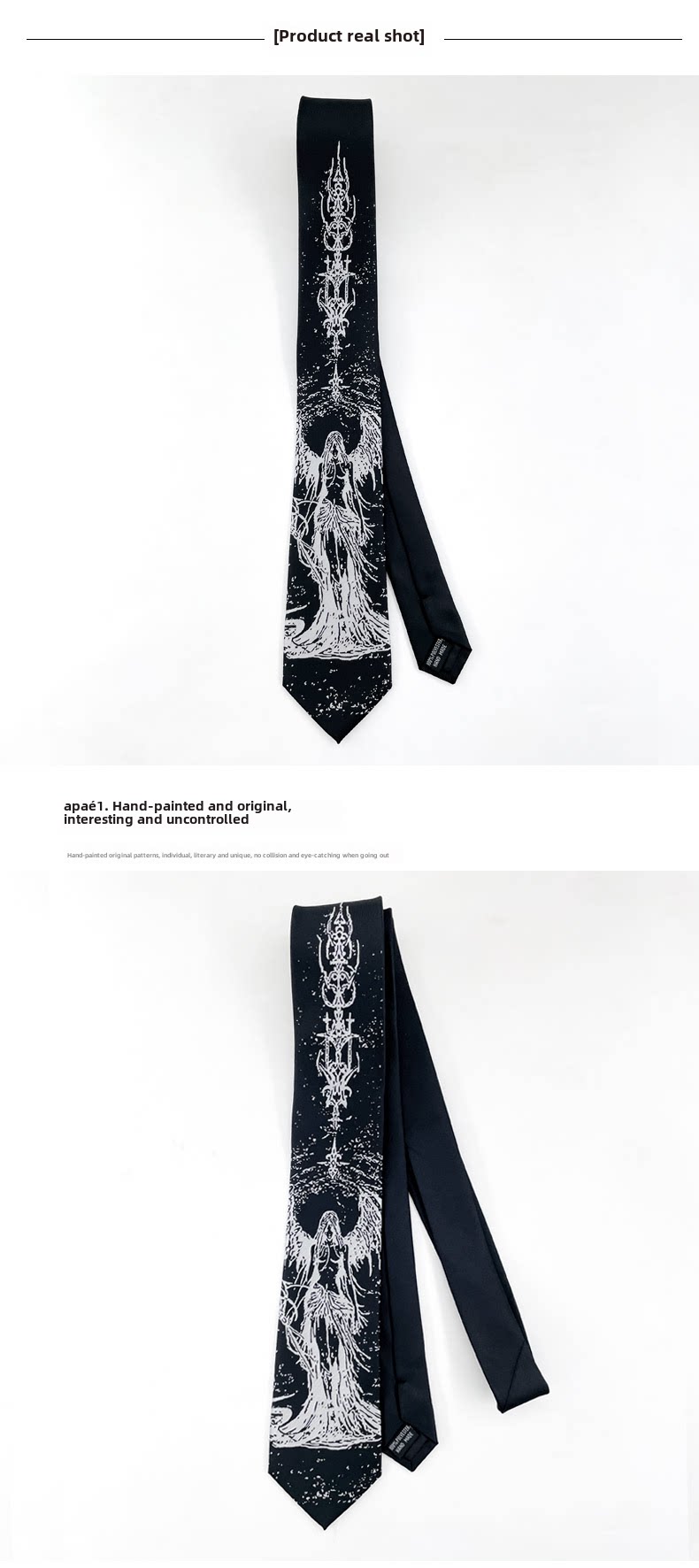 荷花包原创领带刺绣黑色个性化哥特配件男女酷Jk文学朋克时尚地狱女神 [Original Page Link]
