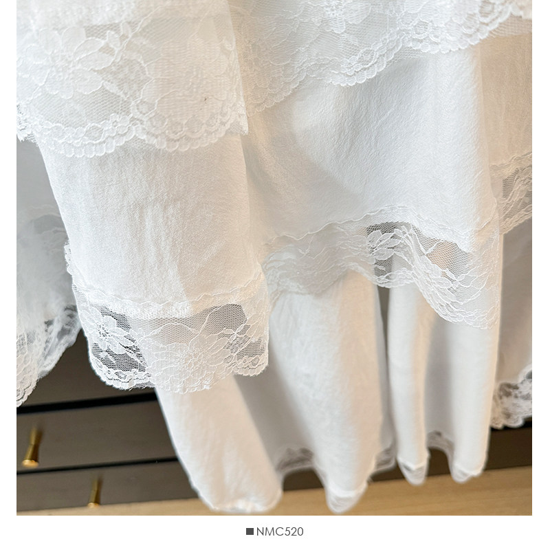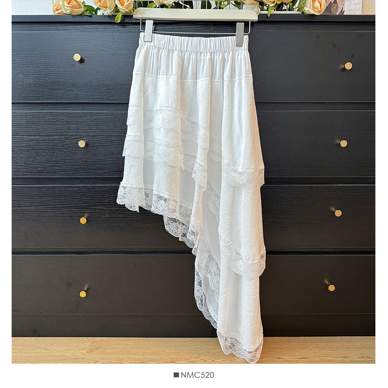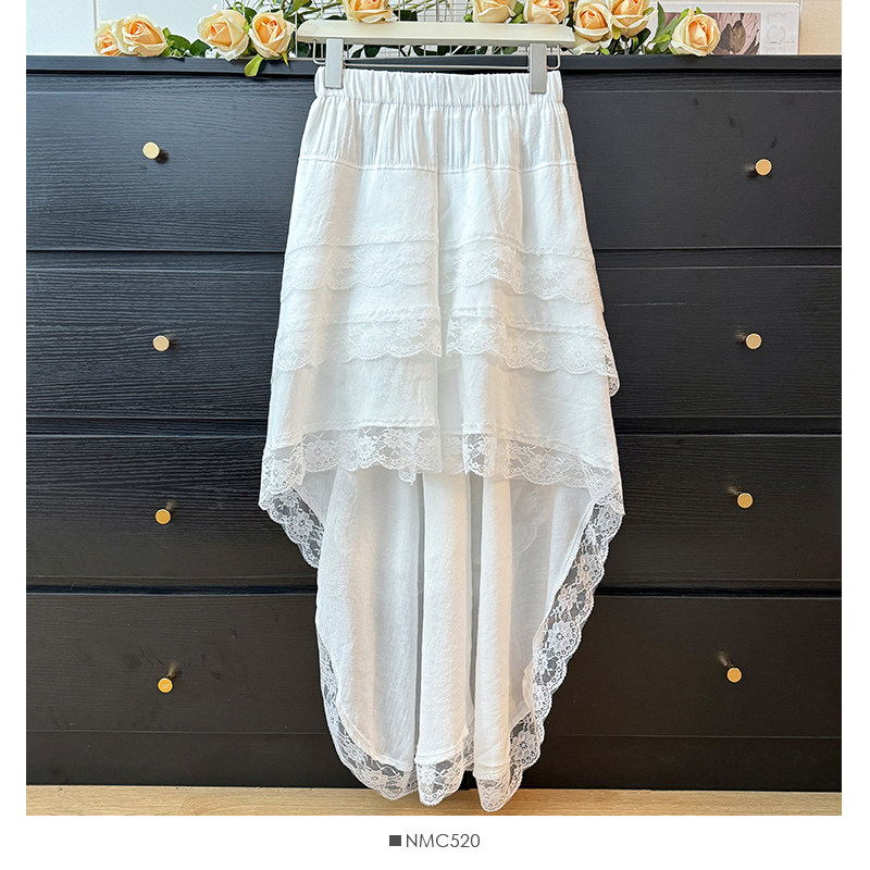 Korean style early spring wear lace irregular design skirt female petite high waist splicing lace swallowtail skirt