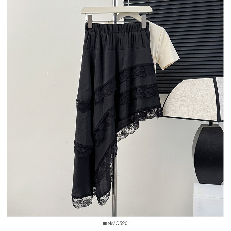 韩系早春穿搭蕾丝不规则设计感半身裙女小个子高腰拼接花边燕尾裙 [Original Page Link]