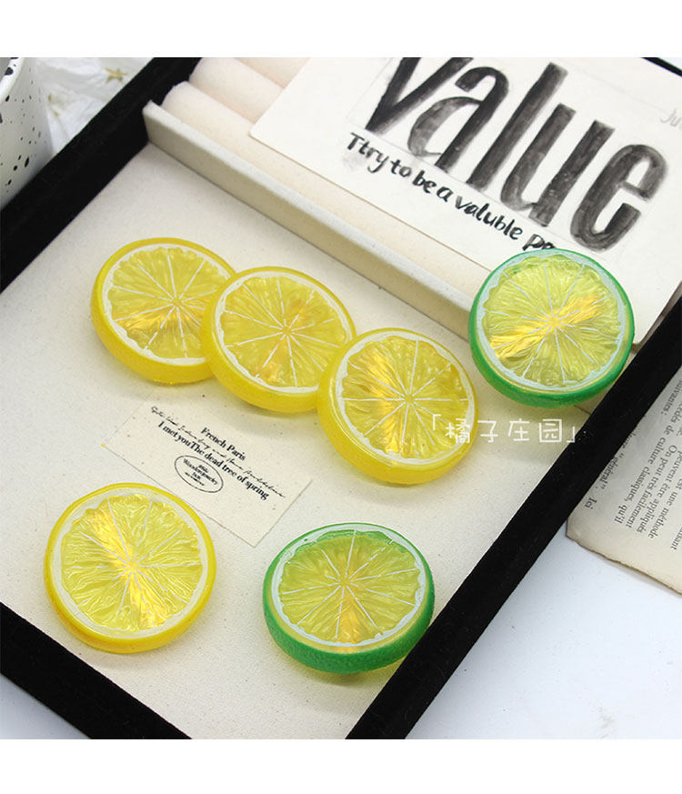 Fresh and fun lemon slice hair clips for spring and summer, resembling real fruit, perfect for side-swept bangs. Creative and quirky hair accessories.