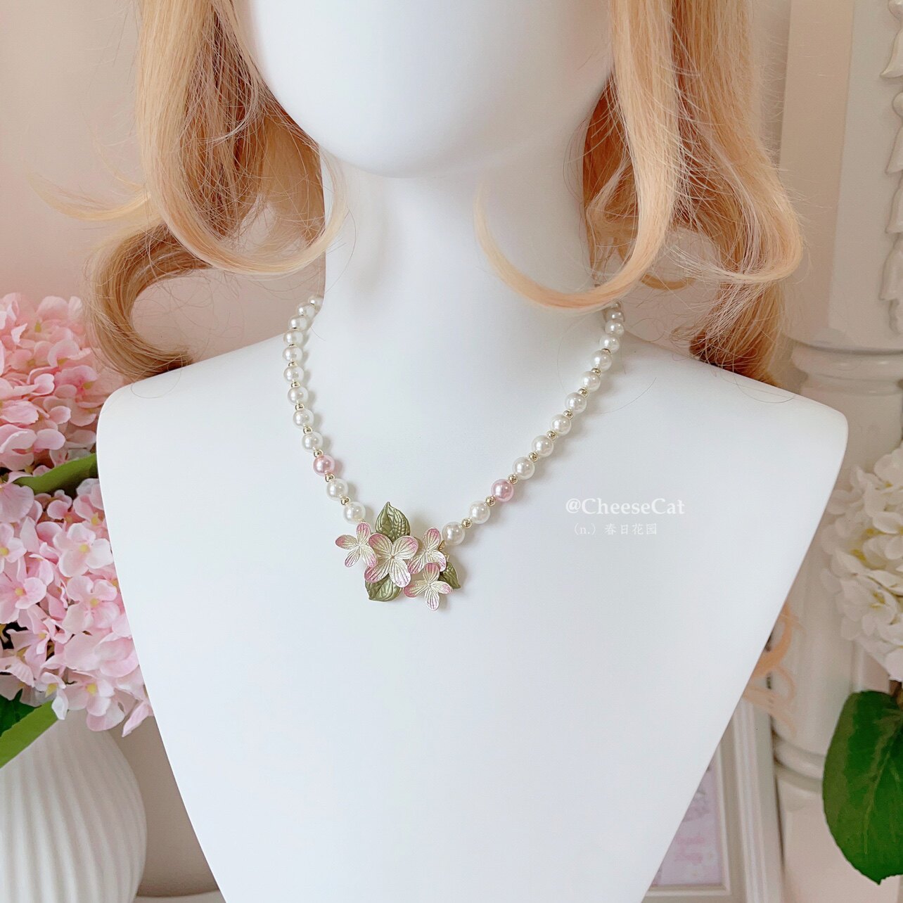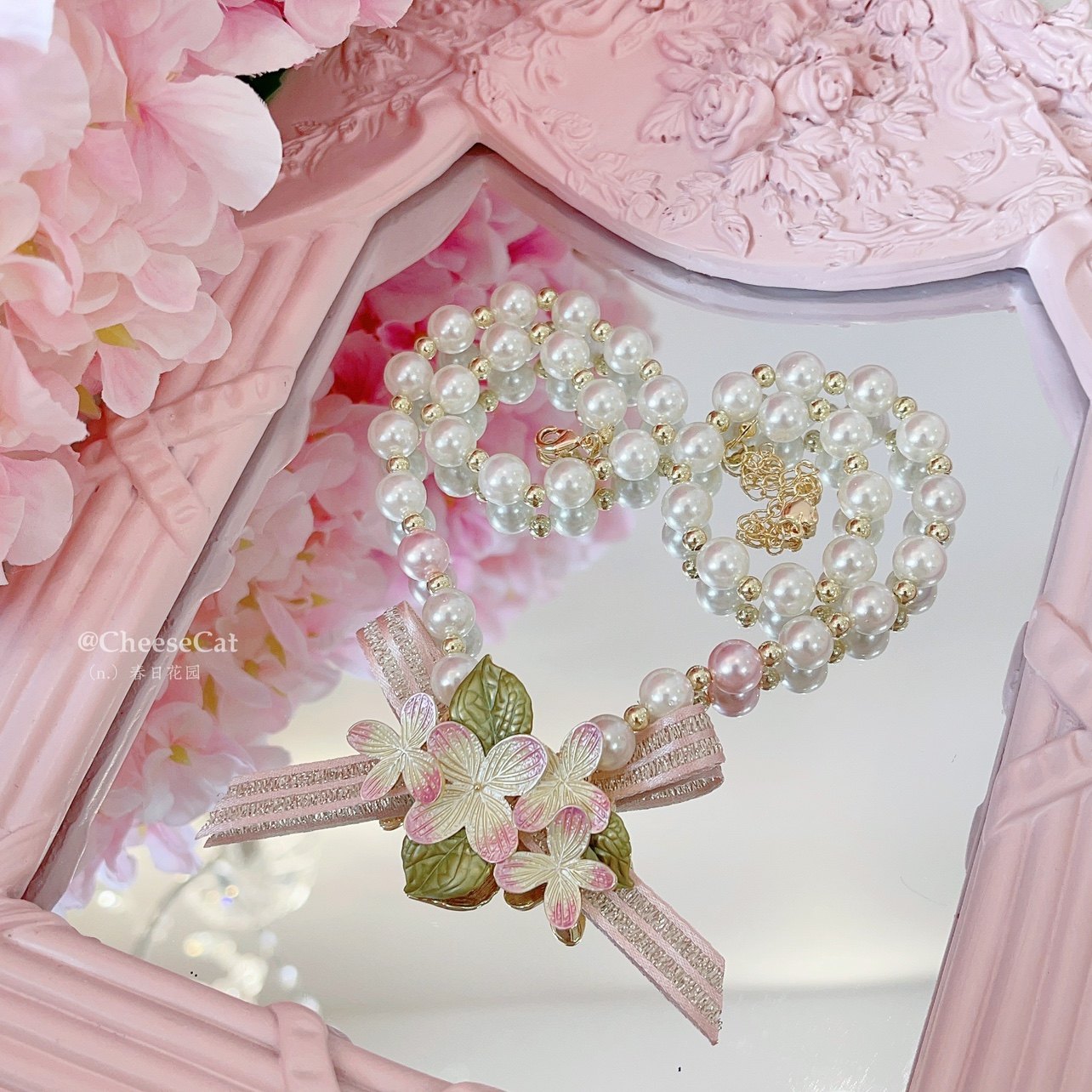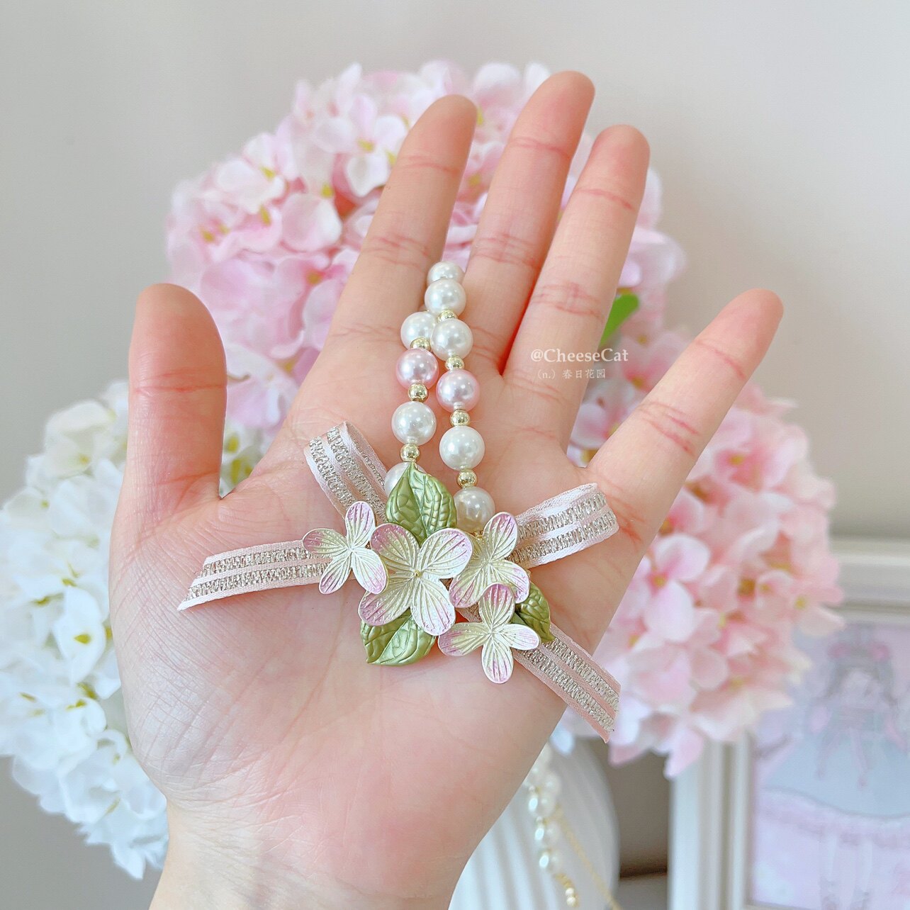 【芝士猫手作】春日花园樱花珍珠优雅中华风Lolita小物胸针项链 [Original Page Link]