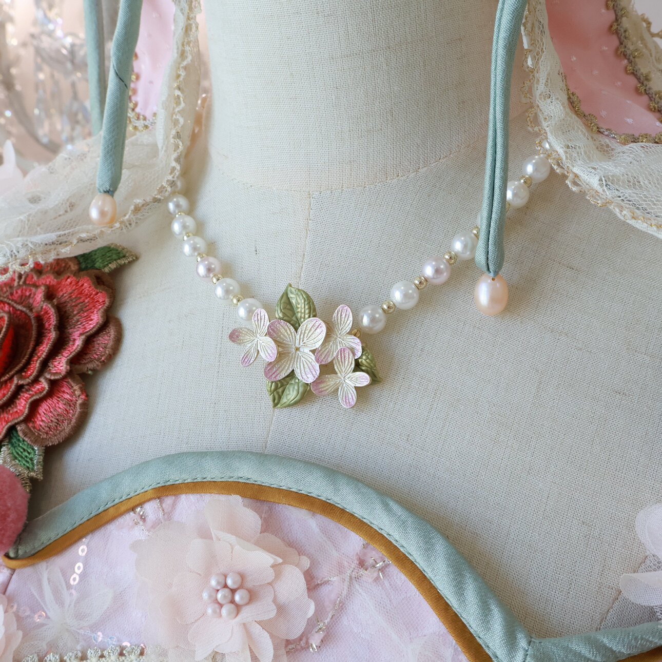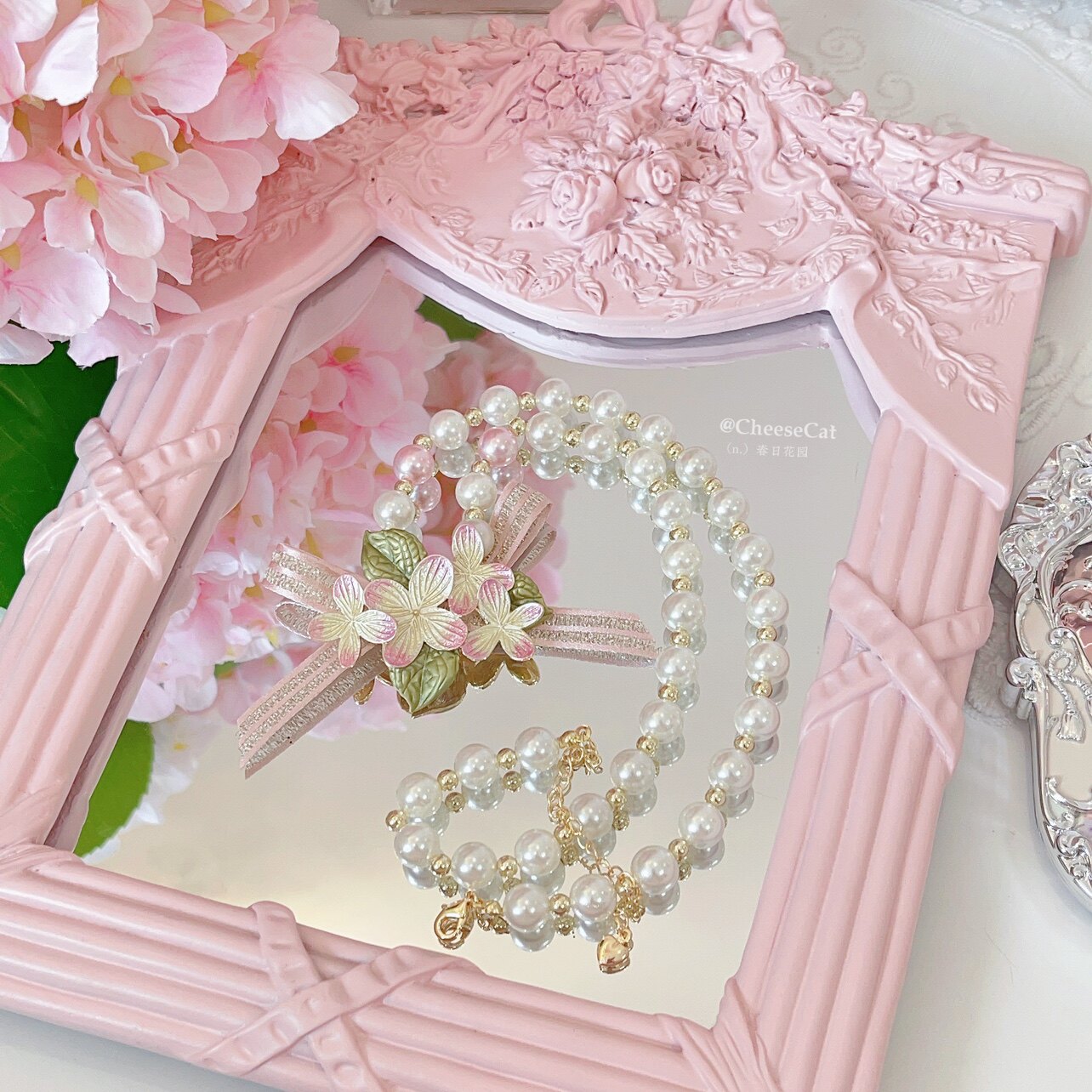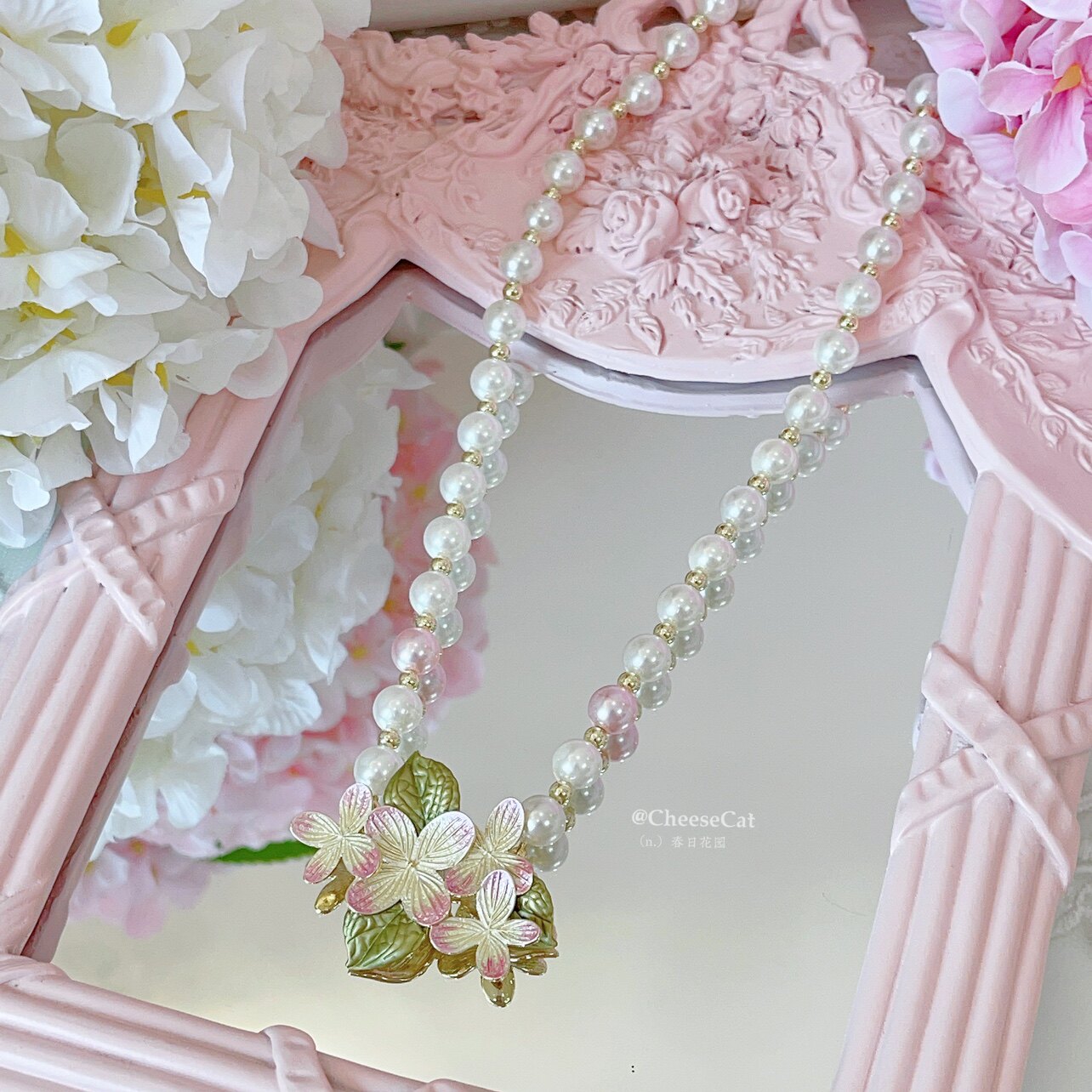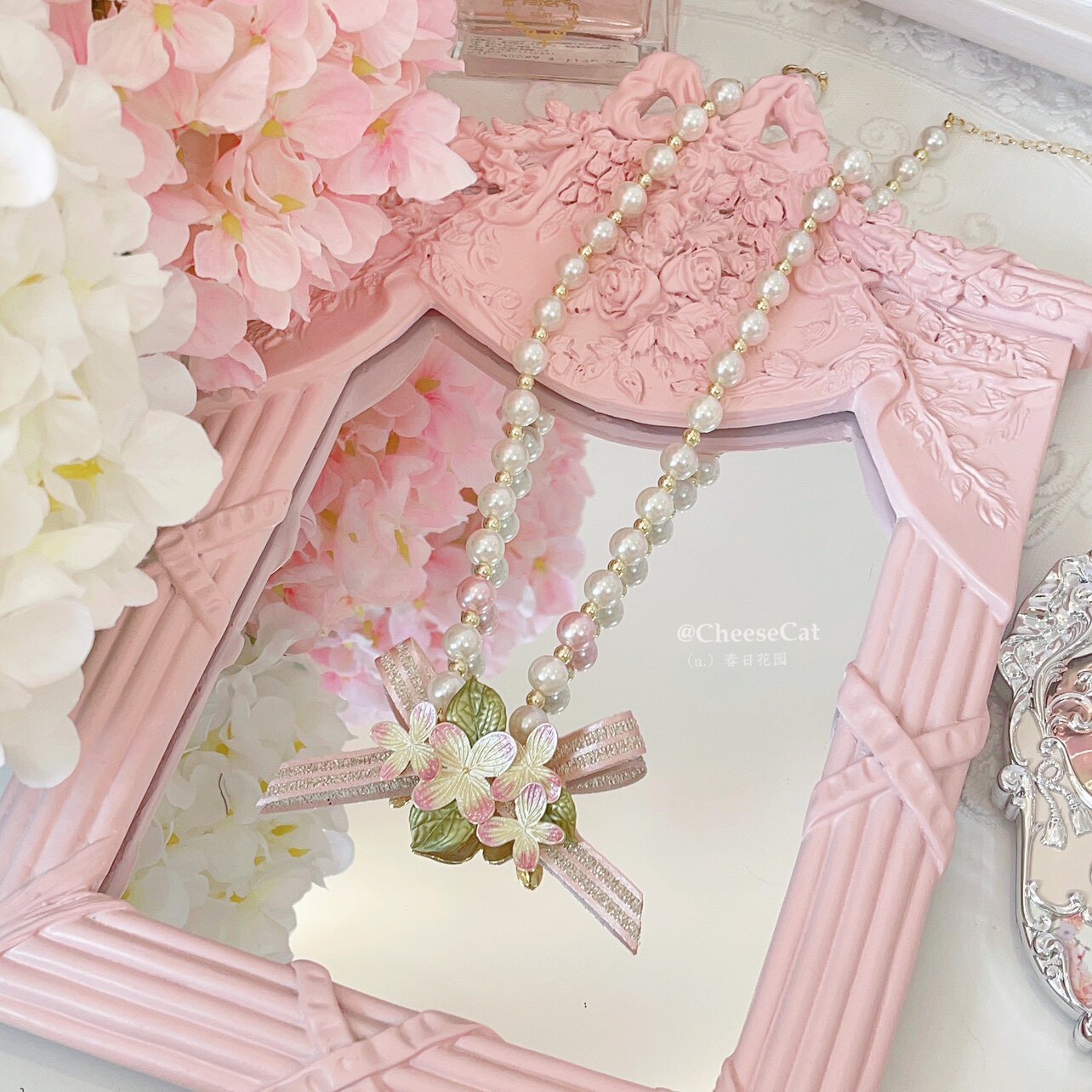 【芝士猫手作】春日花园樱花珍珠优雅中华风Lolita小物胸针项链 [Original Page Link]