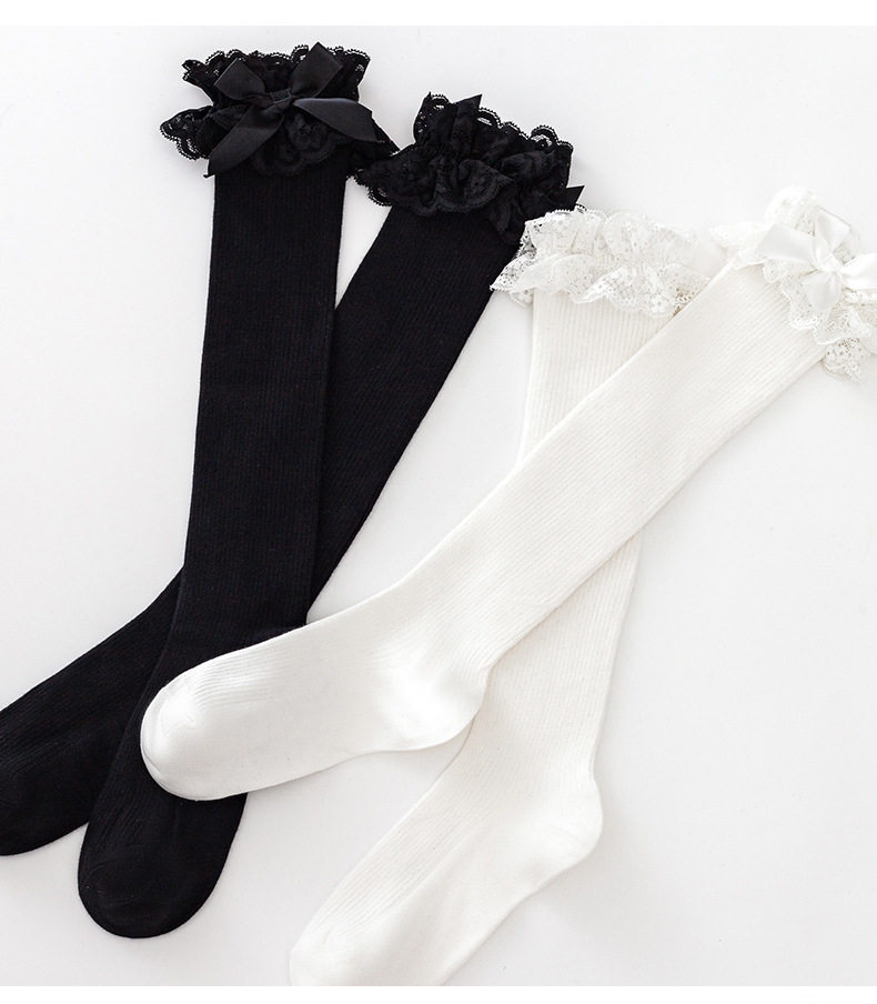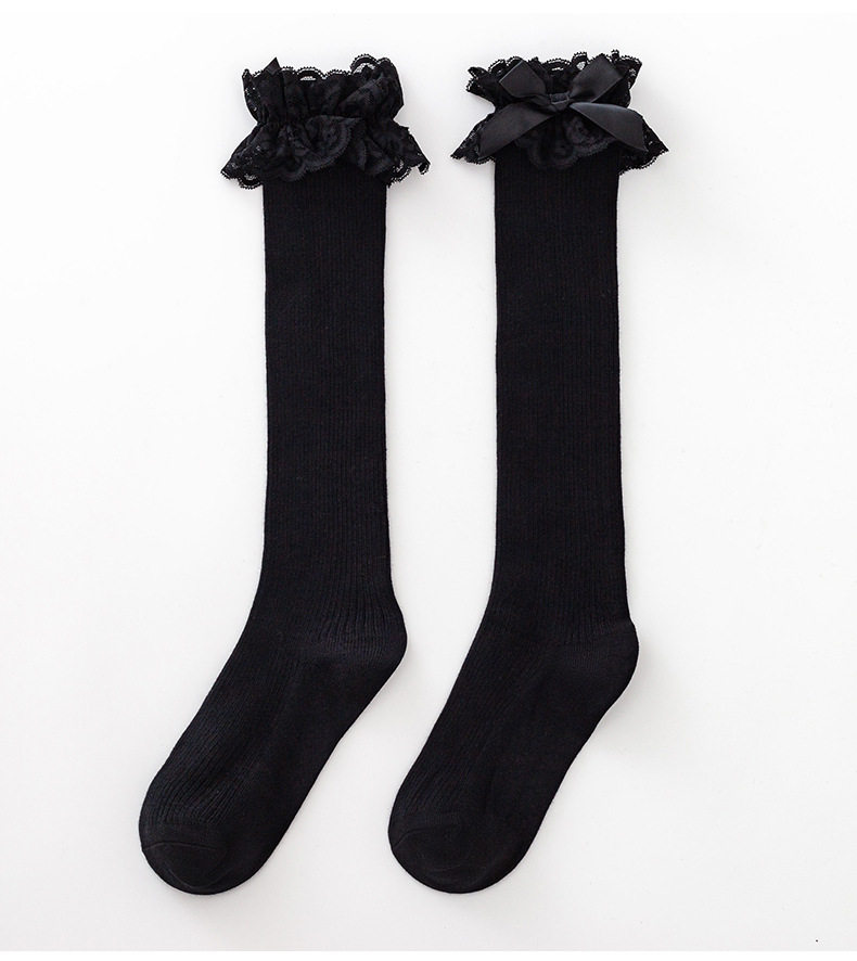 Calf socks, mid-calf socks, lace bow, solid color, elegant, girly Lolita style, pure cotton, high elastic women's socks.