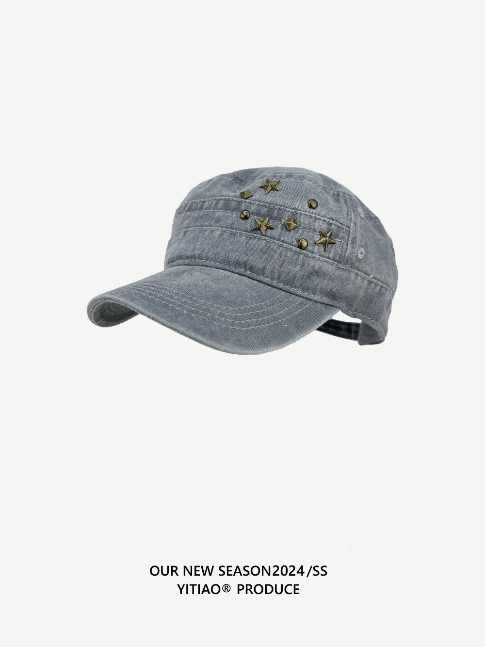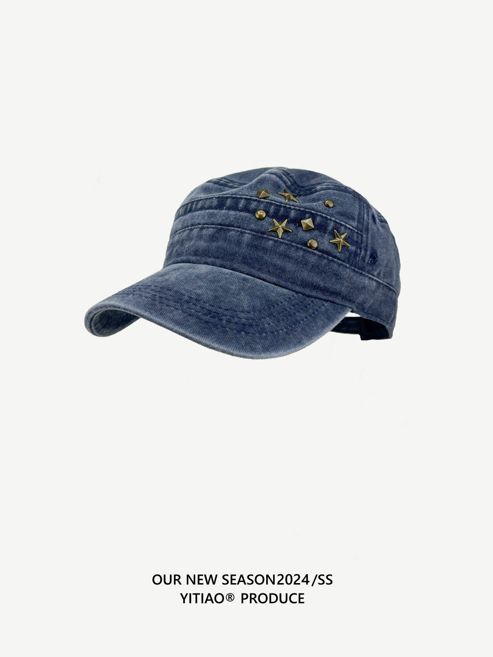 DIY niche flat-top baseball cap, unisex, studded, Y2K vintage washed denim cap, versatile street style.