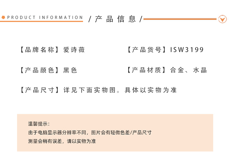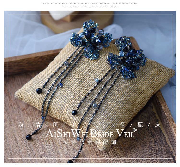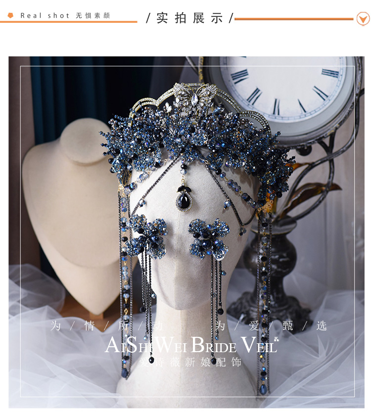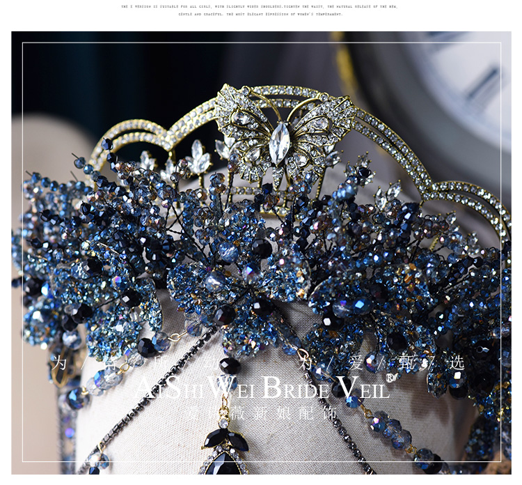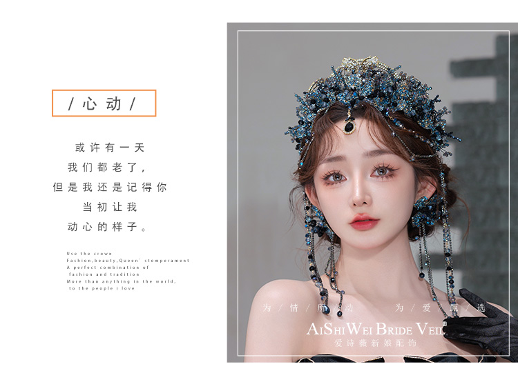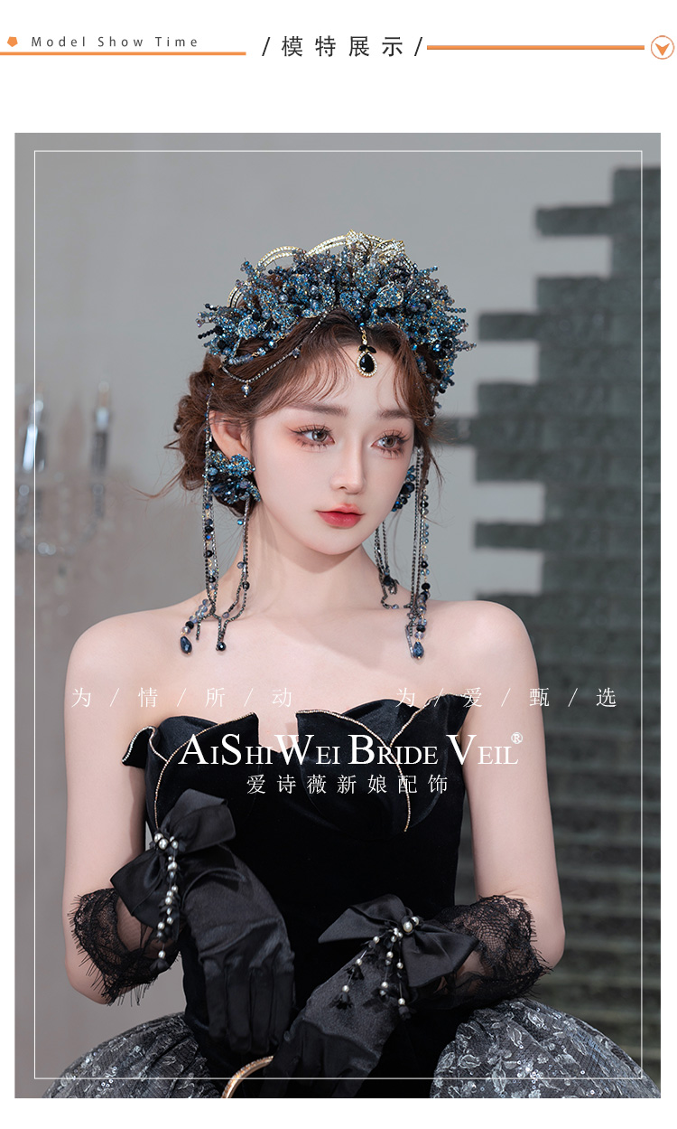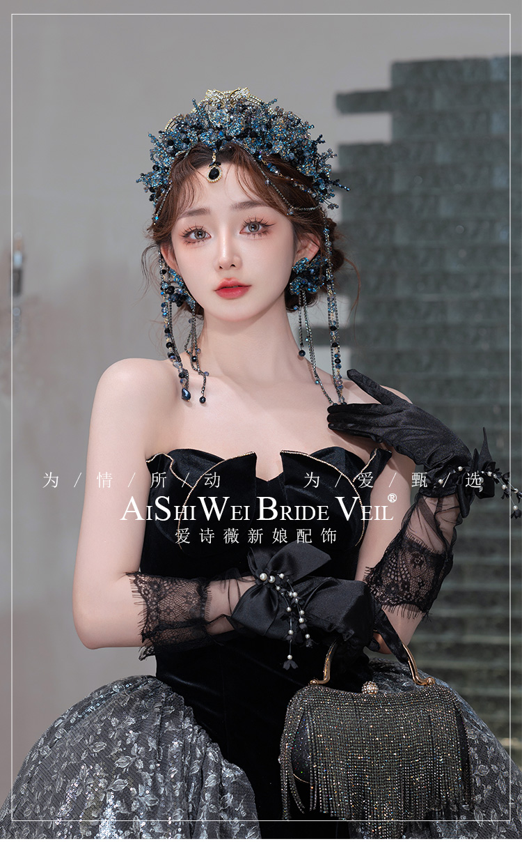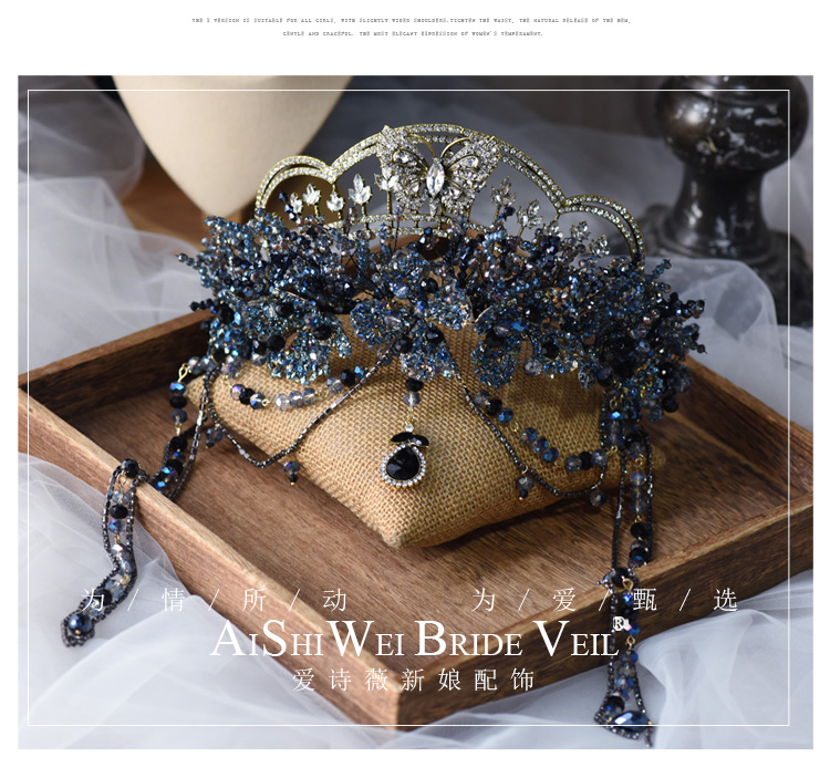 爱诗薇手工水晶黑色流苏时尚皇冠新娘宴会礼服跟妆旅拍照相馆发饰品 [Original Page Link]