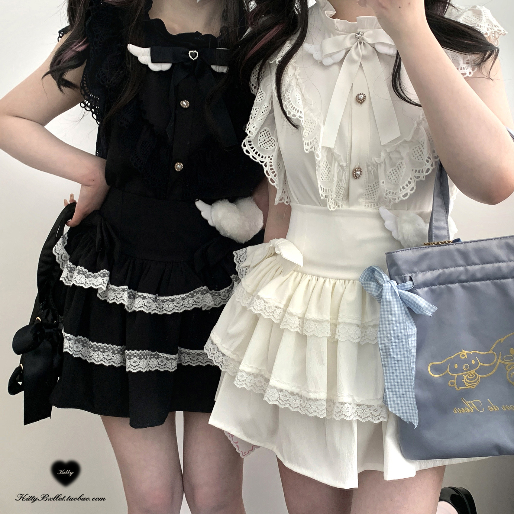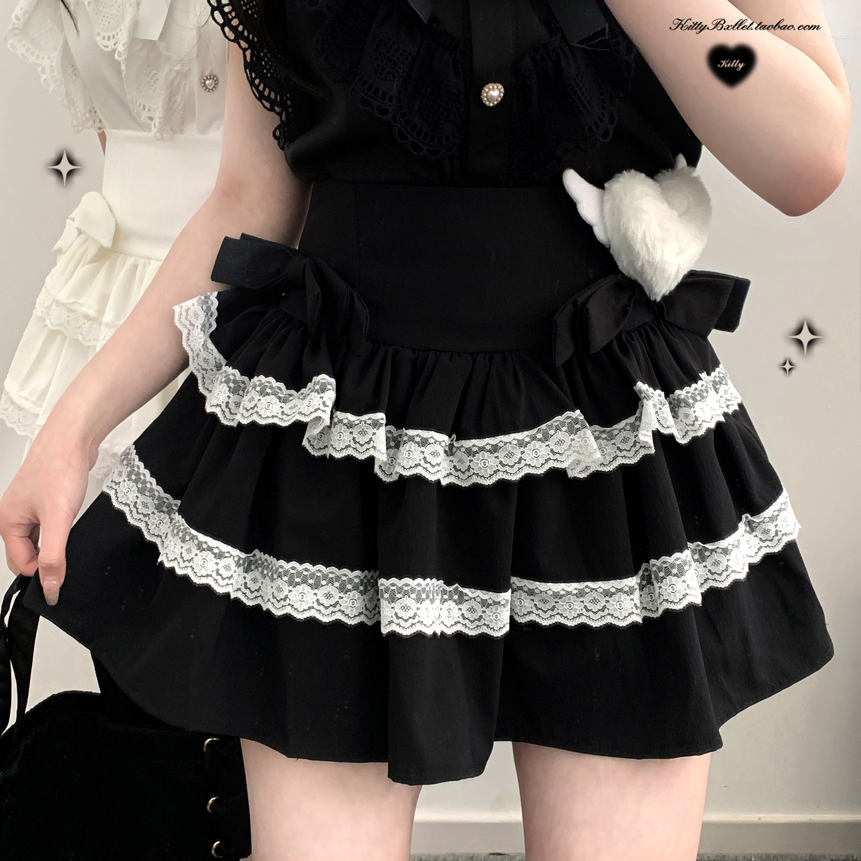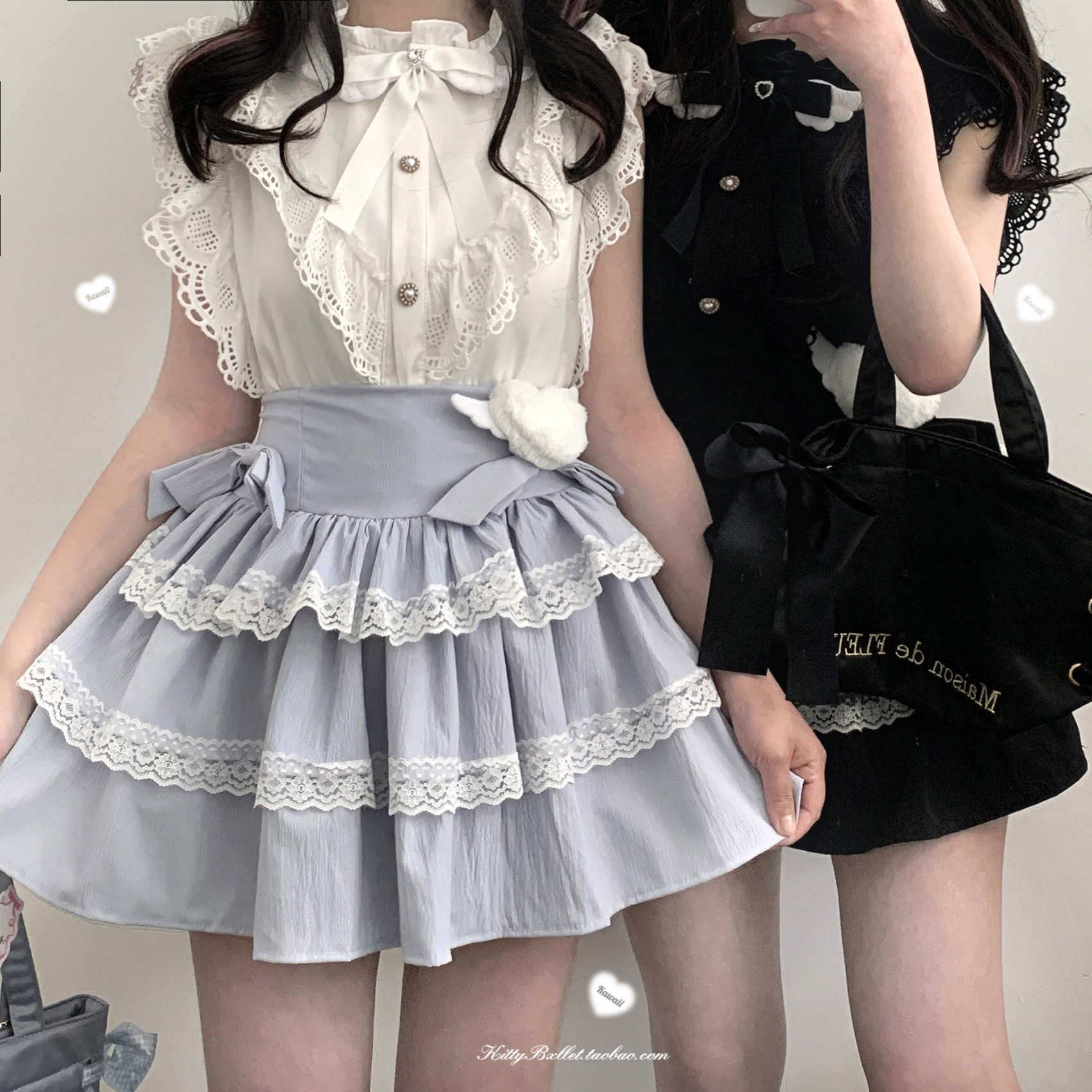 KittyBxllet原创【天国少女蛋糕】蝴蝶结双层蕾丝亚宅蛋糕裙 [Original Page Link]