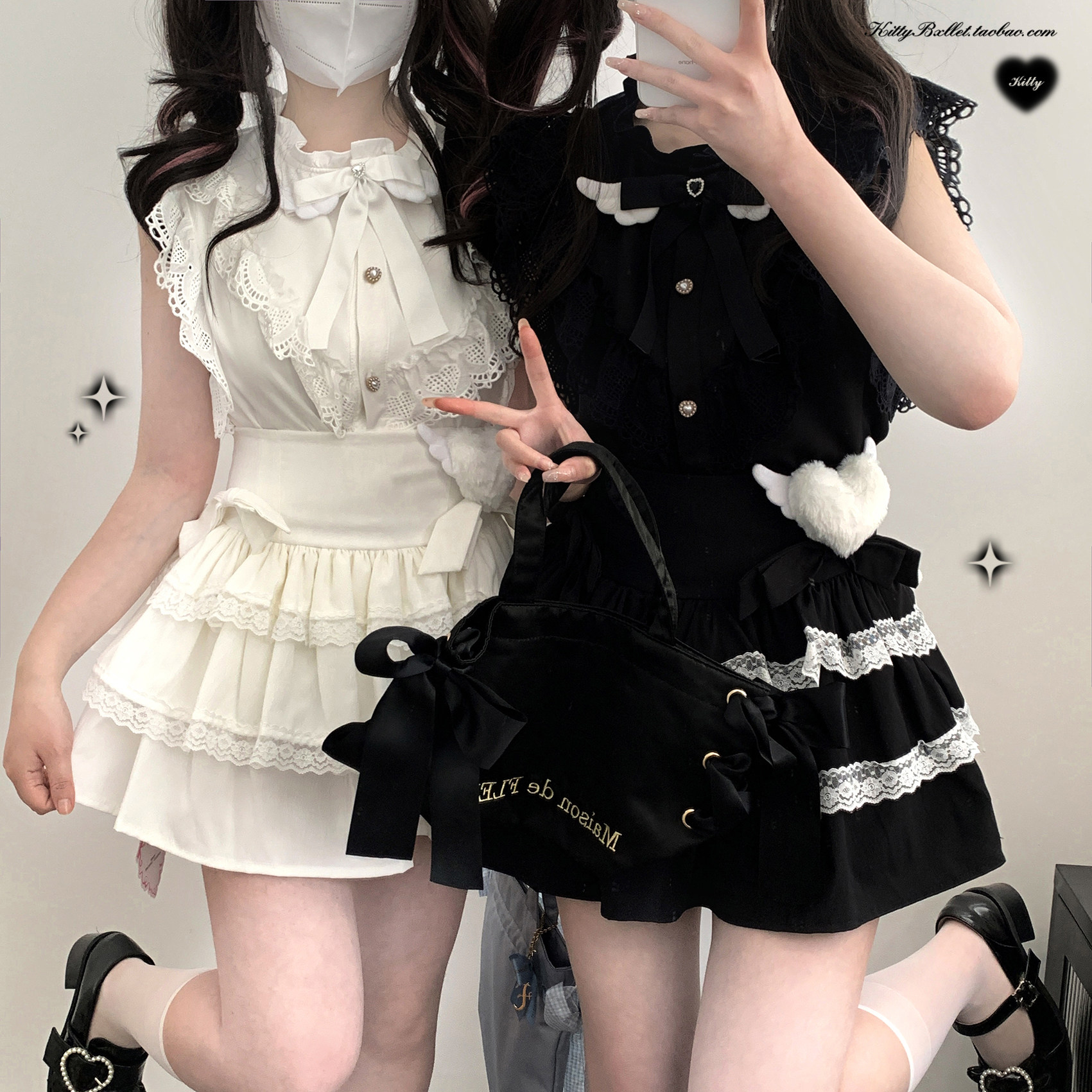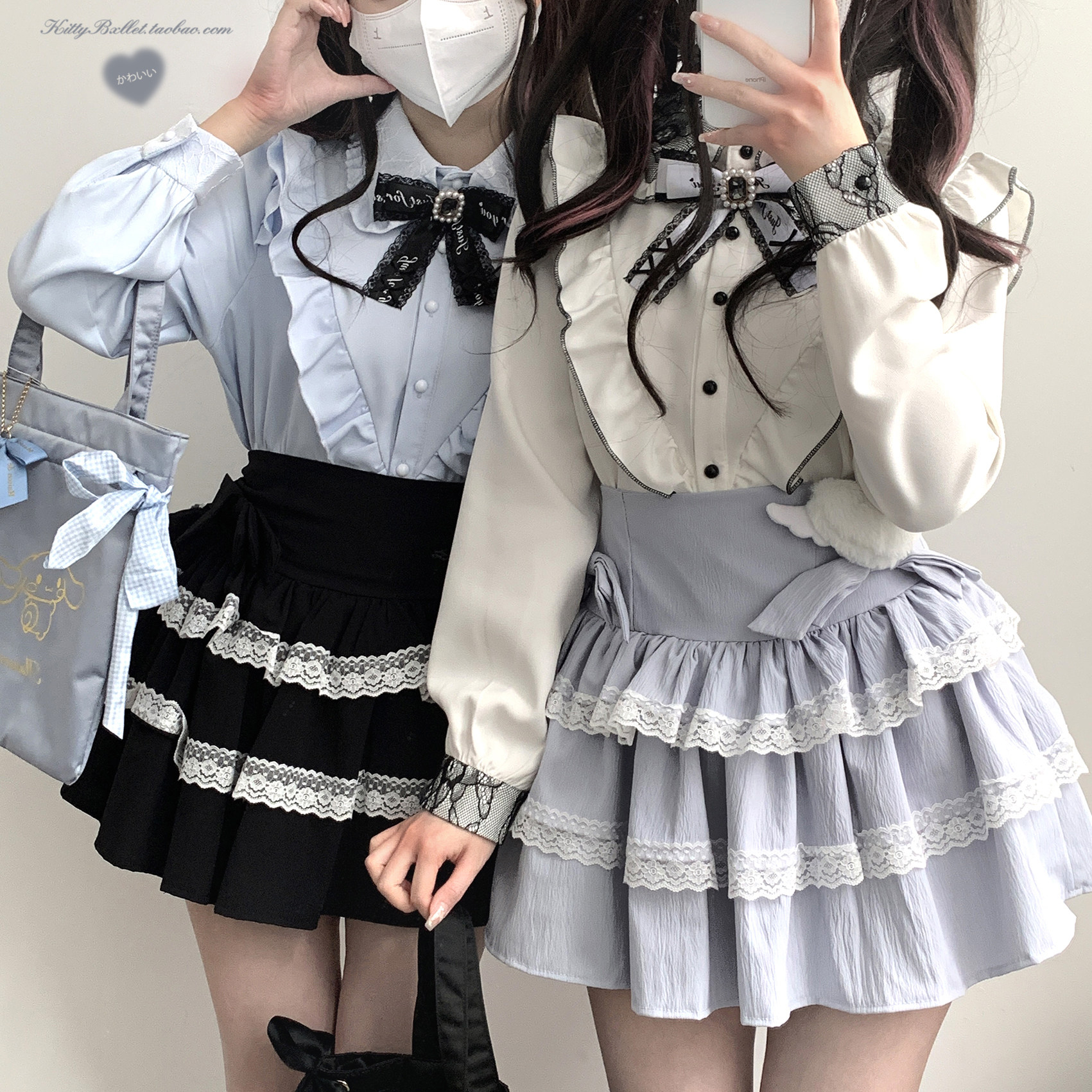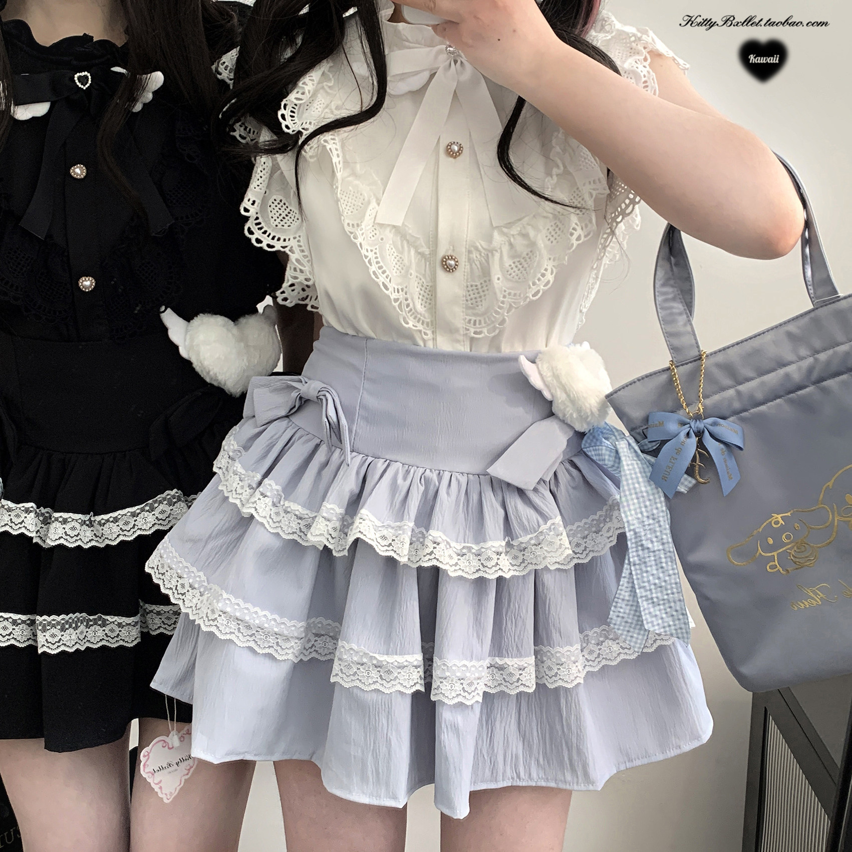 KittyBxllet原创【天国少女蛋糕】蝴蝶结双层蕾丝亚宅蛋糕裙 [Original Page Link]