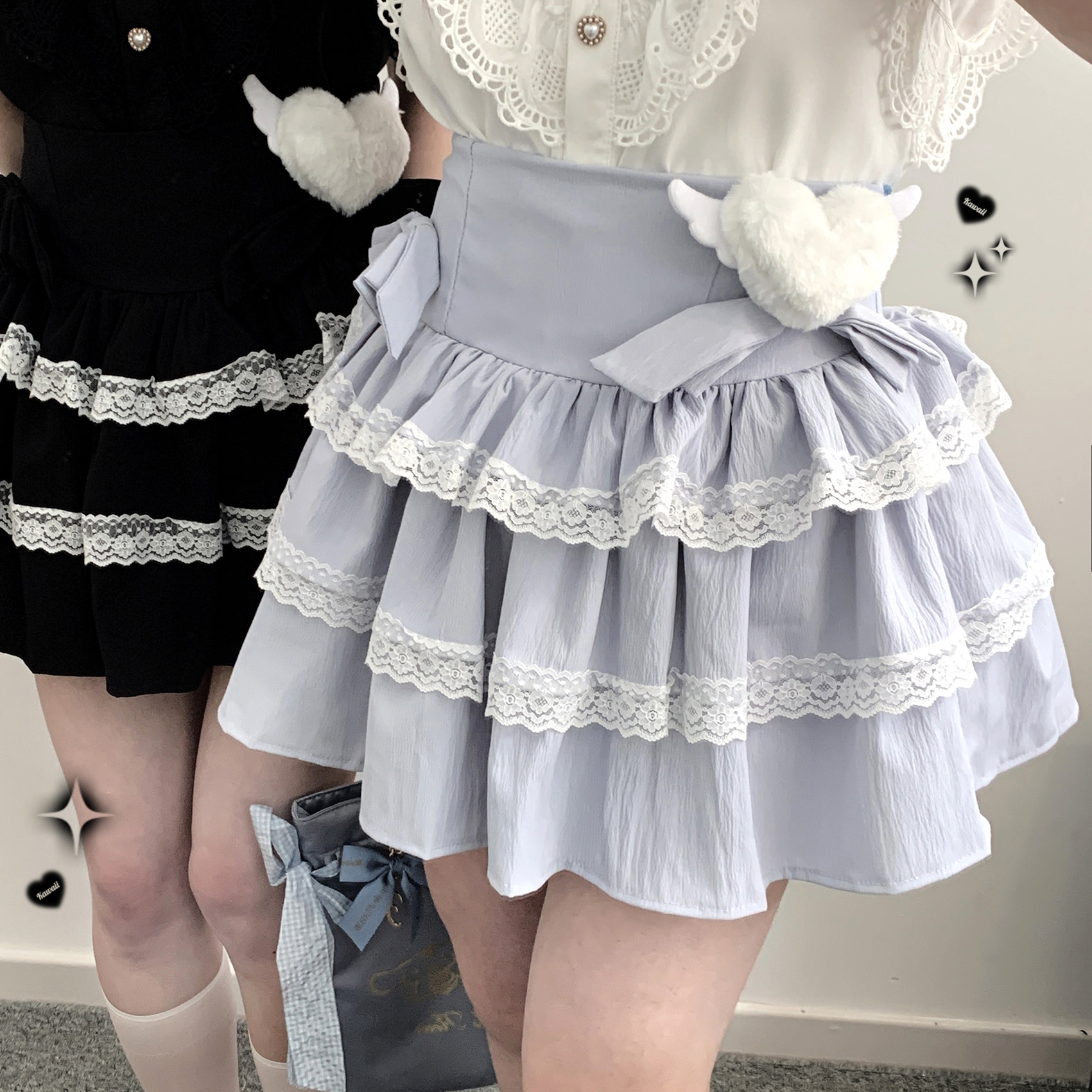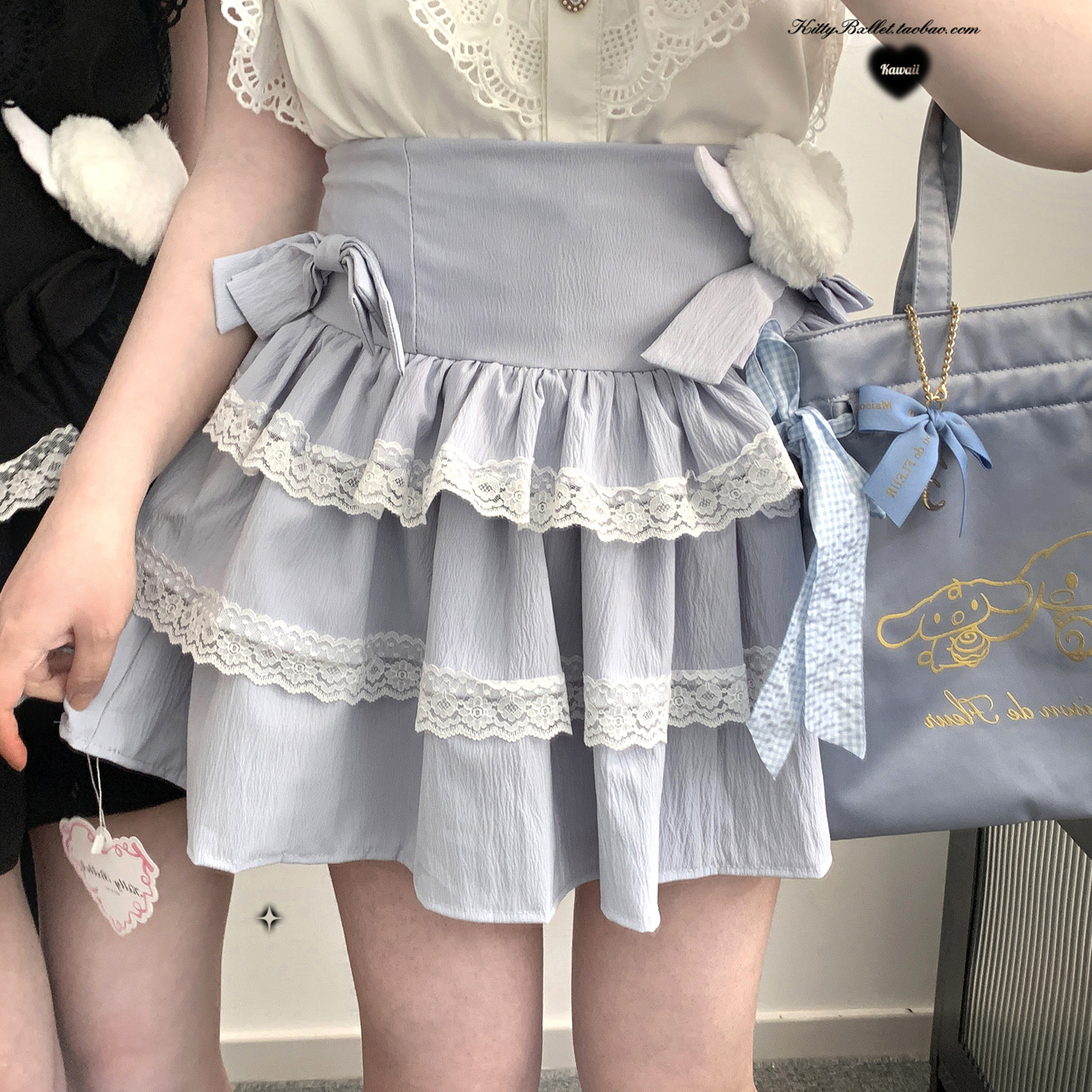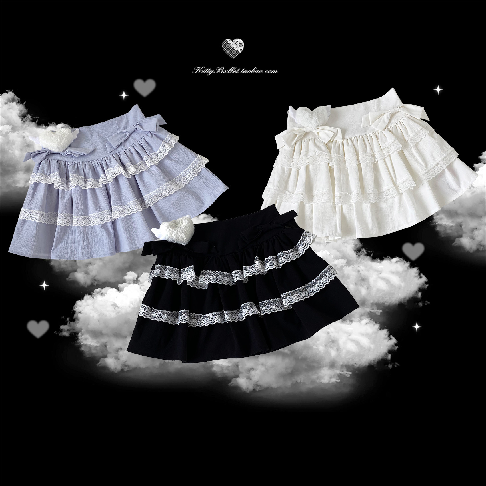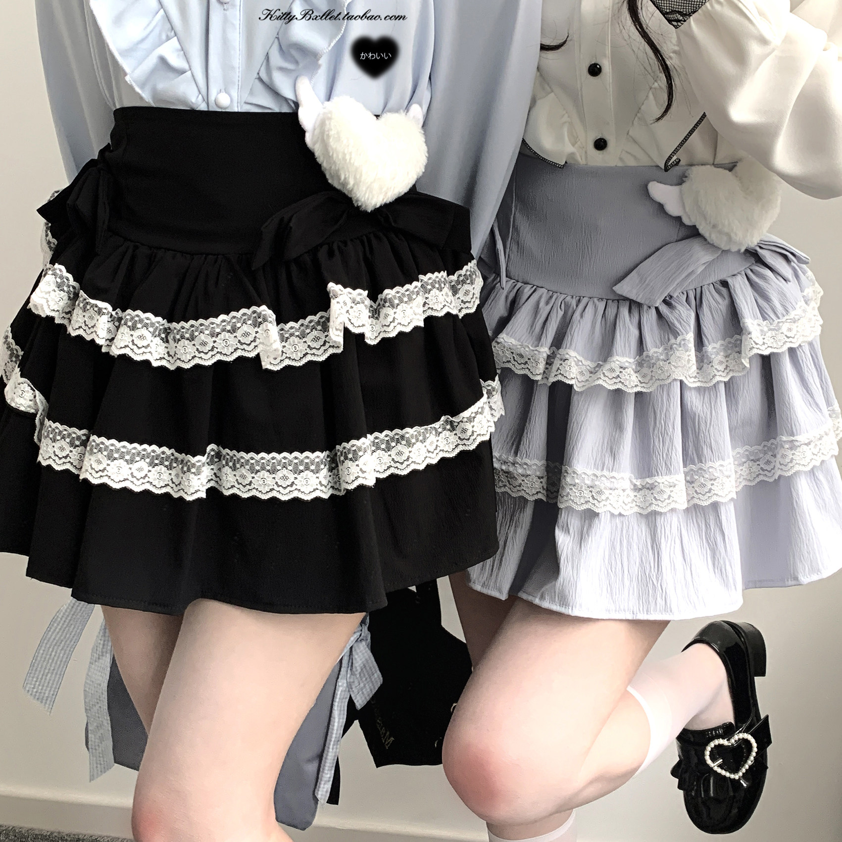 KittyBxllet original [Heavenly Girl Cake] Bowknot Double Lace Asian House Cake Skirt