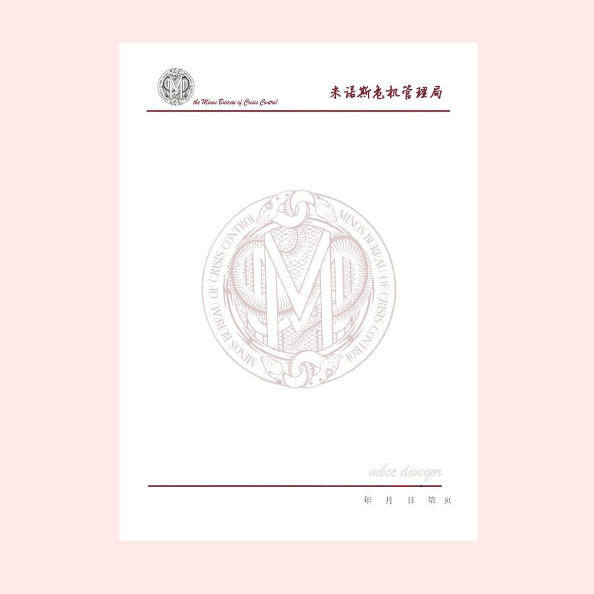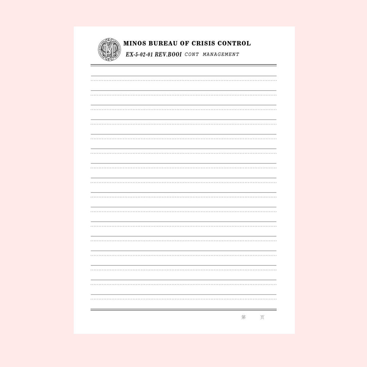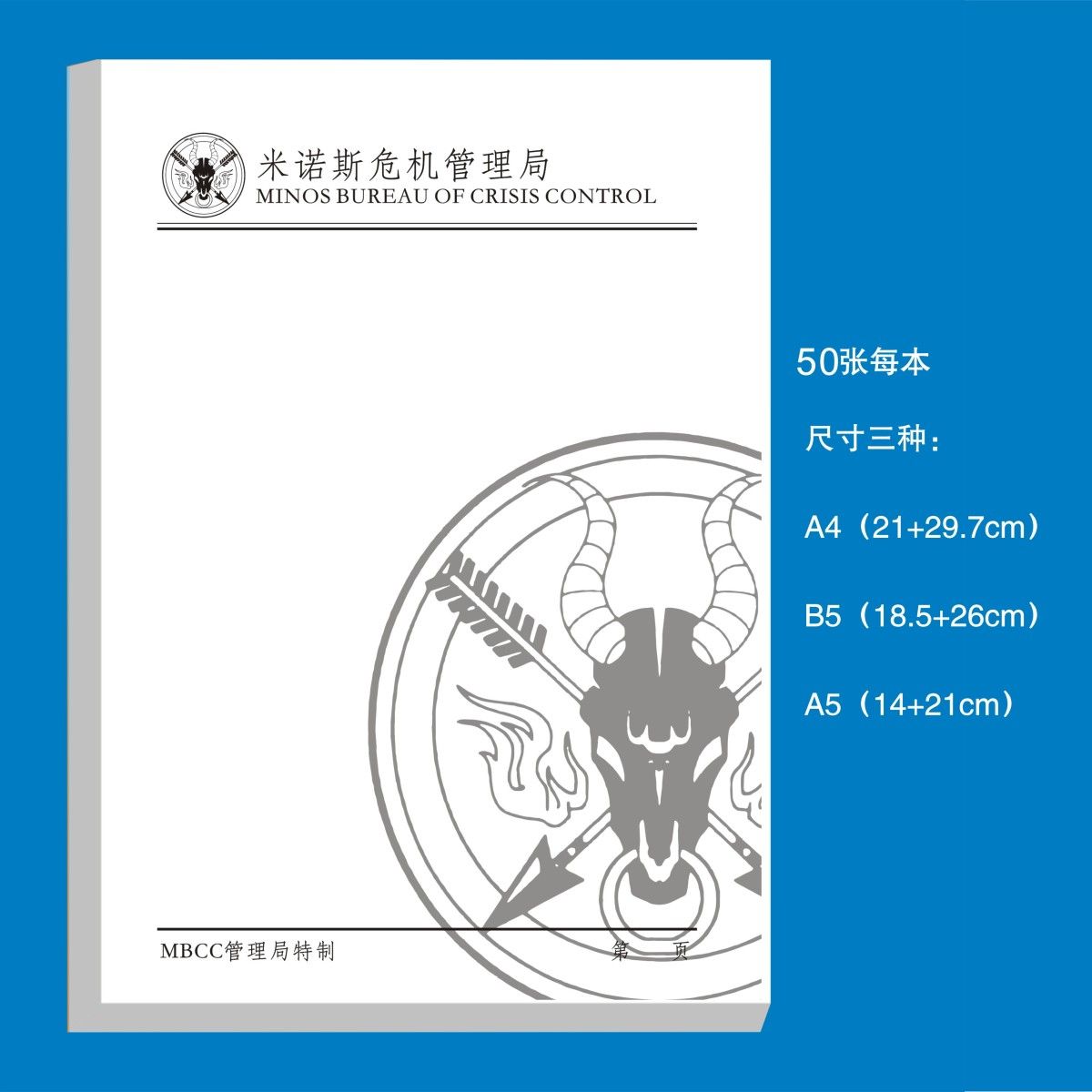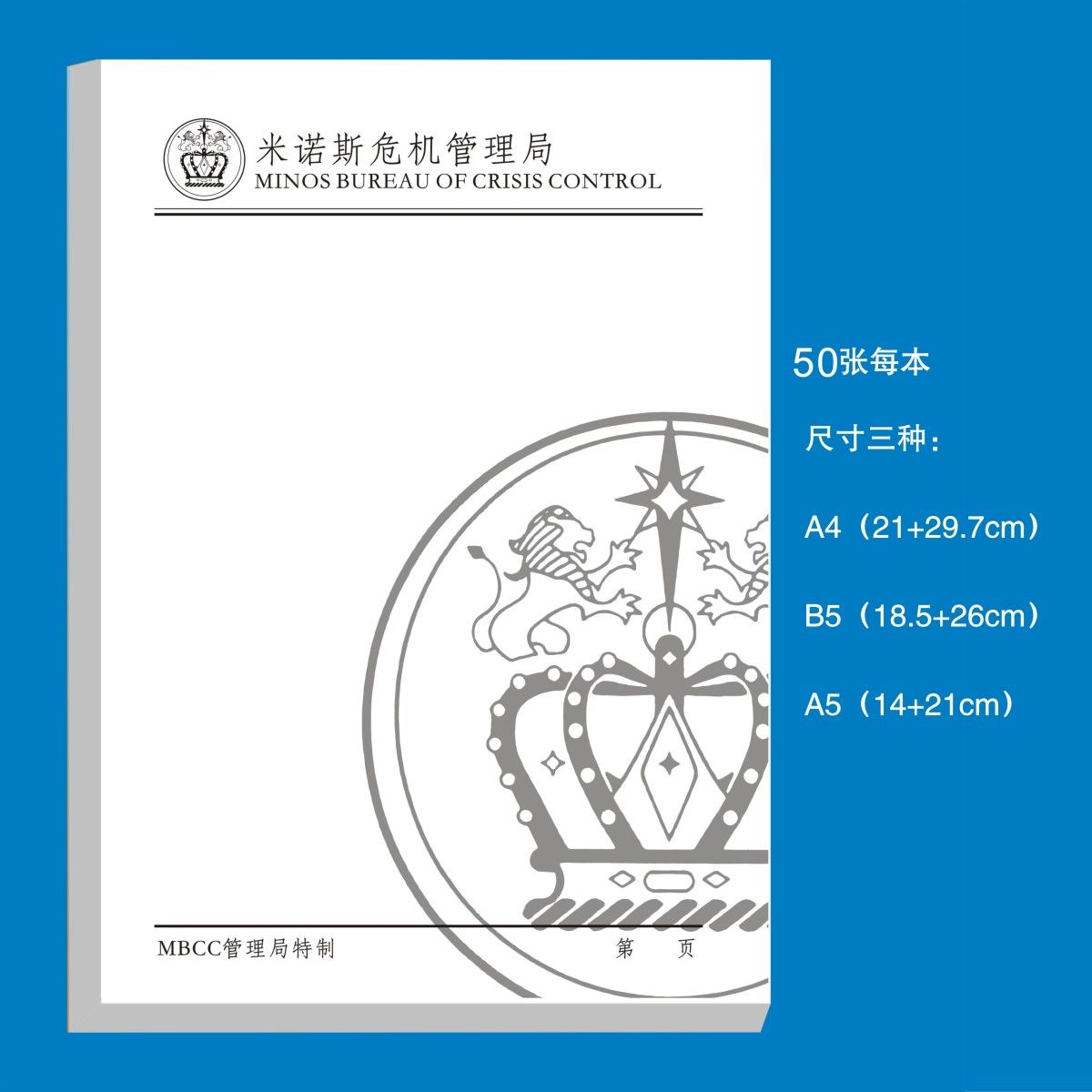 100 sheets of 16K size draft paper, Minos Crisis Management Bureau, 190*265 mm, A4 size available upon request.