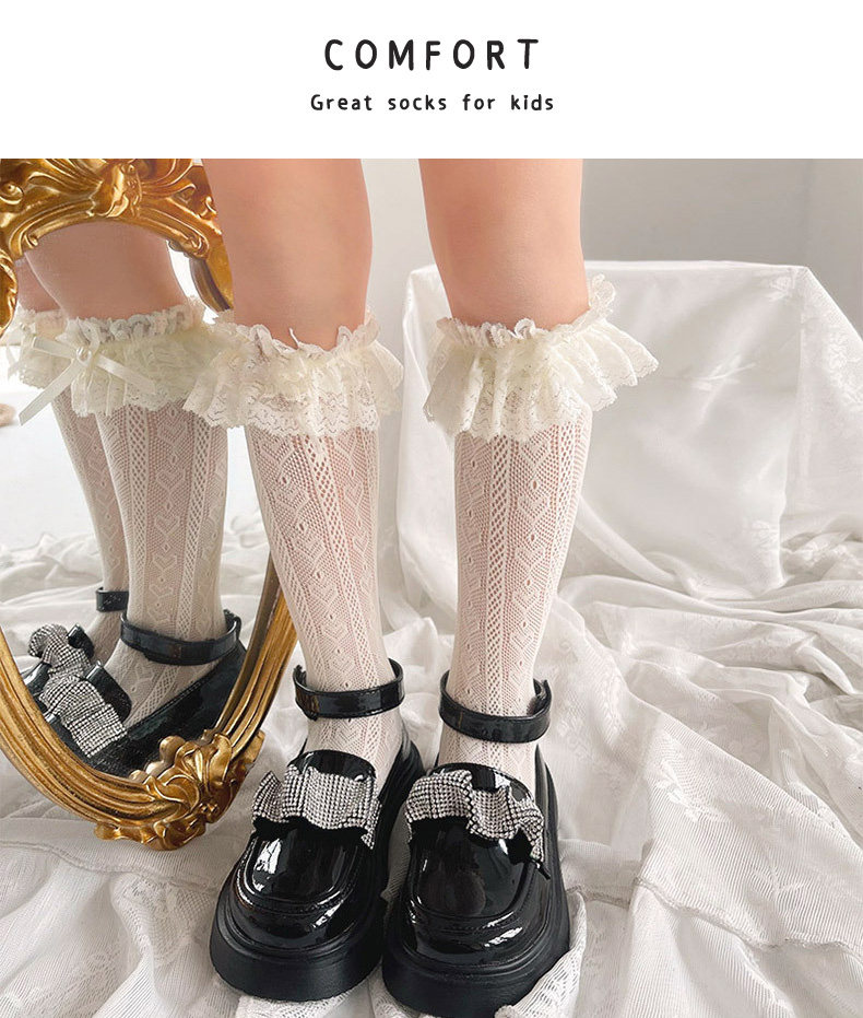 罗莉塔袜子女童夏季薄款女宝宝蕾丝花边白色公主长筒袜儿童中筒袜 [Original Page Link]