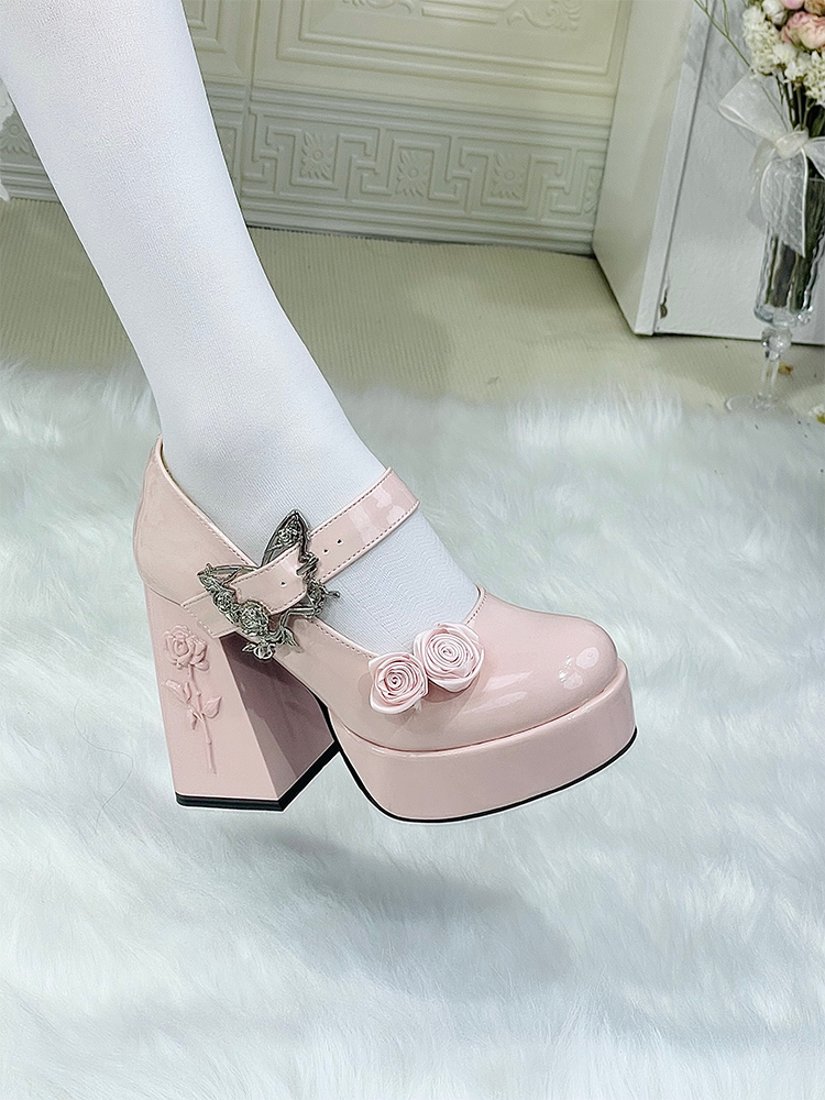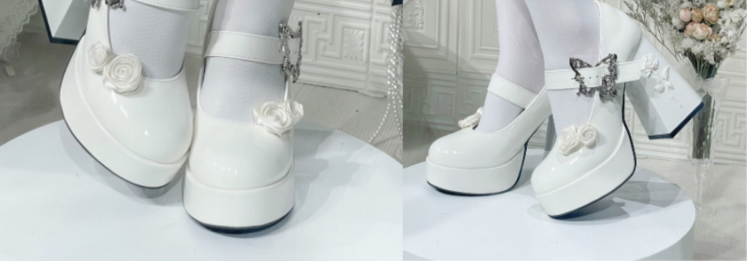 In stock: "Vanity Fairy Death Dream" waterproof platform platform platform thick-heeled butterfly rose niche high heels, fully pre-ordered.