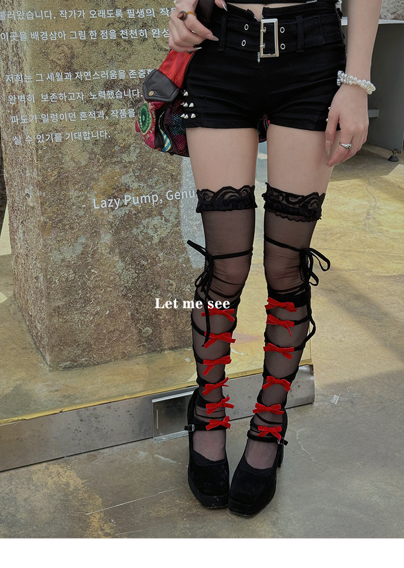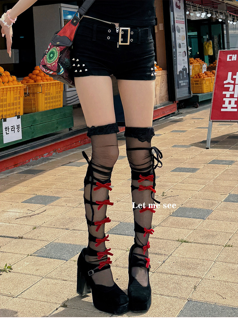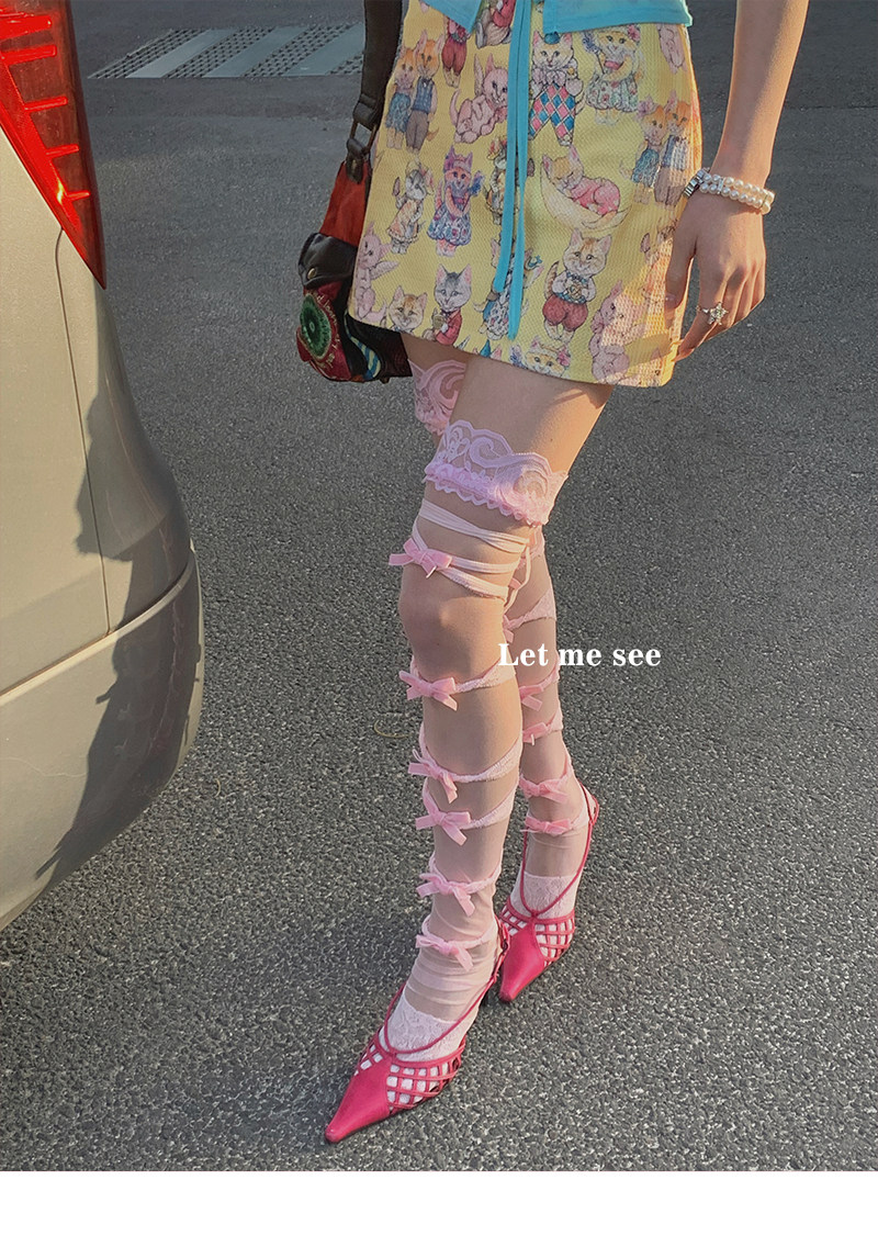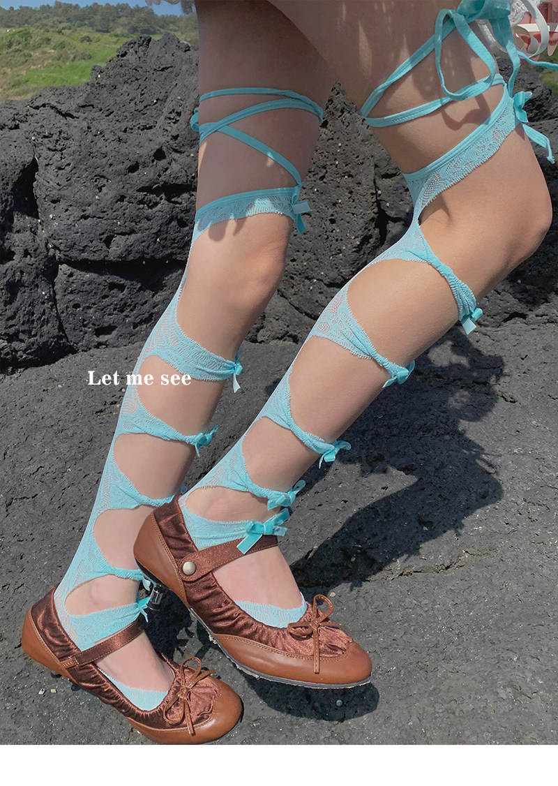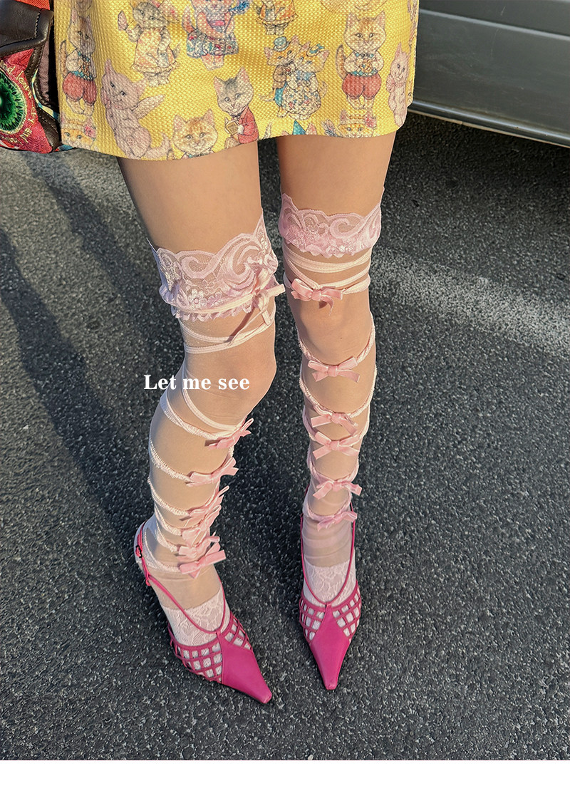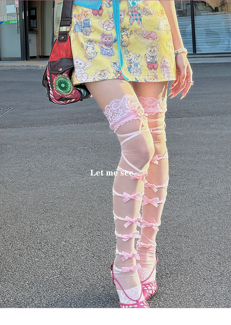 LET ME SEE 甜美公主可爱蝴蝶结镂空网袜洛丽塔学院风过膝袜高筒 [Original Page Link]