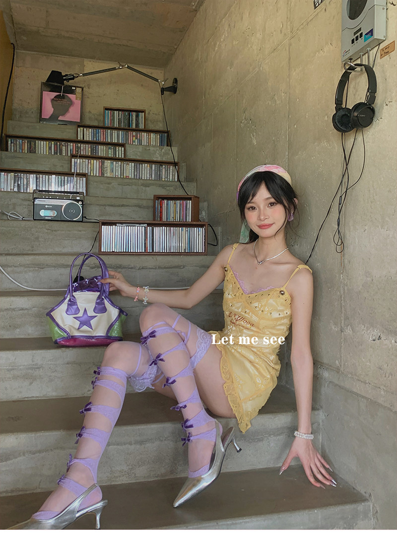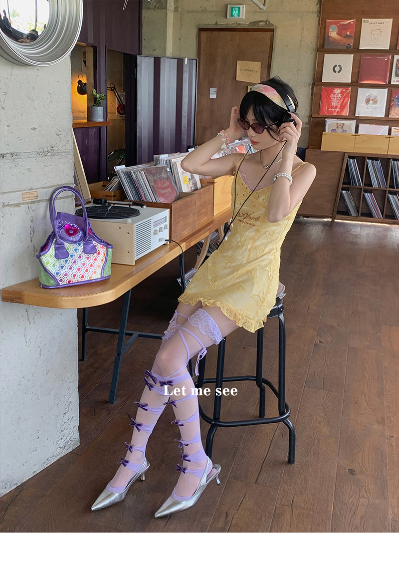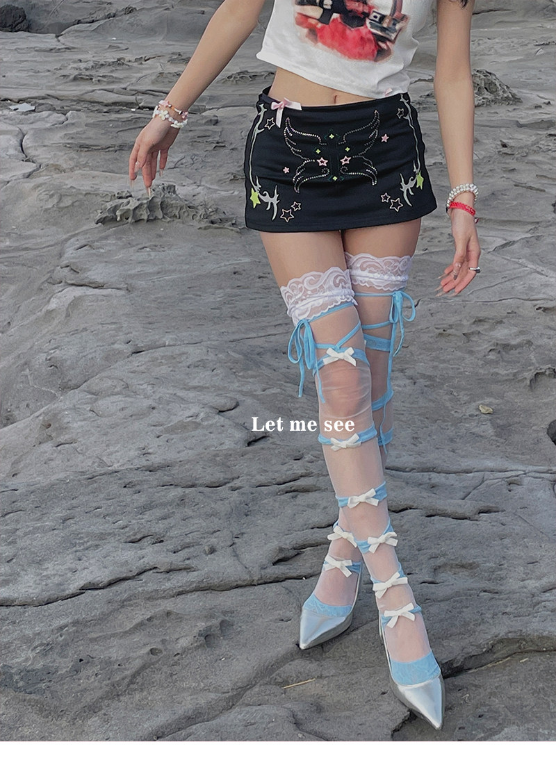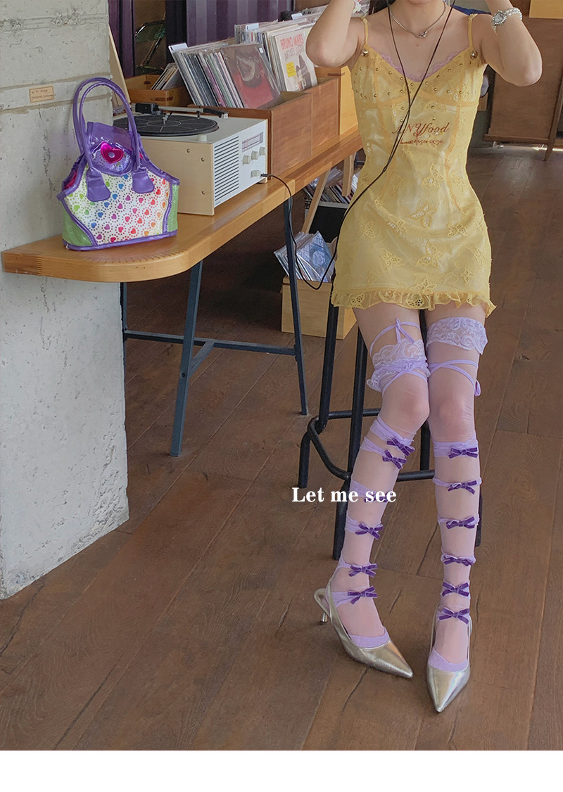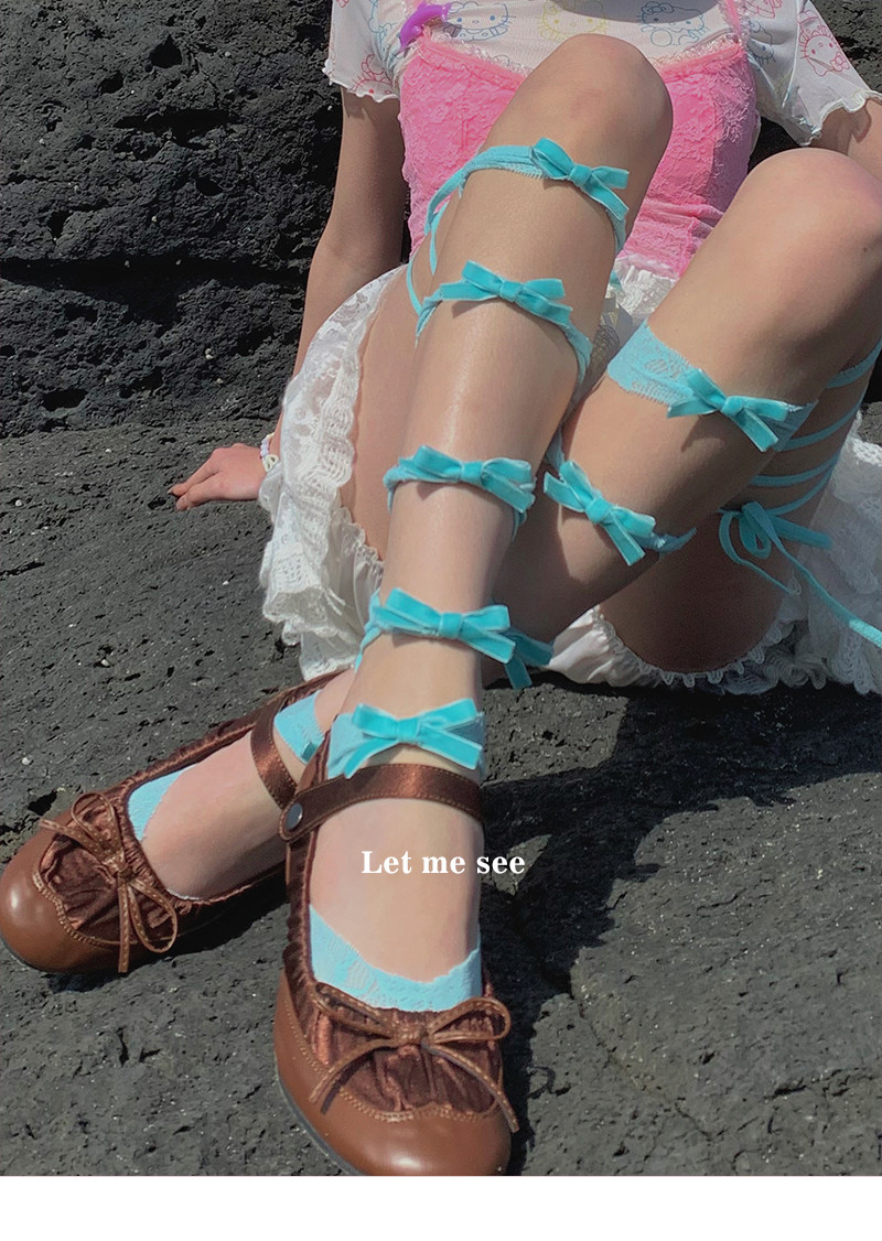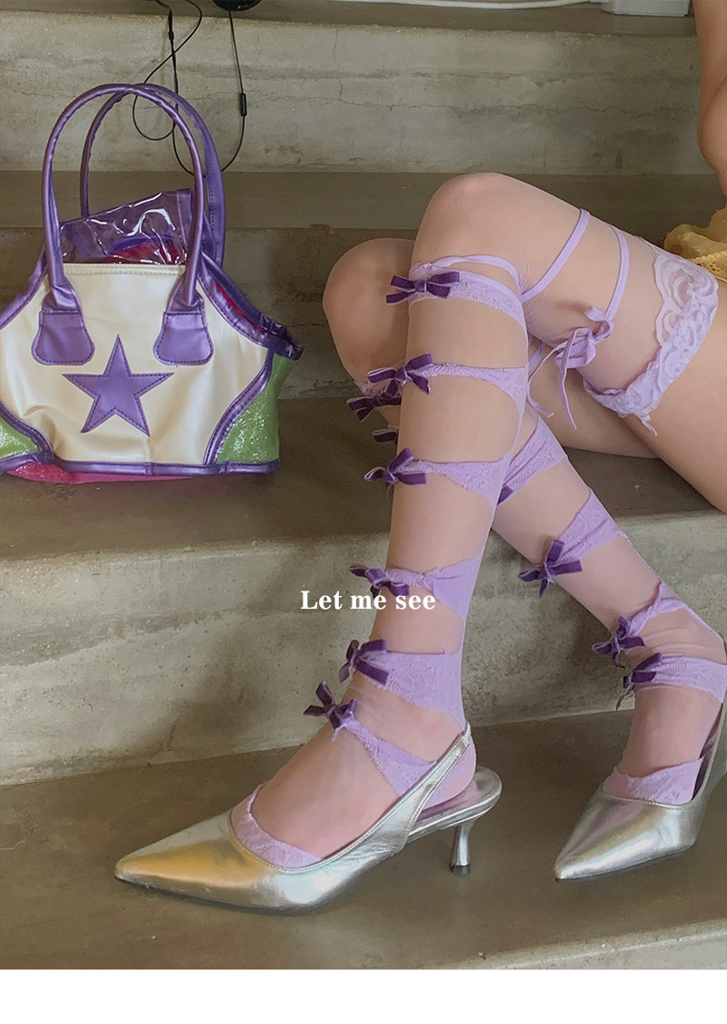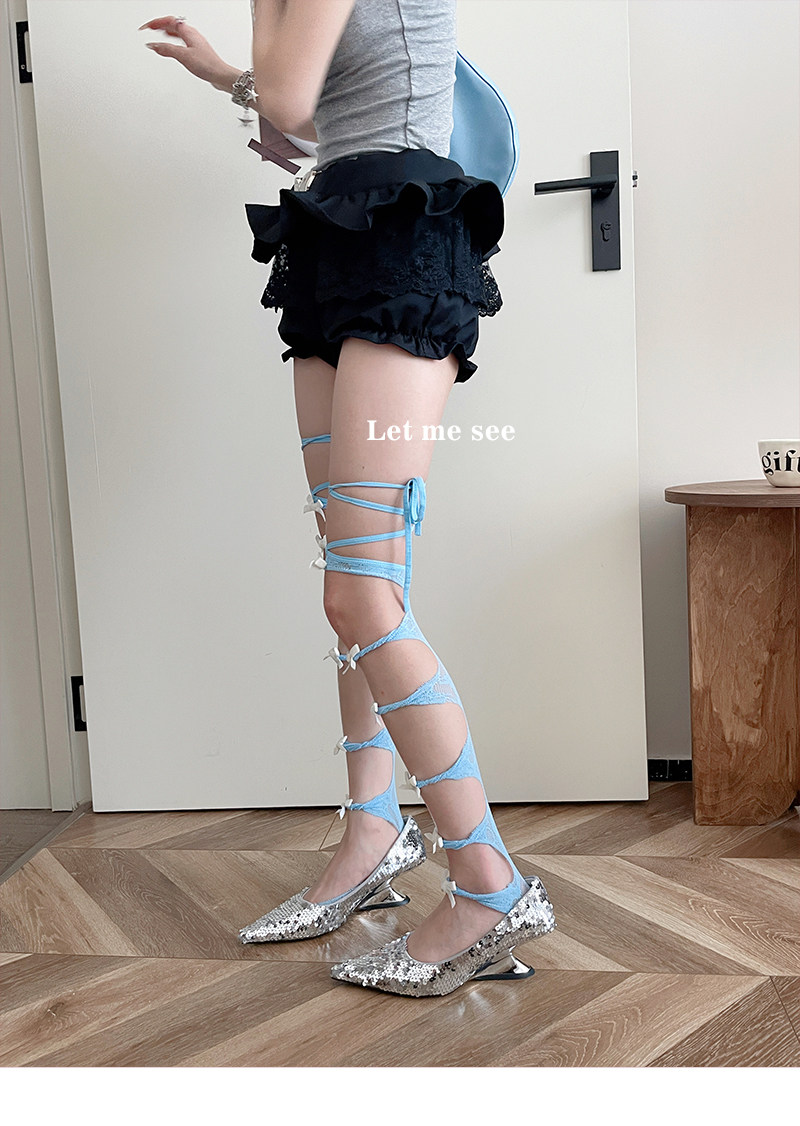 LET ME SEE 甜美公主可爱蝴蝶结镂空网袜洛丽塔学院风过膝袜高筒 [Original Page Link]