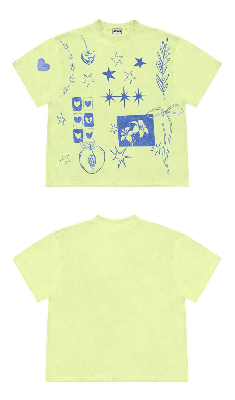Mottled斑驳 设计师工作室!涂鸦ins风手绘印花tee重磅潮流短袖T [Original Page Link]
