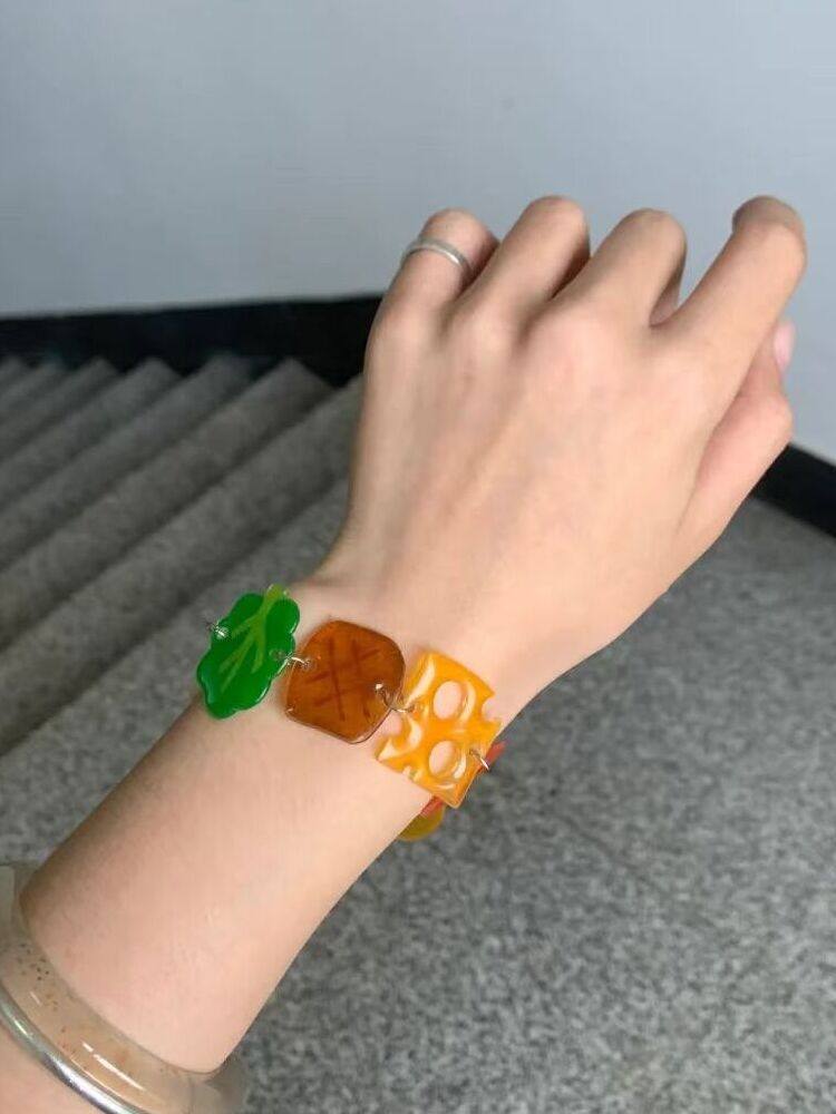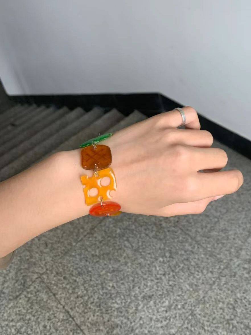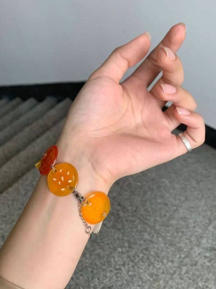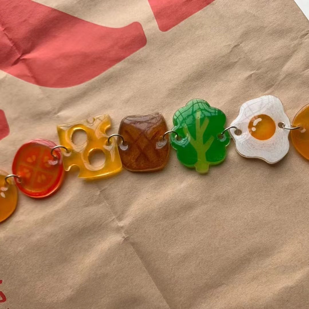 Purchase the same acrylic hamburger bracelet found on Xiaohongshu (Little Red Book), a creative and cute hand decoration, backpack, personalized pendant, and gift pendant.