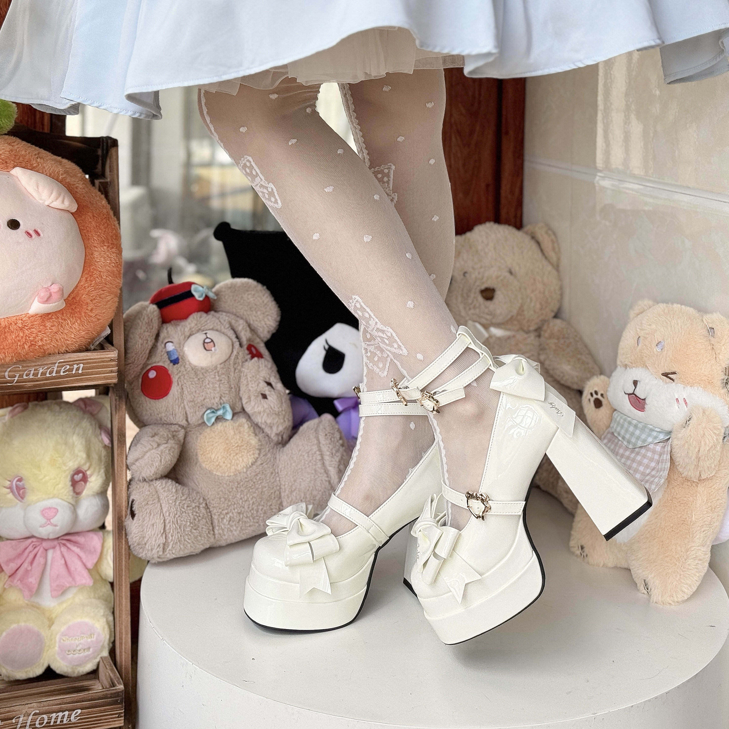 In stock: Love's Wish Lolita High Heels, Original Lolita Style, Japanese Ballet Sweet Summer Round Toe Love Letter