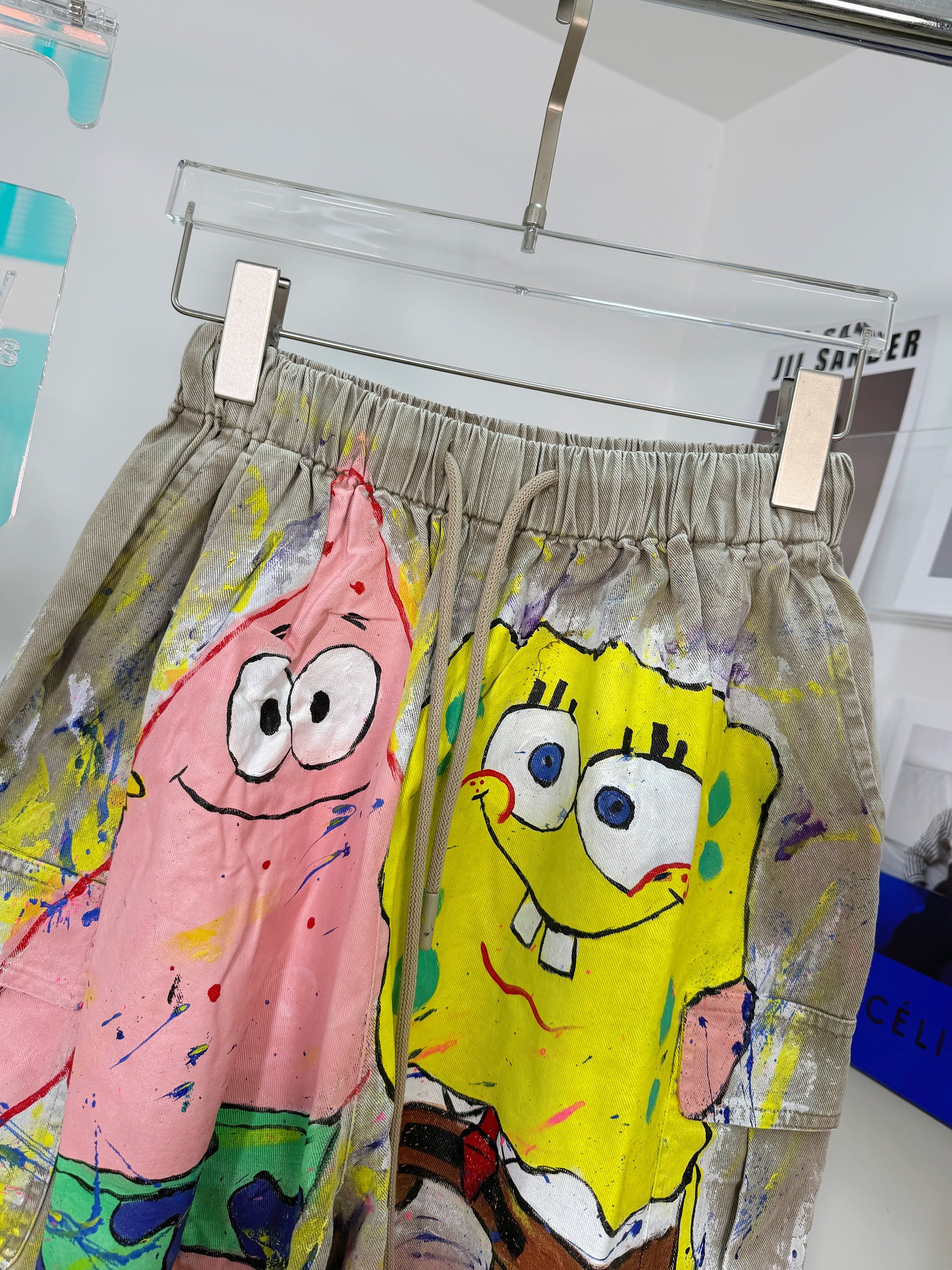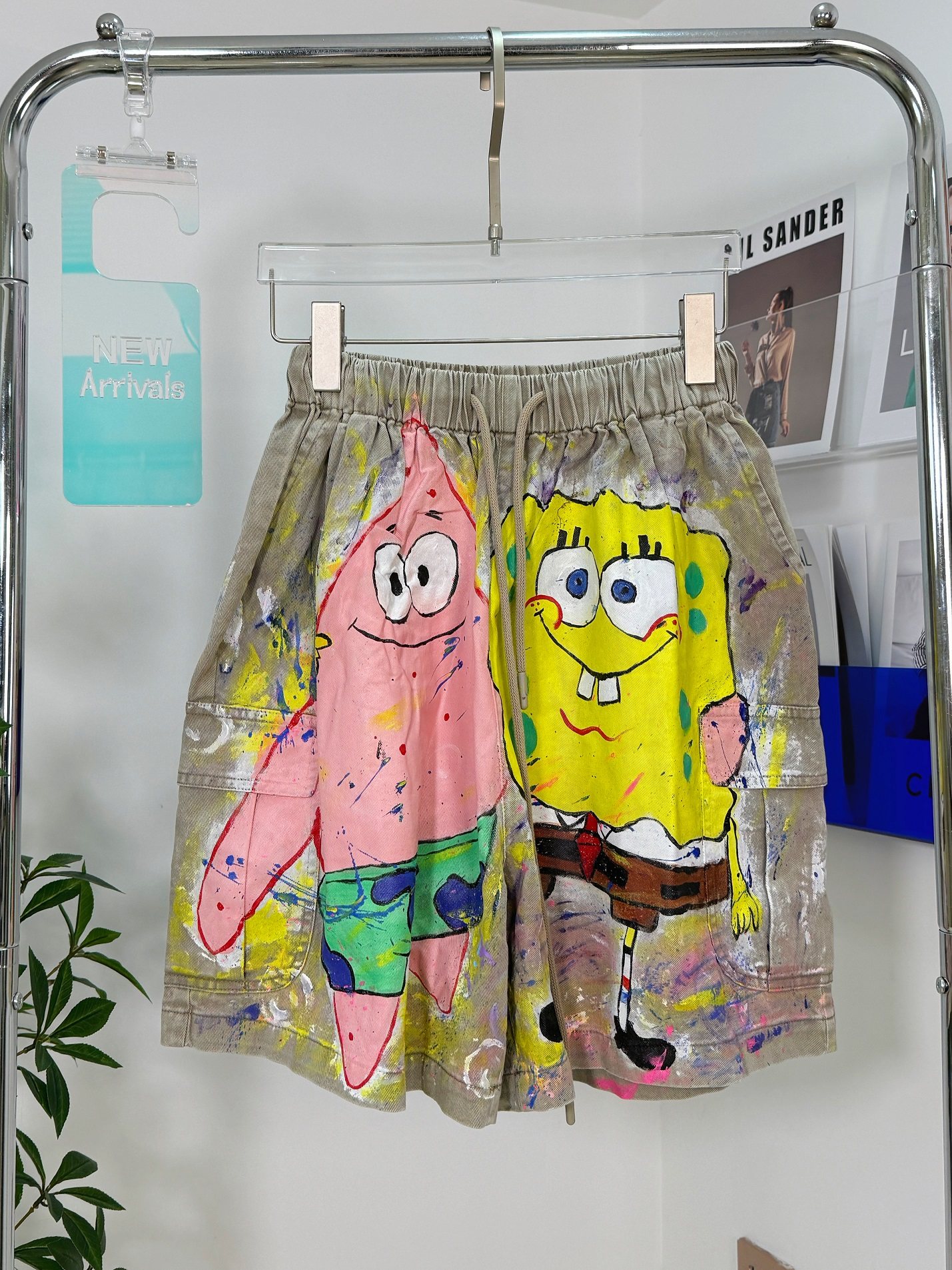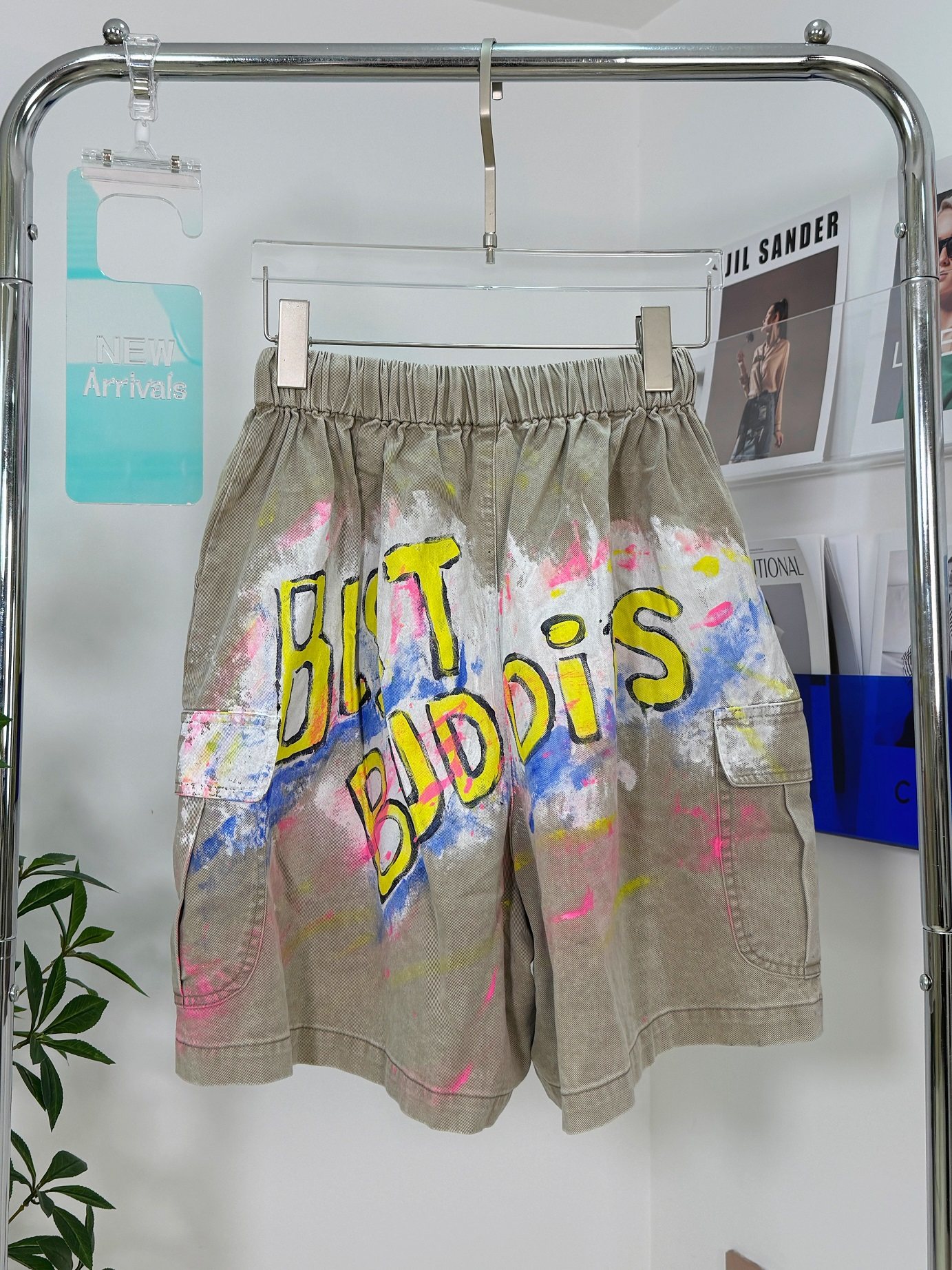 K696 HK Designer Private Customized European Goods 2024 Summer New Hand-painted Original Graffiti Workwear Shorts