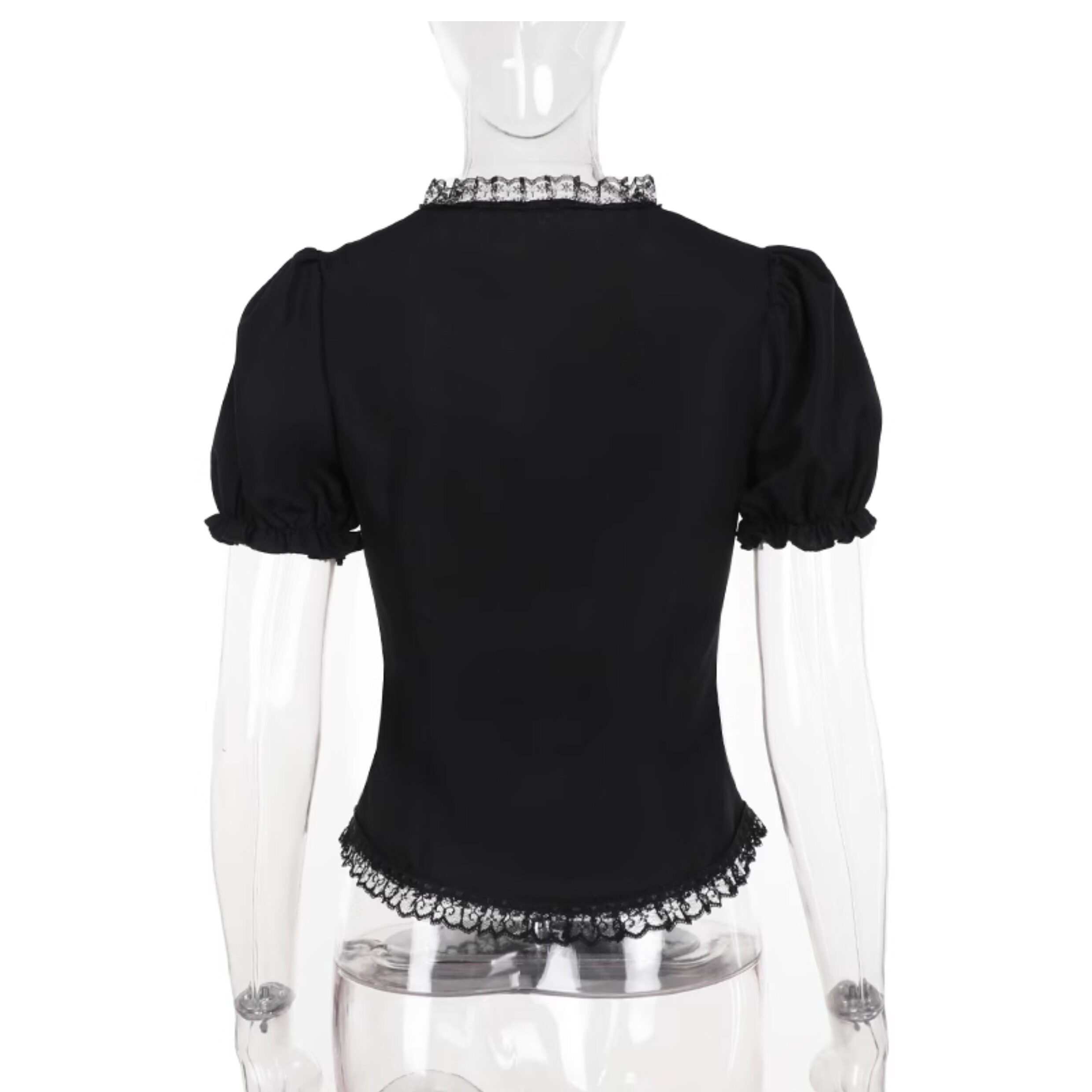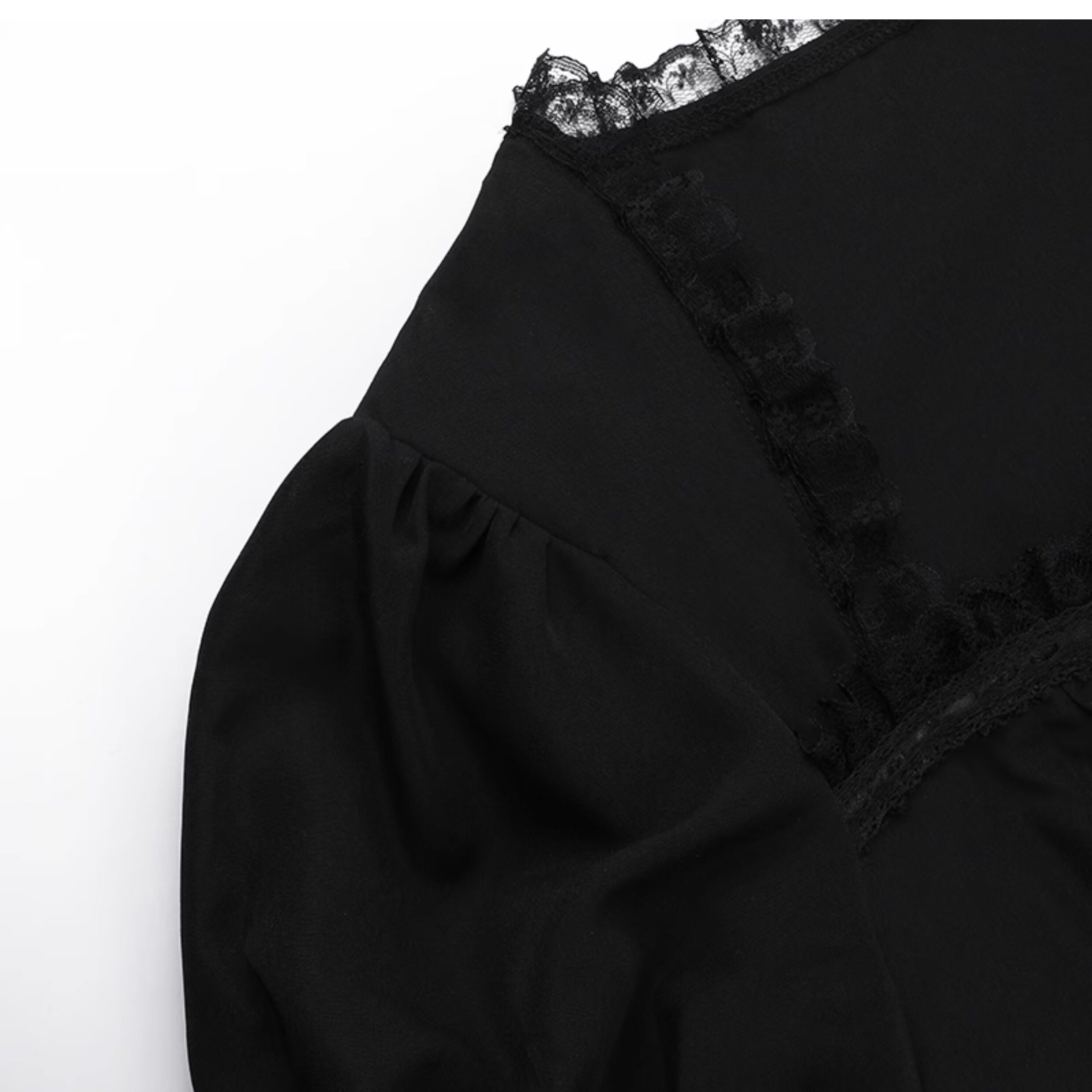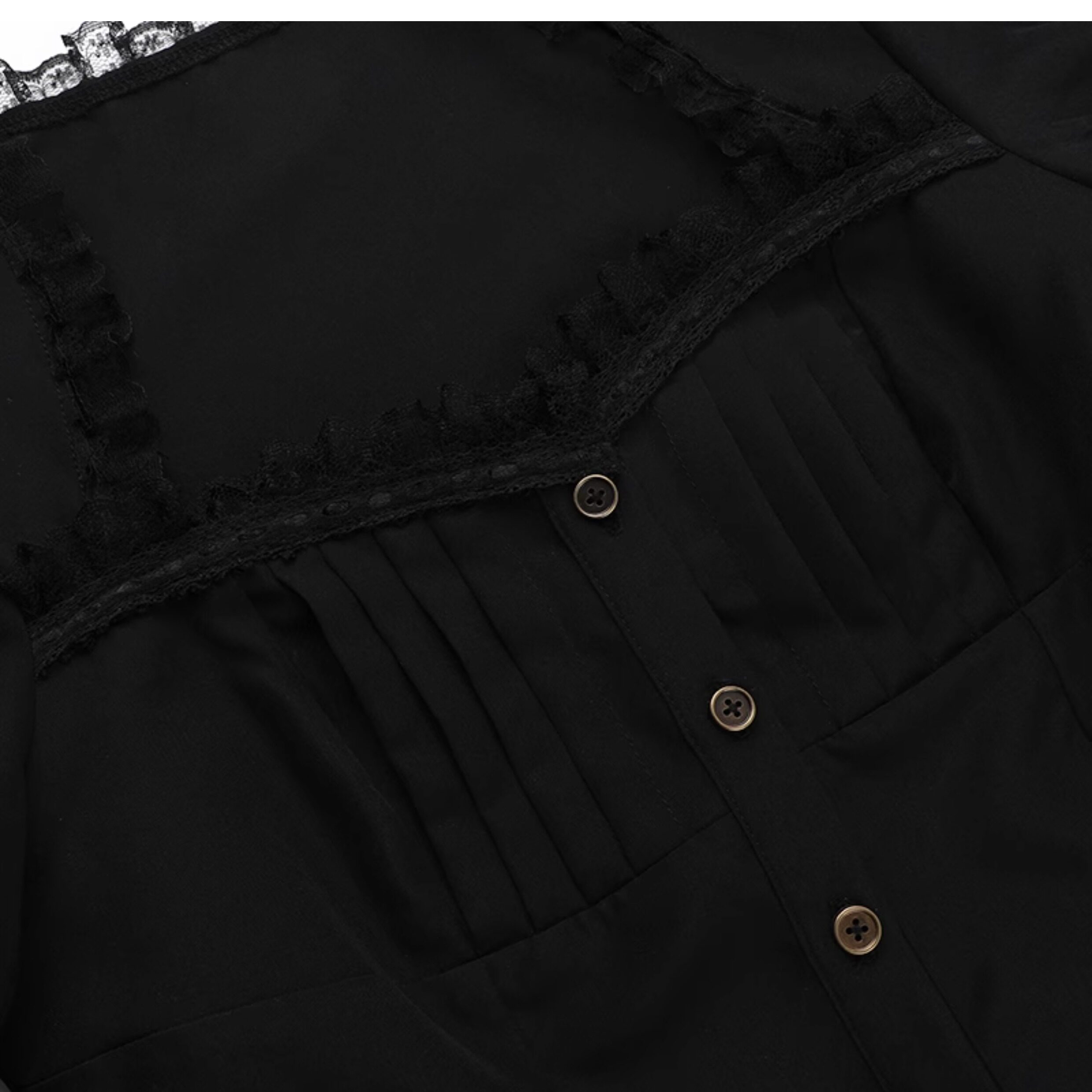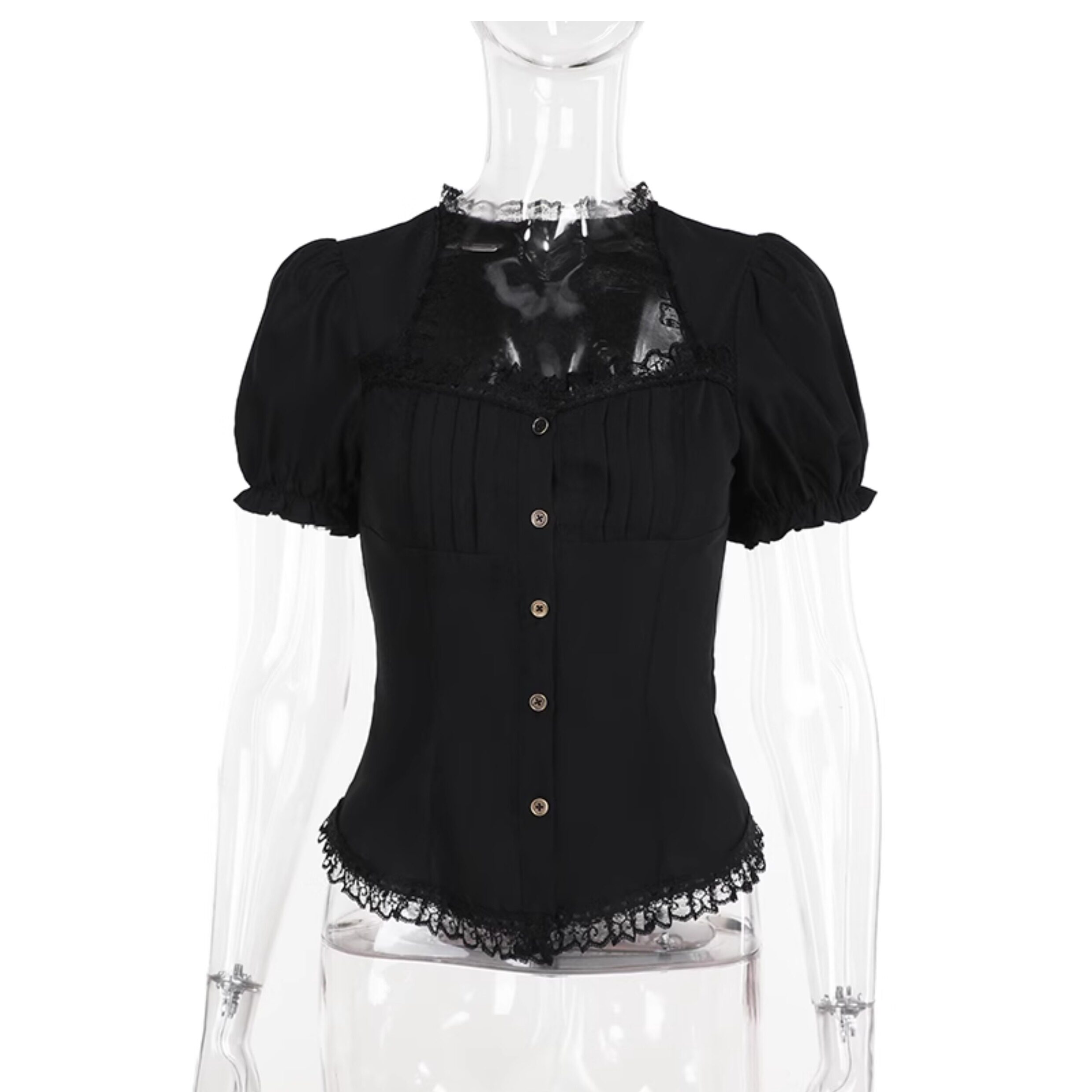 wannathis 罗莉塔黑色衬衫lolita泡泡袖轻哥特风衬衫方领短袖上衣 [Original Page Link]