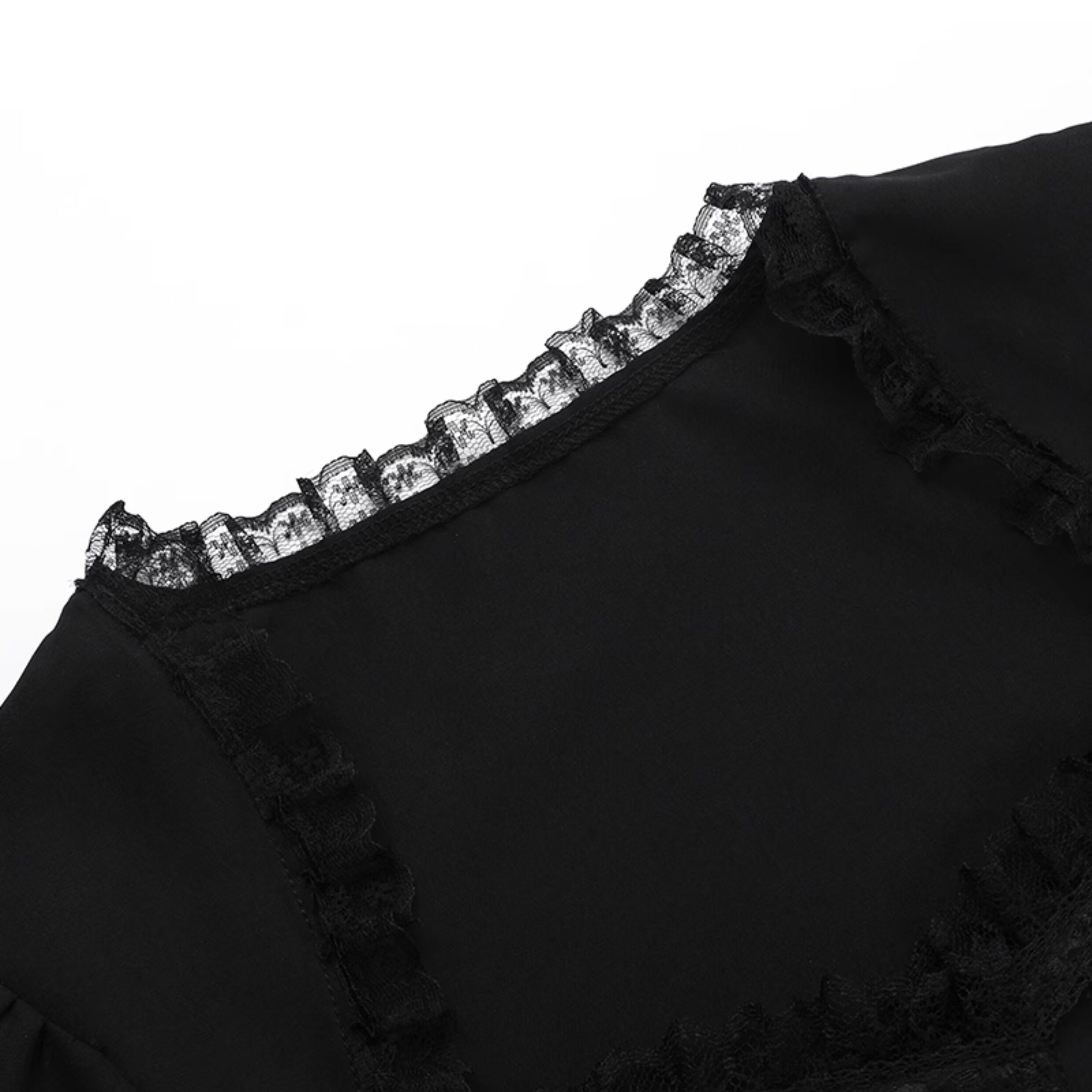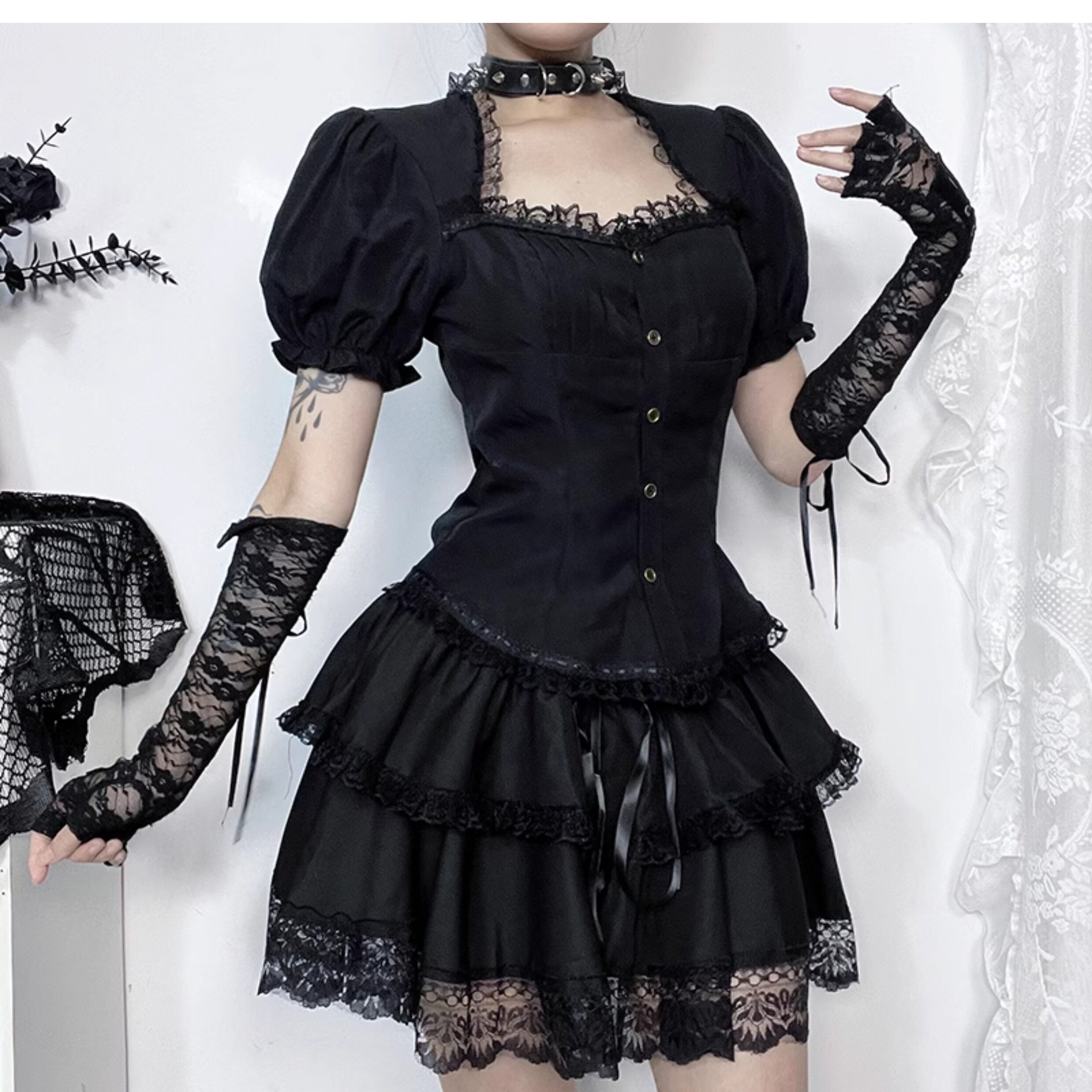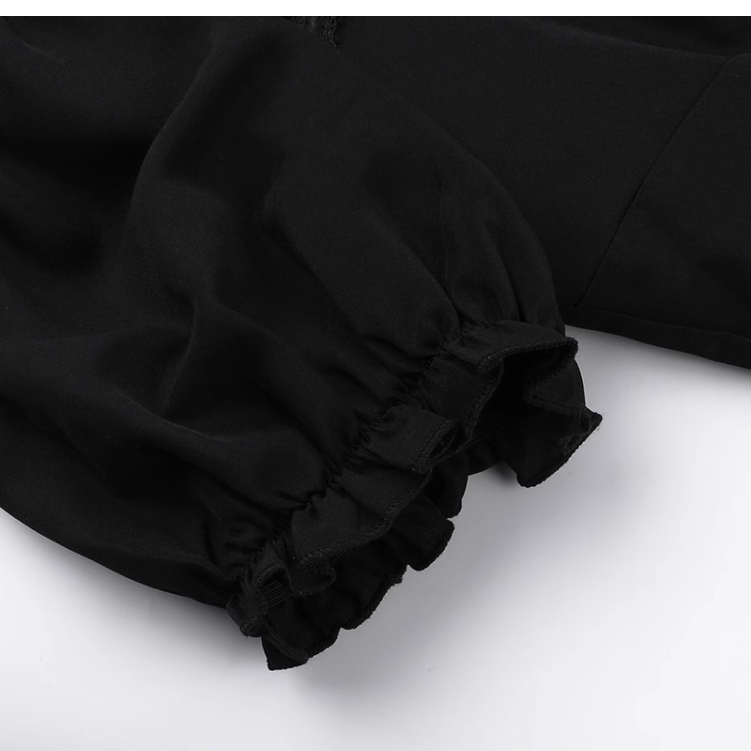 wannathis 罗莉塔黑色衬衫lolita泡泡袖轻哥特风衬衫方领短袖上衣 [Original Page Link]