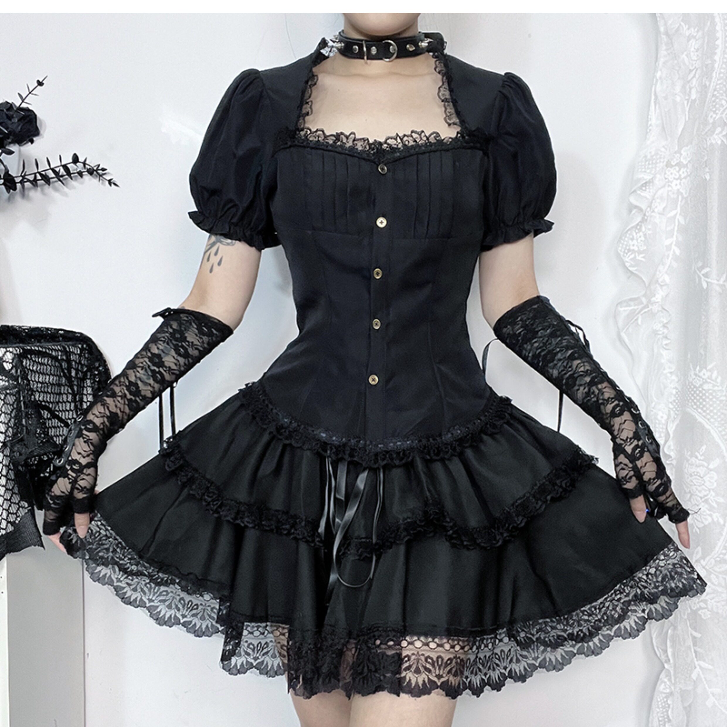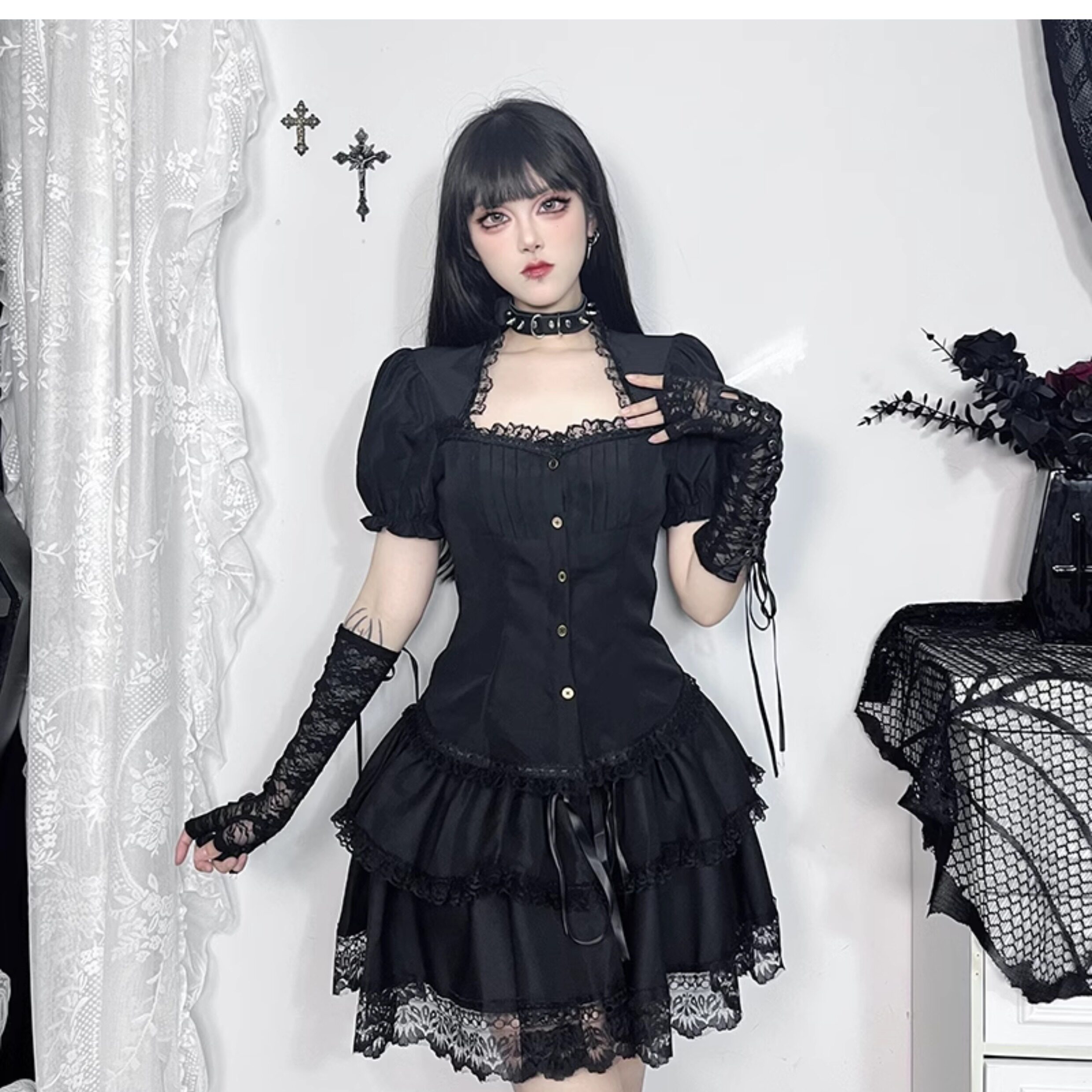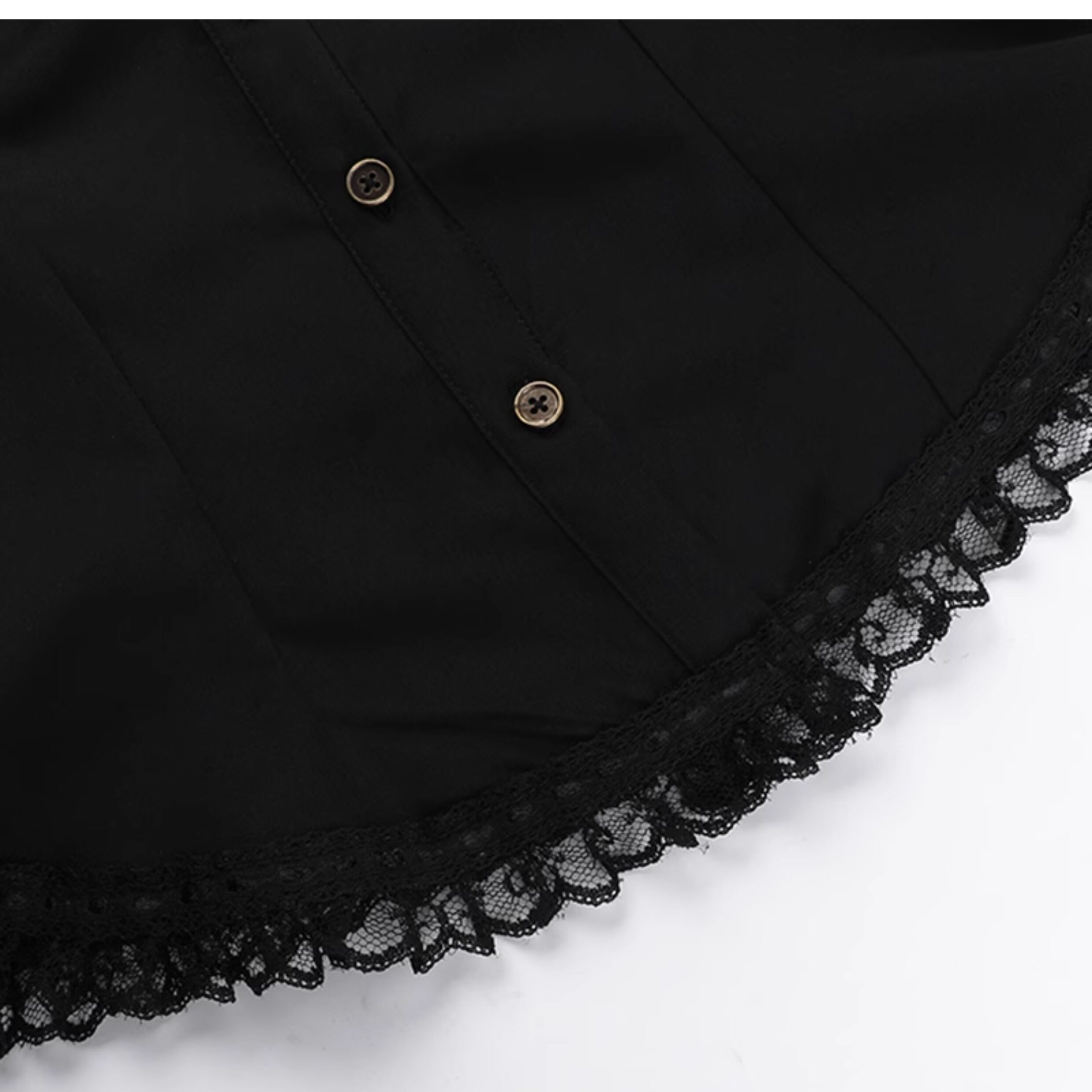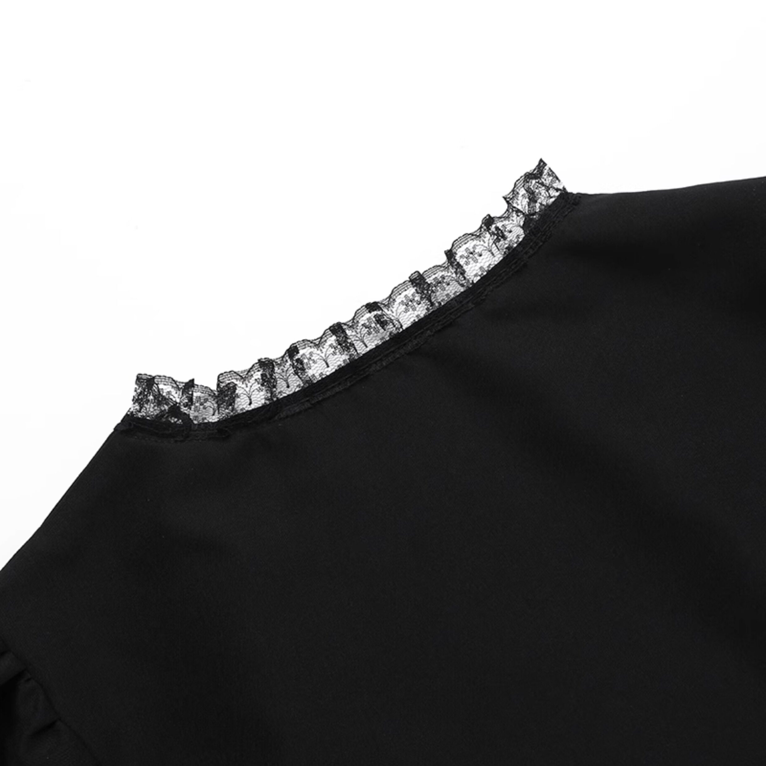 wannathis 罗莉塔黑色衬衫lolita泡泡袖轻哥特风衬衫方领短袖上衣 [Original Page Link]