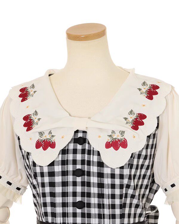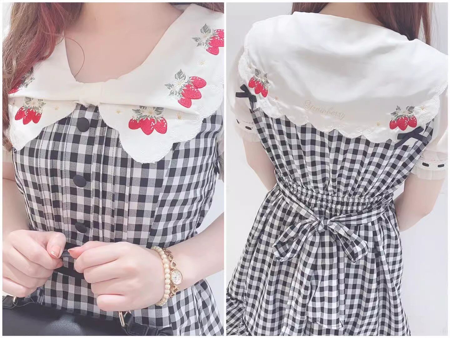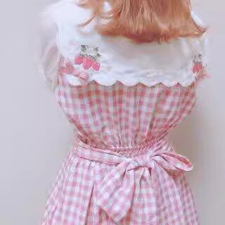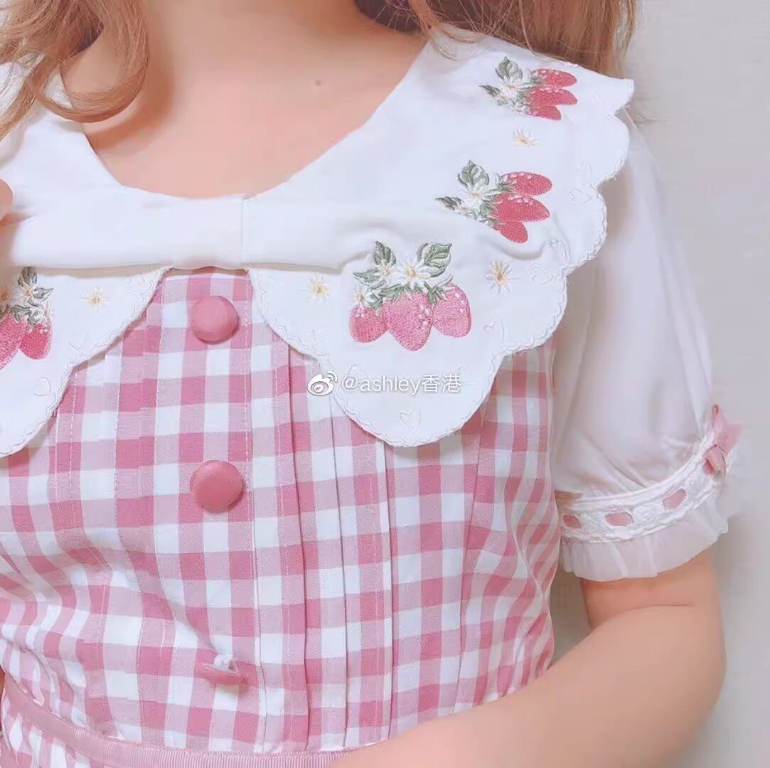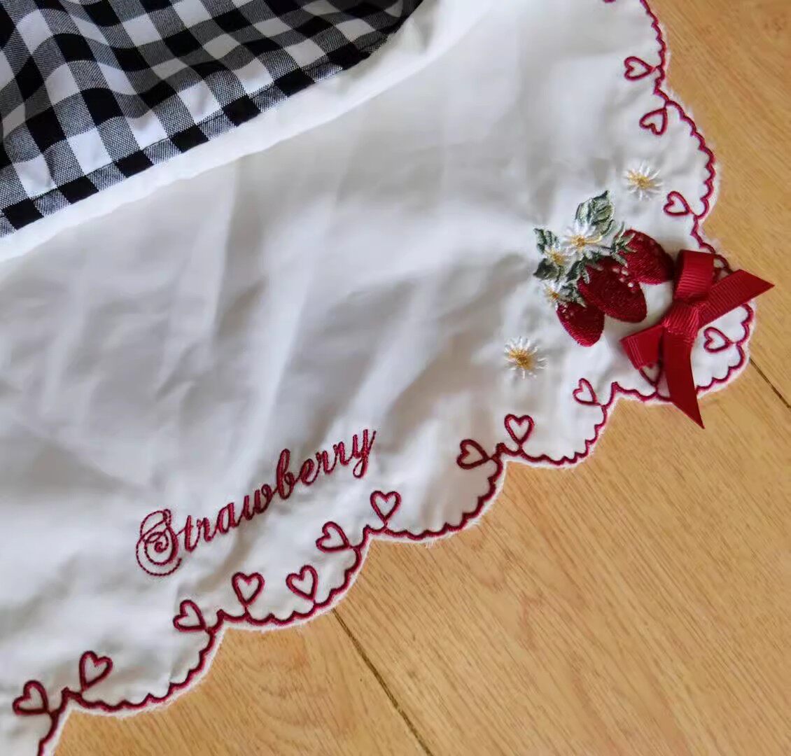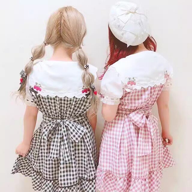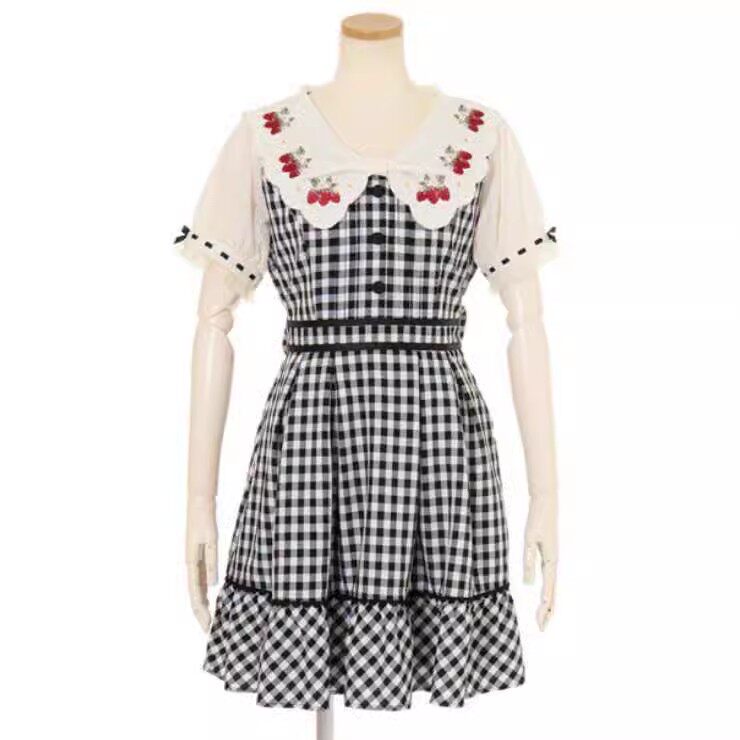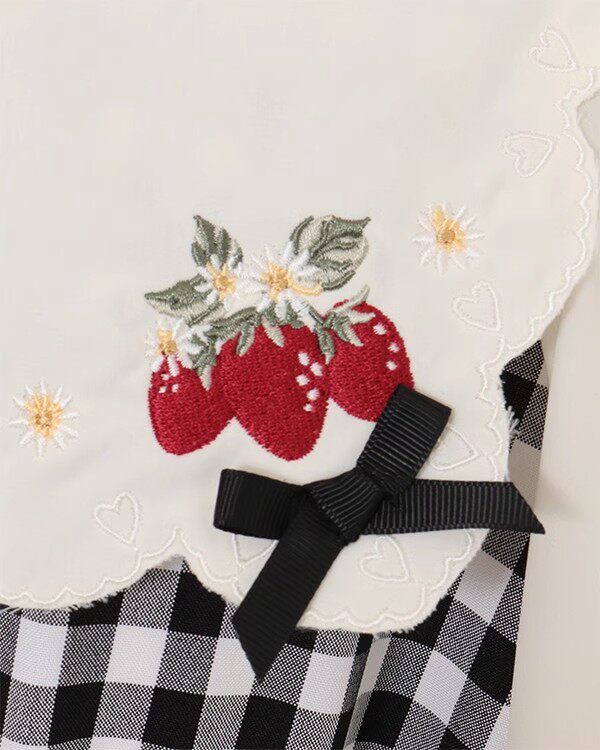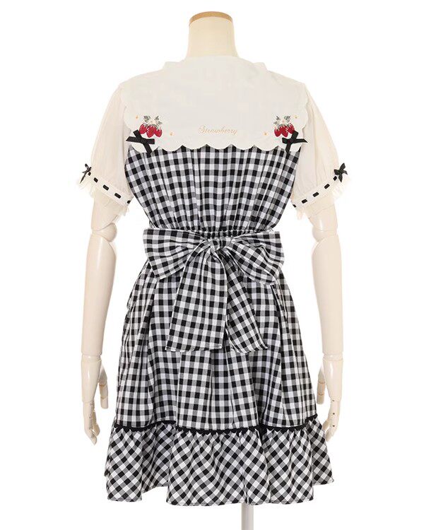 2026夏季日系蝴蝶结甜美草莓刺绣量产型海军领格子连衣裙高腰修身 [Original Page Link]