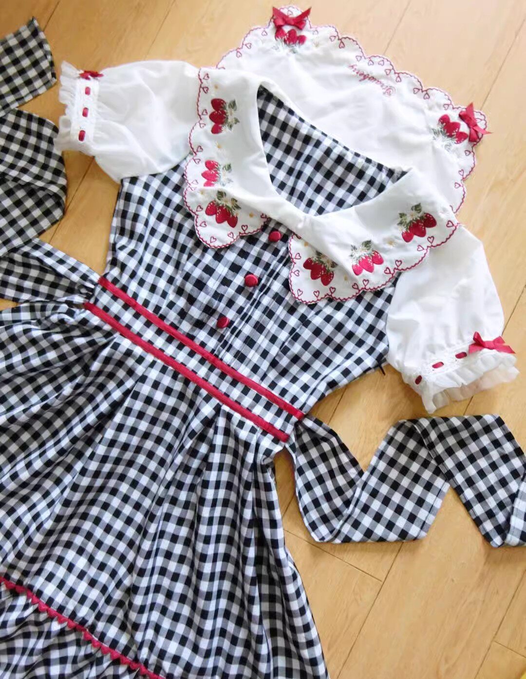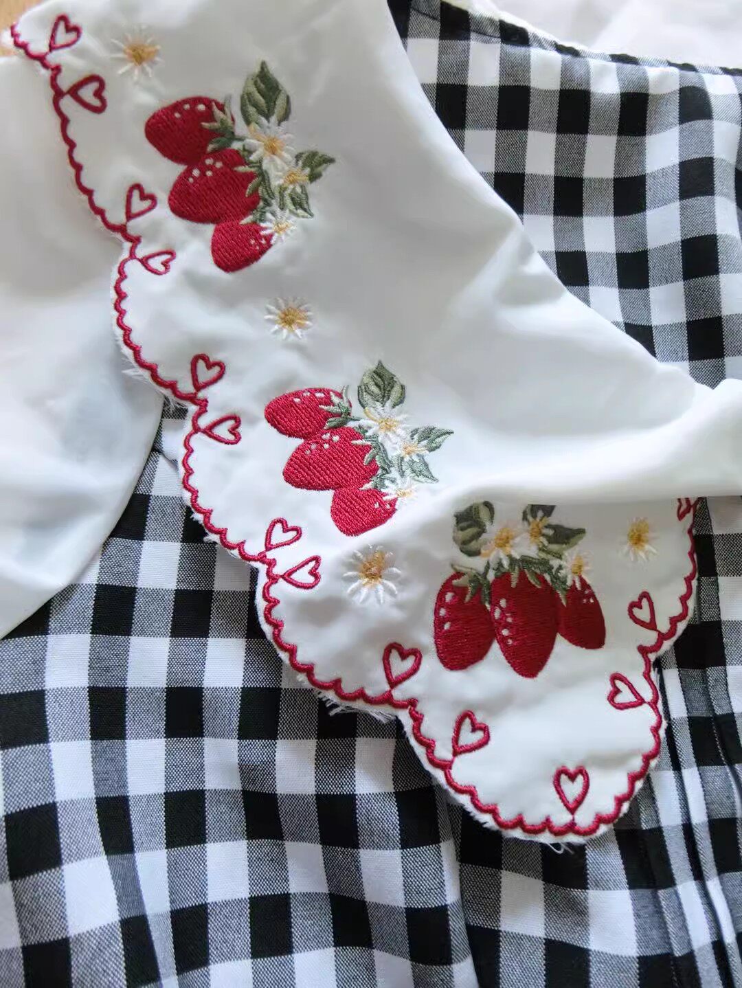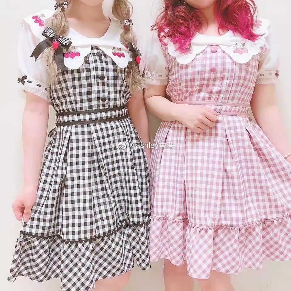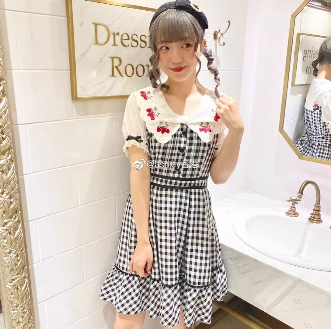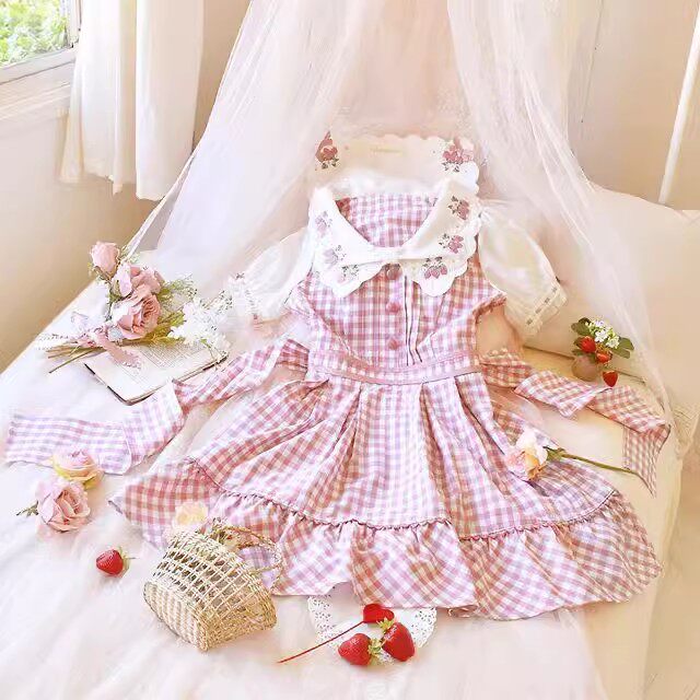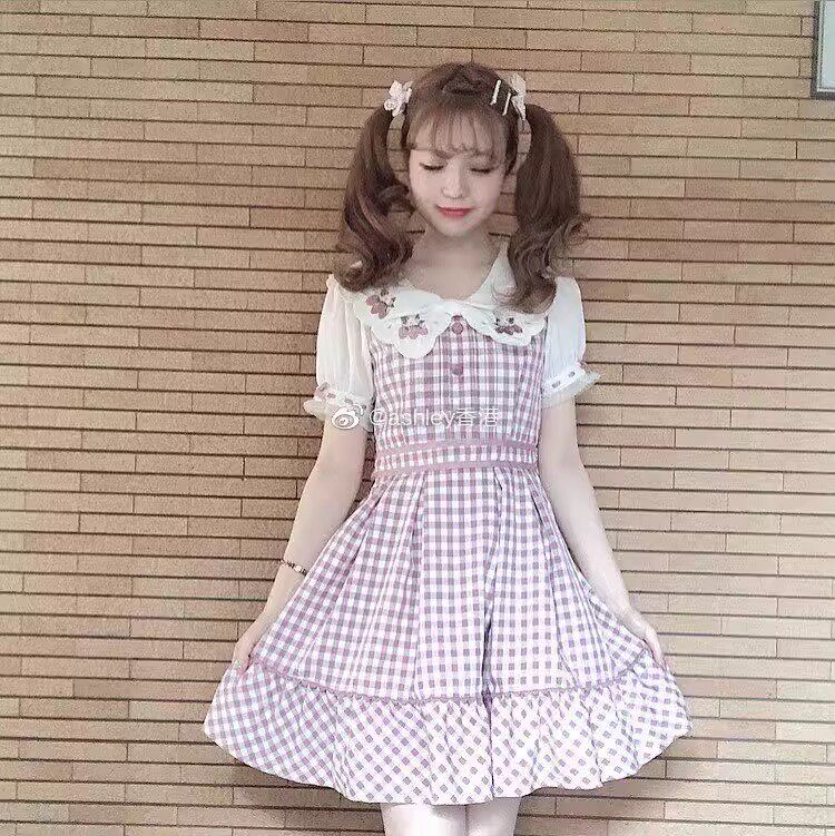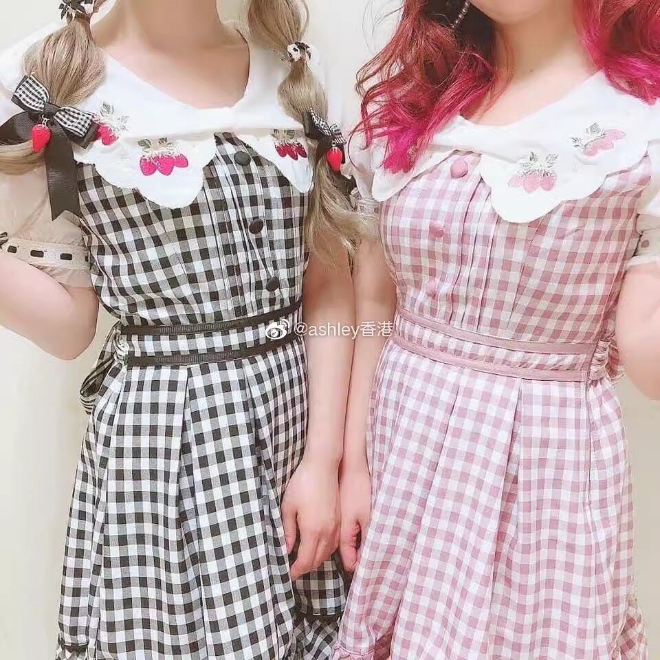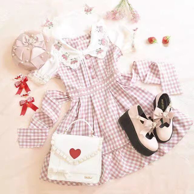 2026夏季日系蝴蝶结甜美草莓刺绣量产型海军领格子连衣裙高腰修身 [Original Page Link]