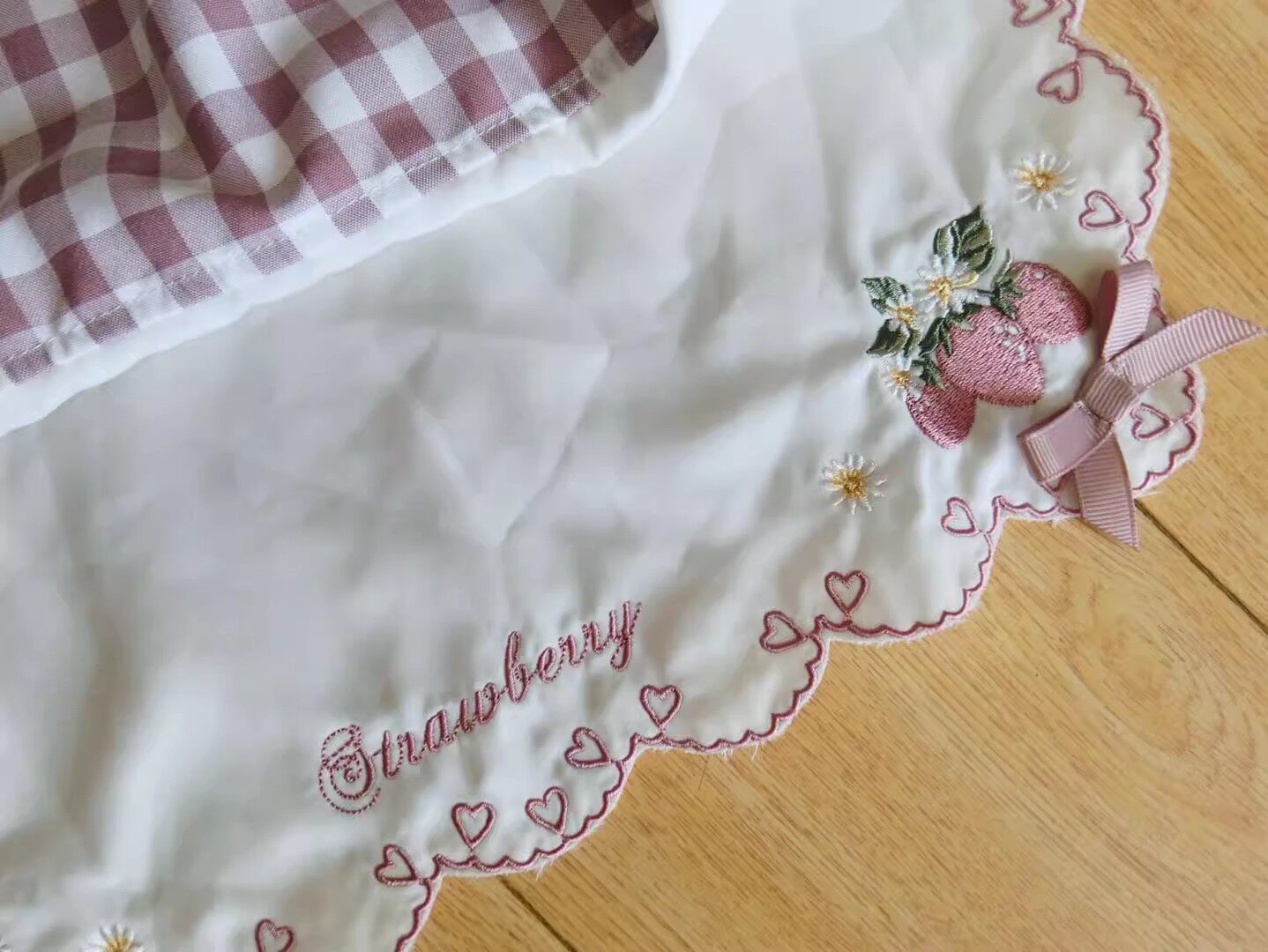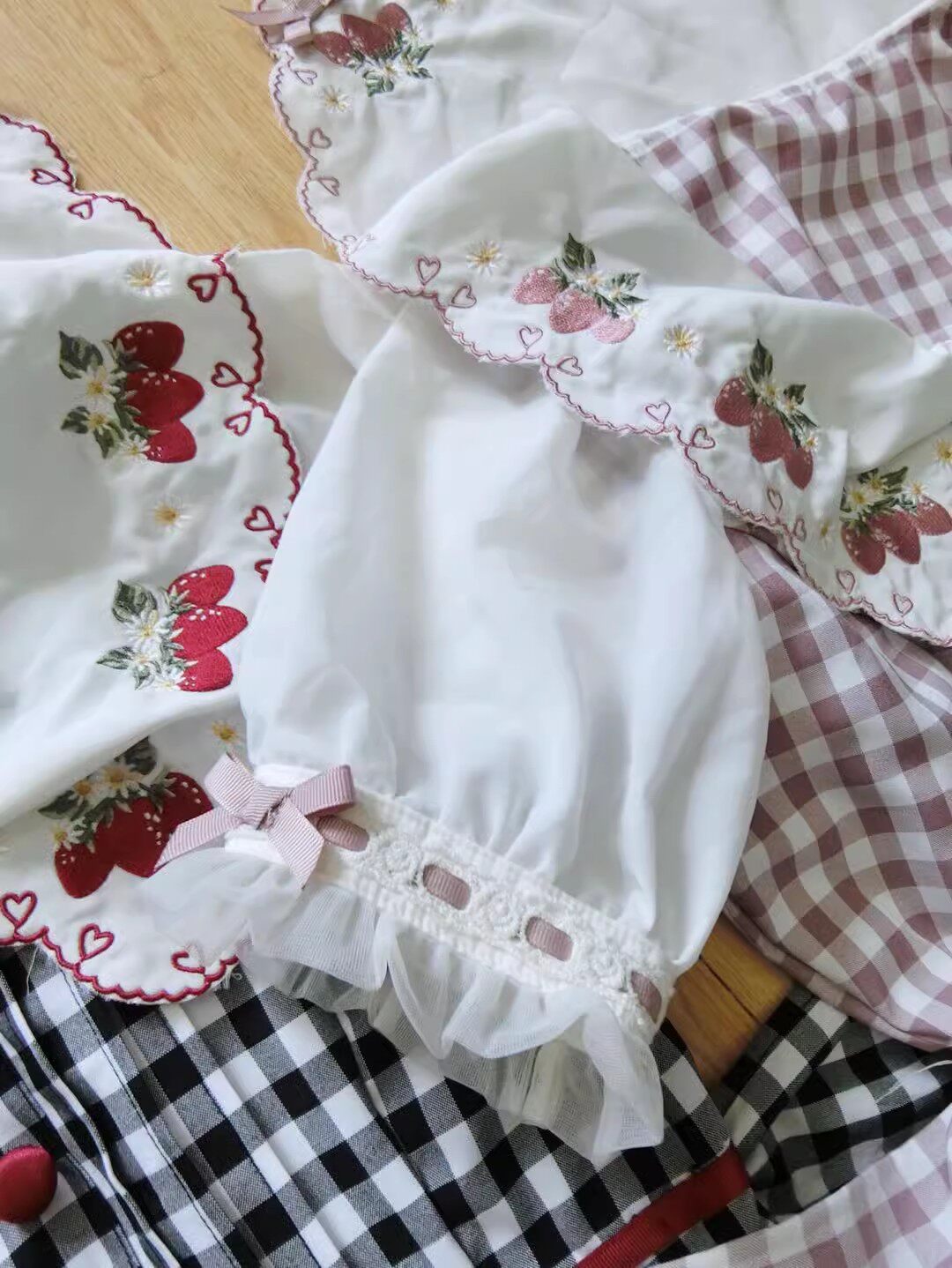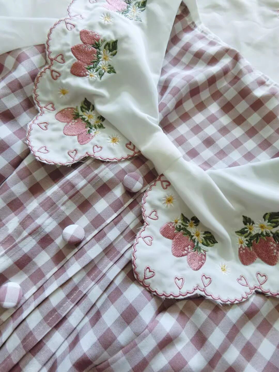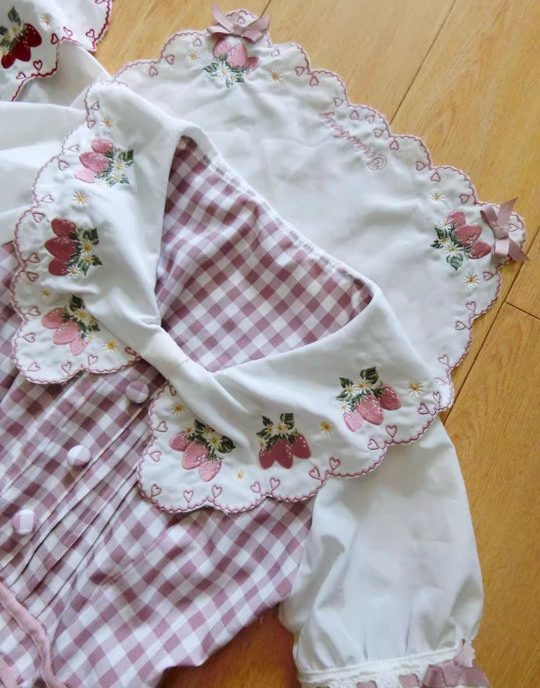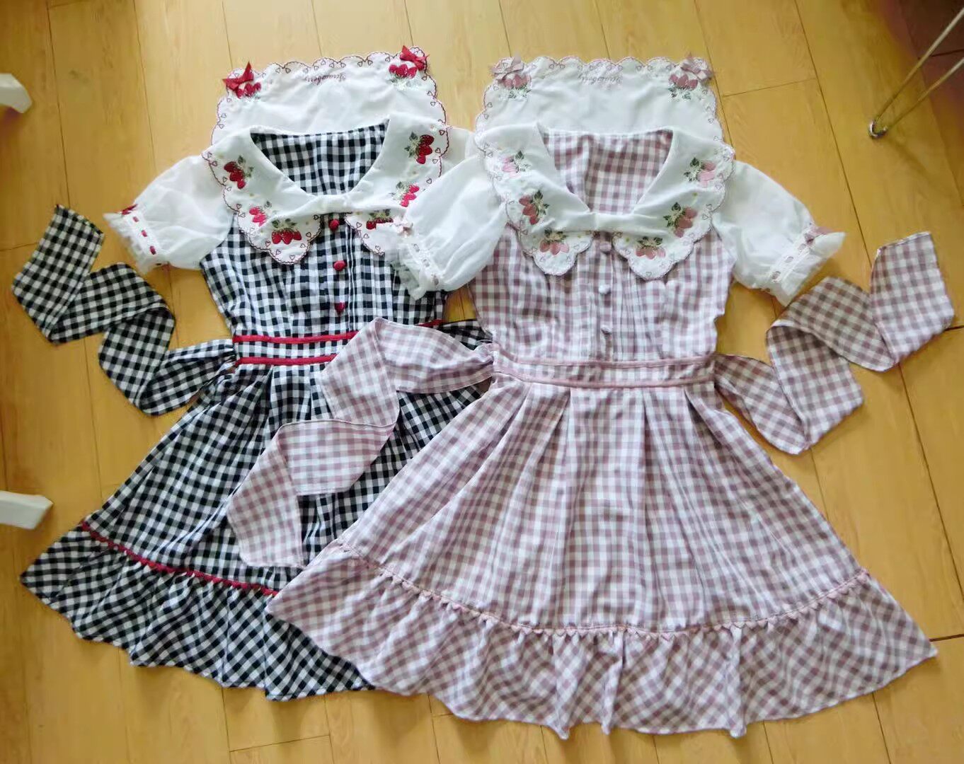 2026夏季日系蝴蝶结甜美草莓刺绣量产型海军领格子连衣裙高腰修身 [Original Page Link]