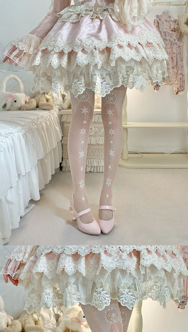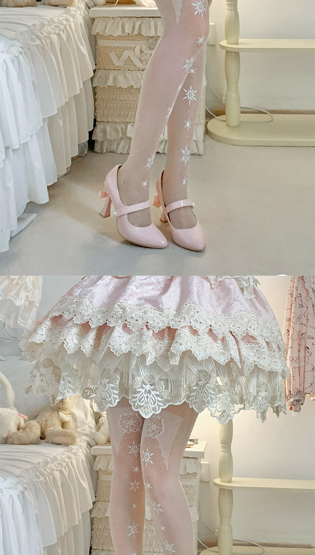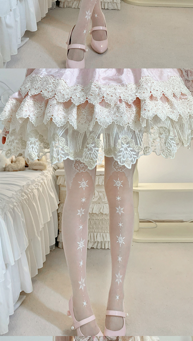 Roji原创雪花洛丽塔袜子女子春夏任何切菠萝袜子洛丽塔日本风格印花连裤袜 [Original Page Link]