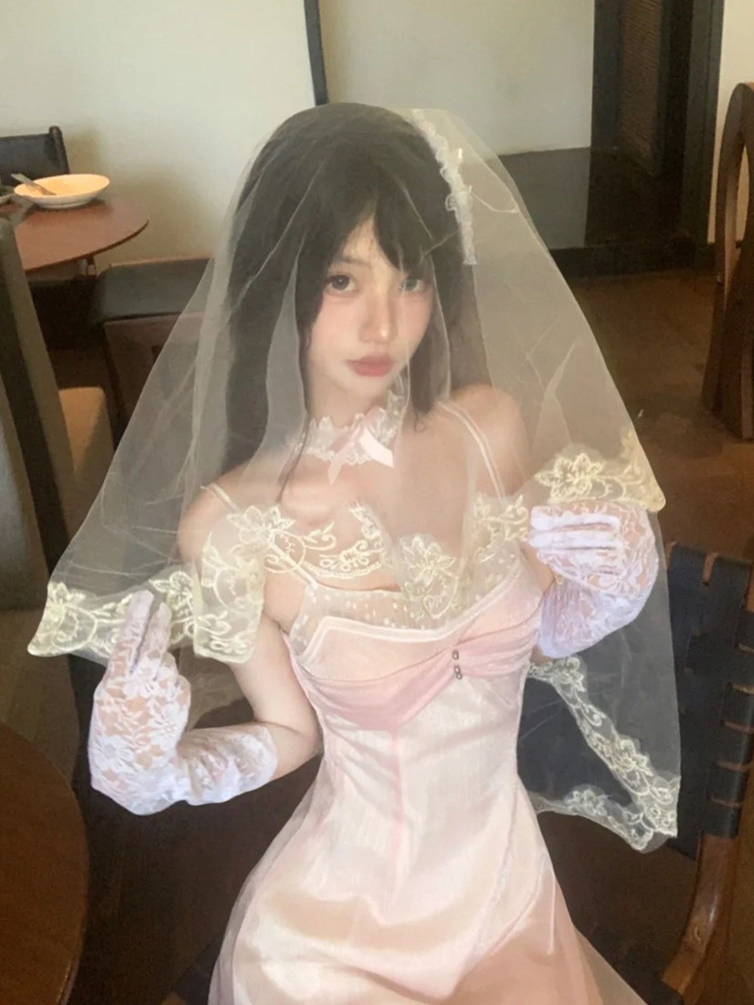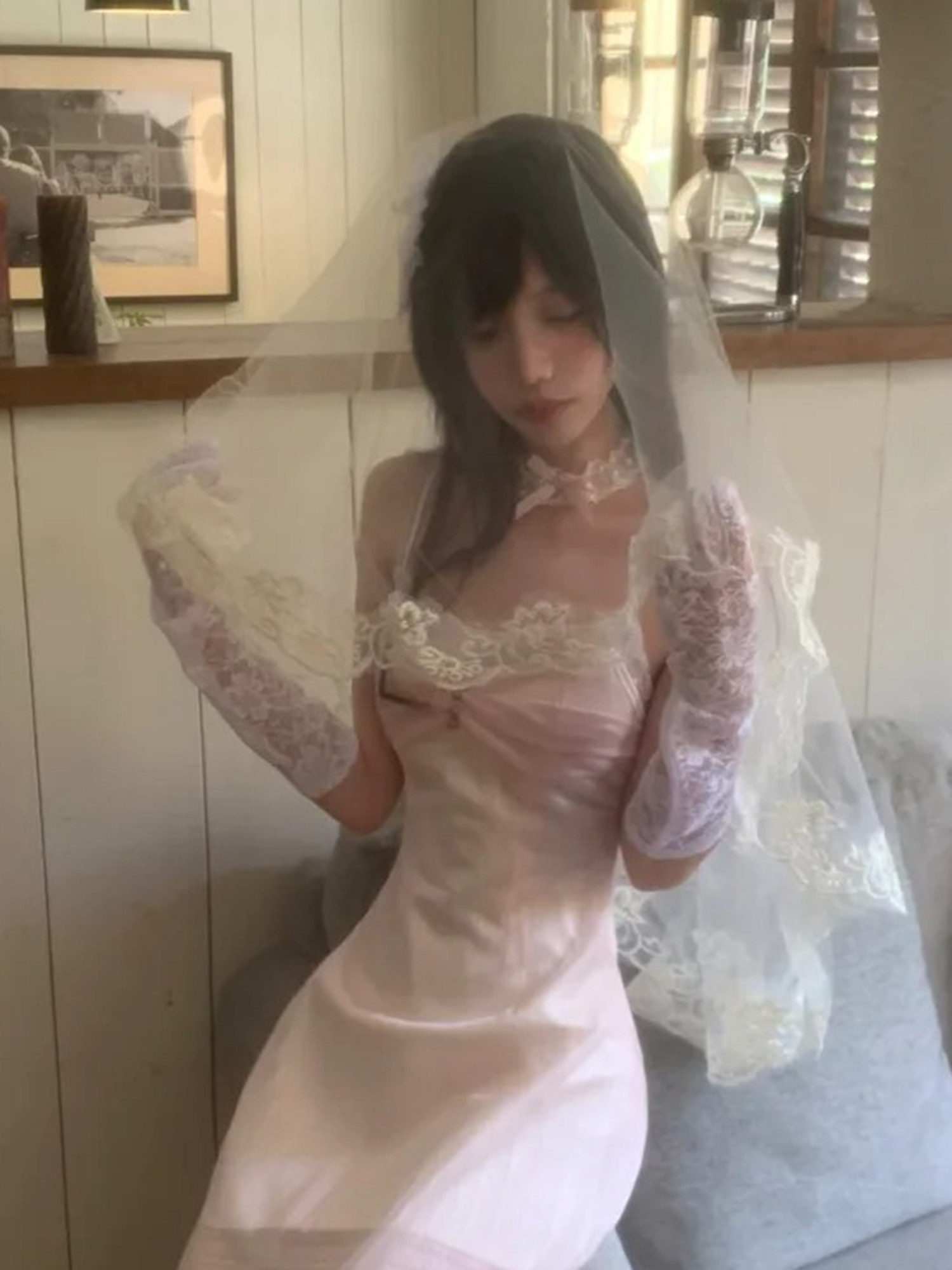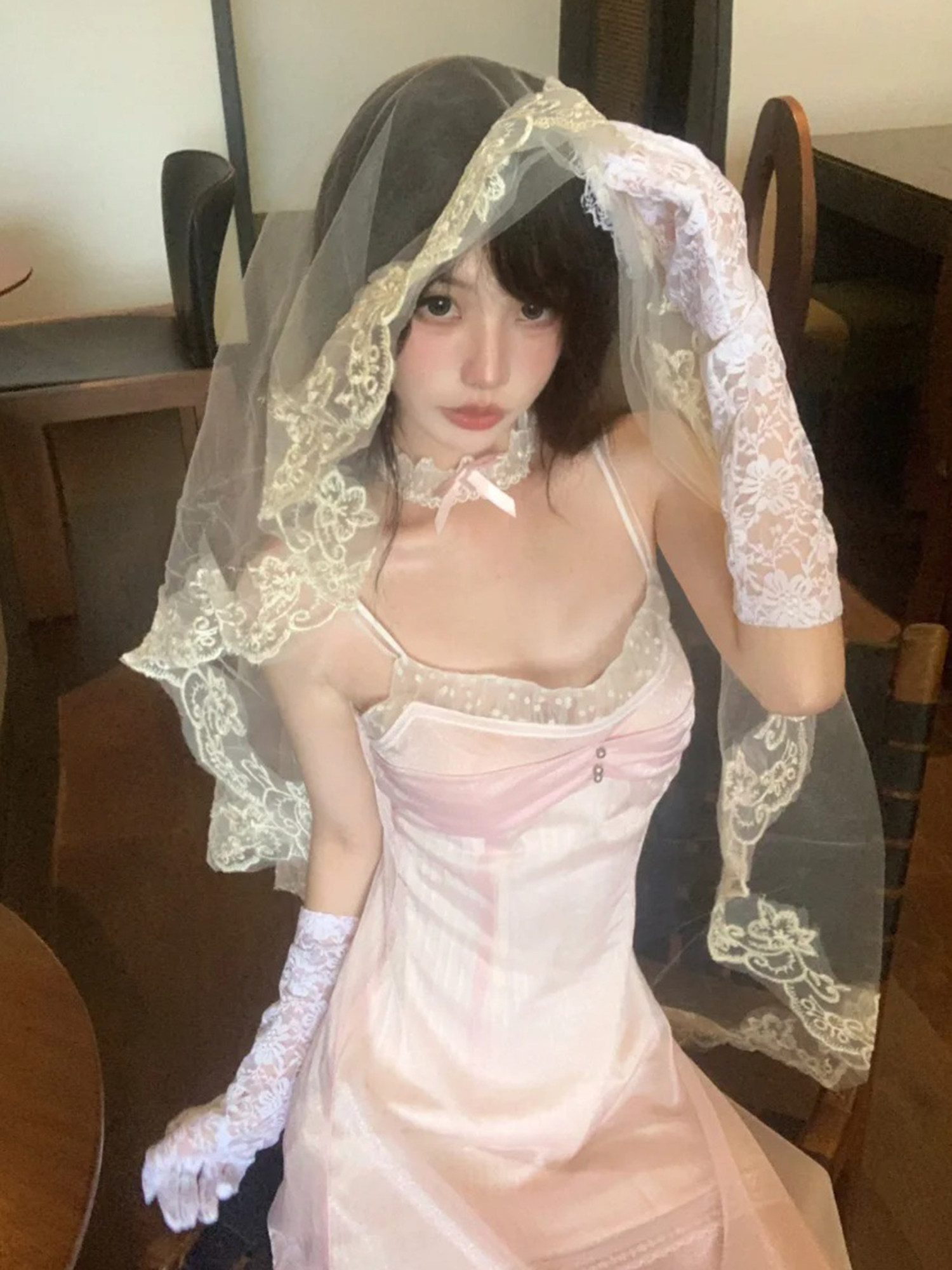 Lolita handmade bridal veil, bride's headdress for marriage registration, white vintage lace headscarf
