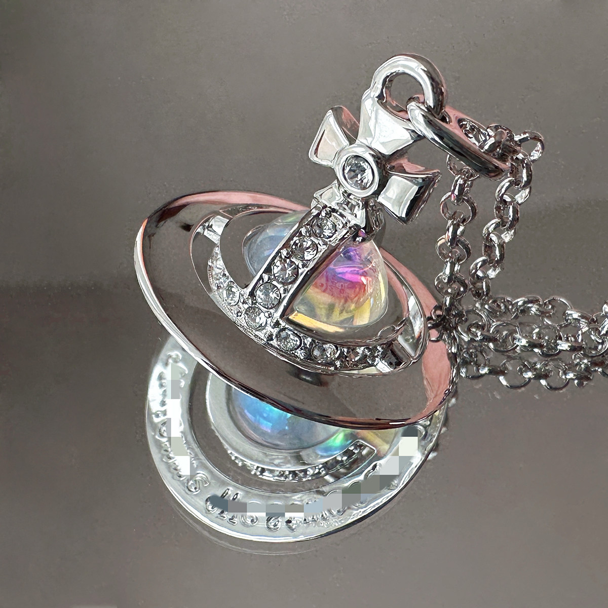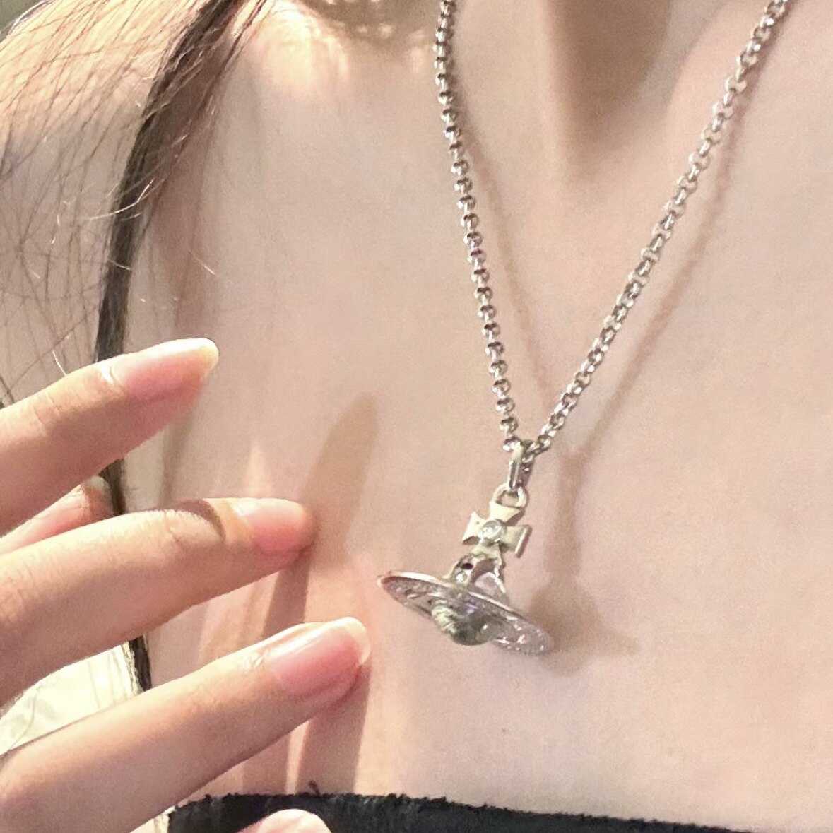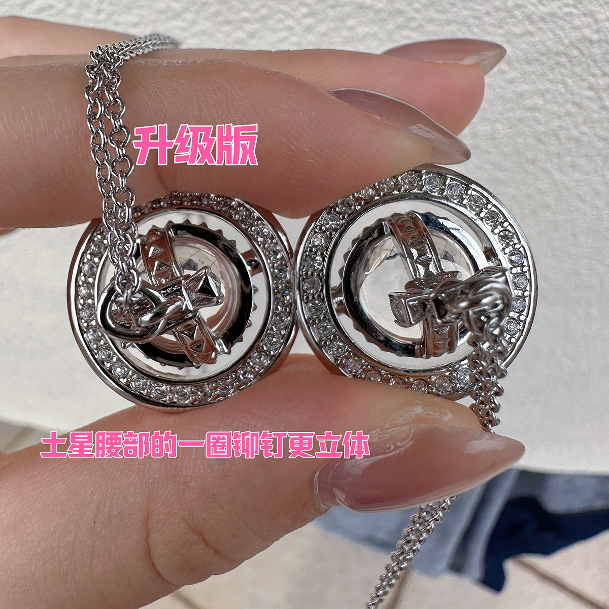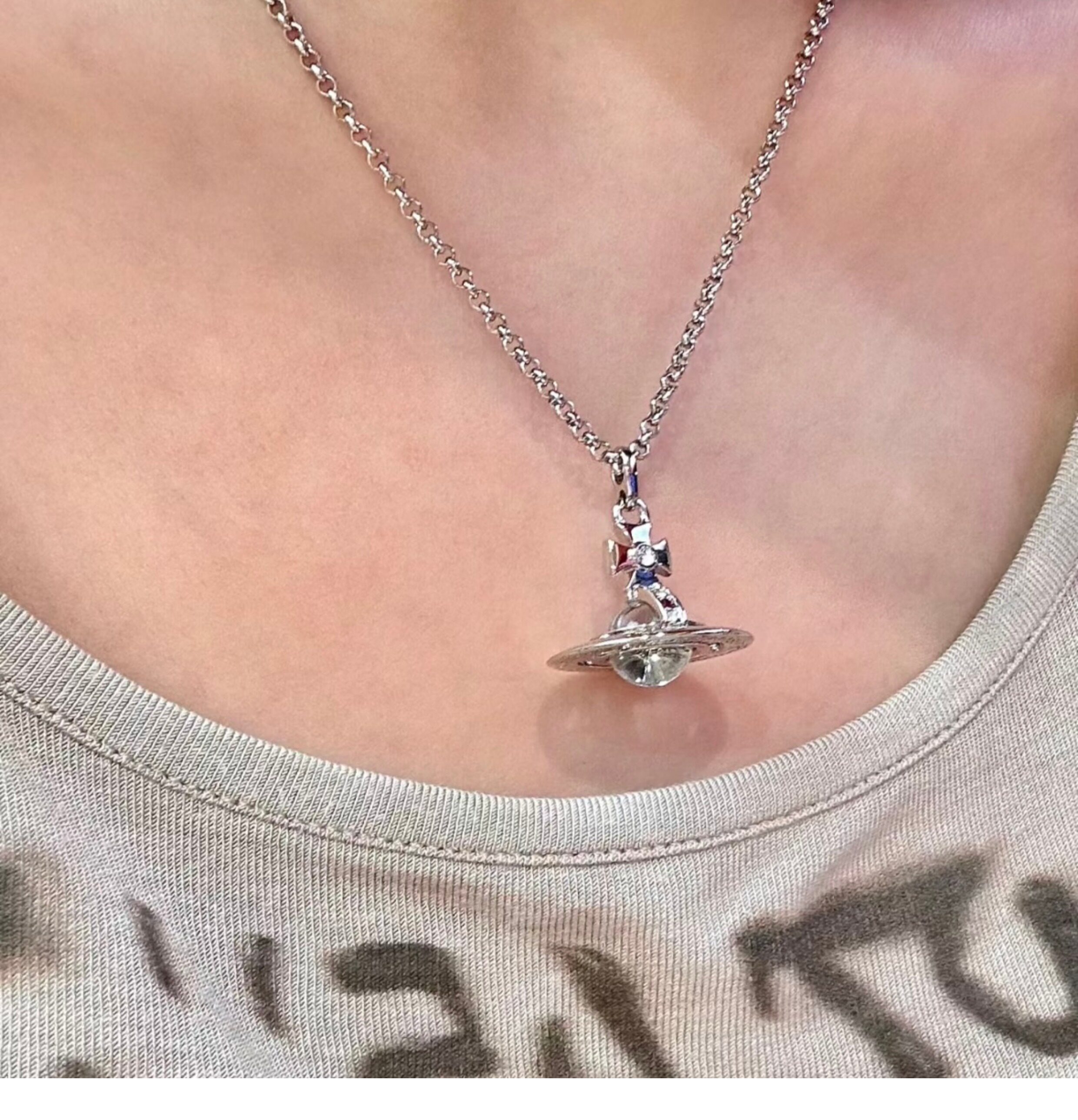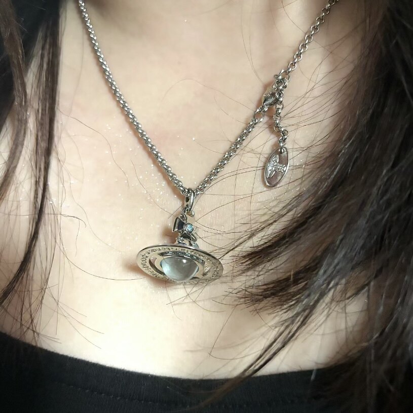 Nastyyuki Saturn-themed medium-sized flying saucer necklace with diamond and glass beads, high-end version, clavicle chain.