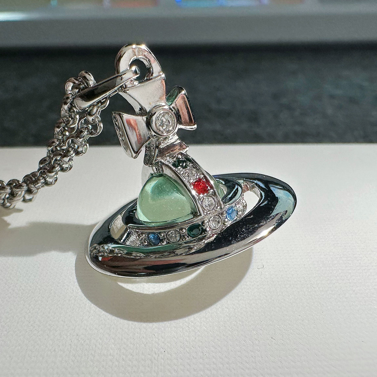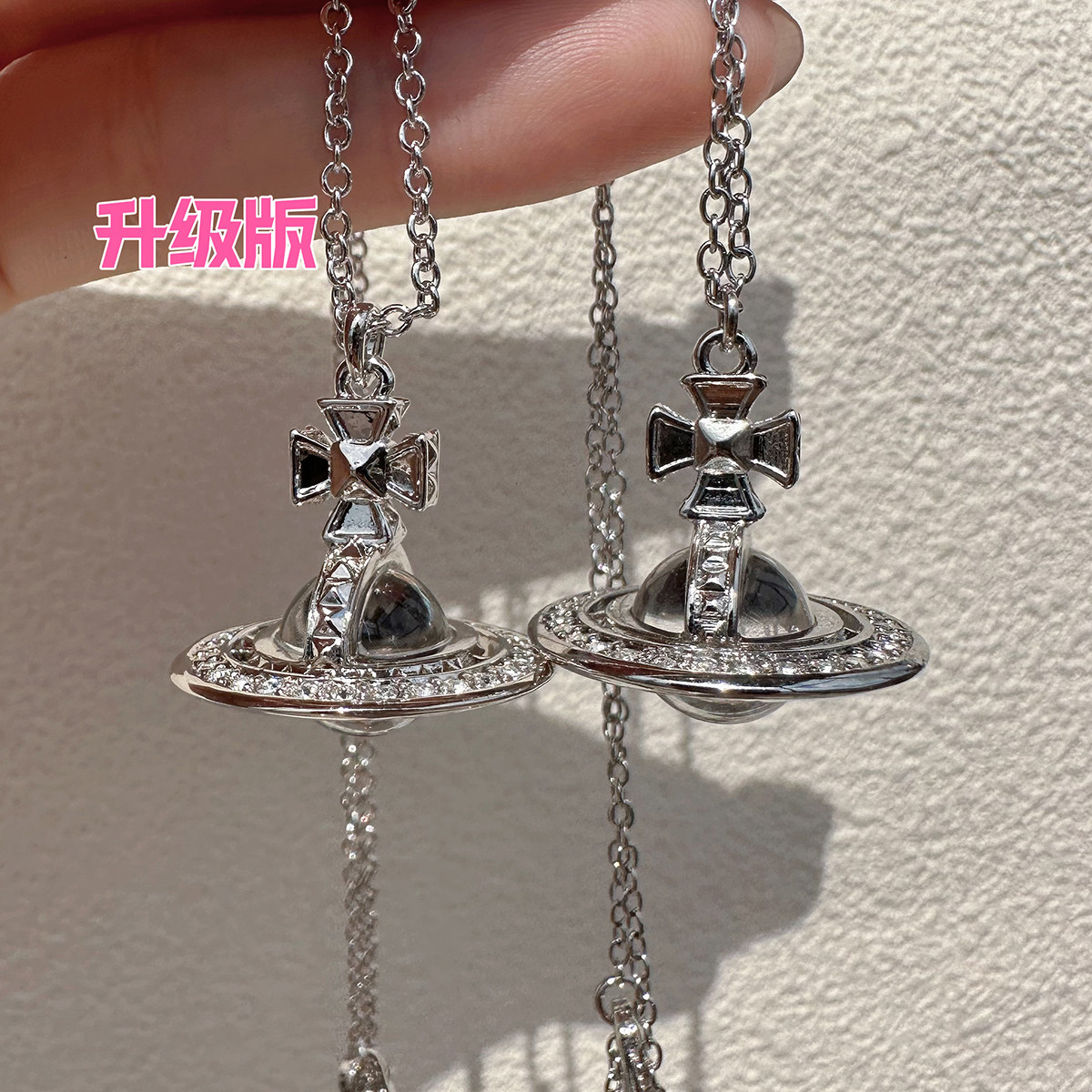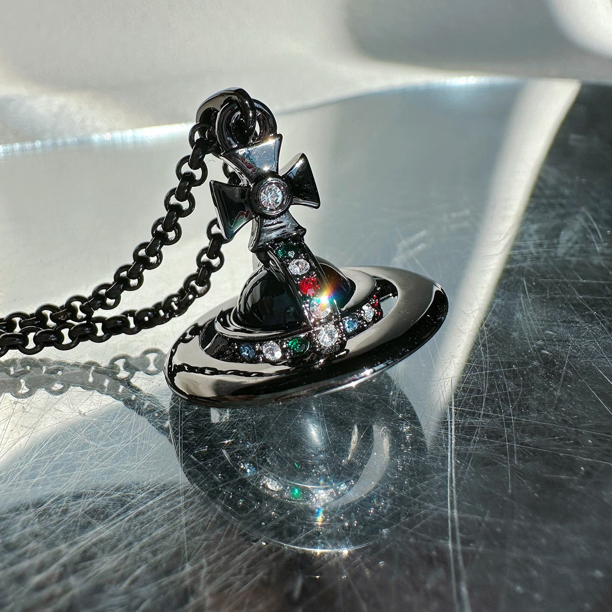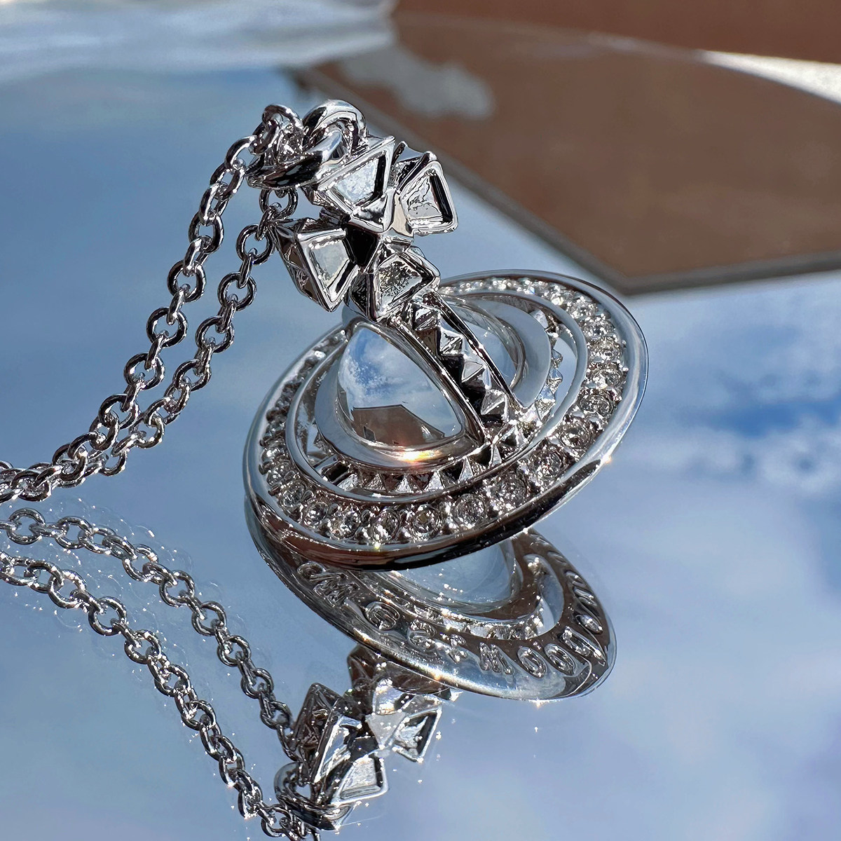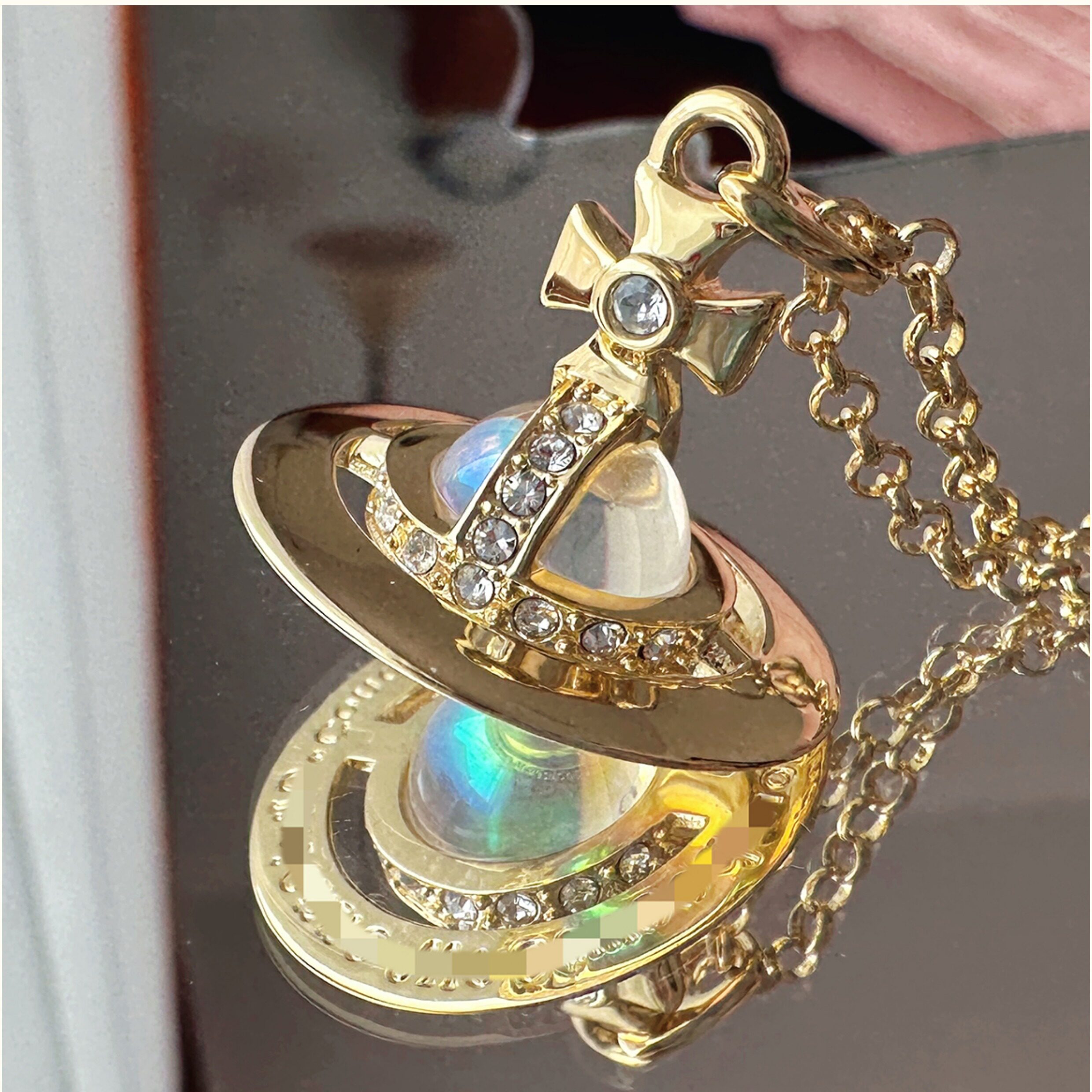 Nastyyuki Saturn-themed medium-sized flying saucer necklace with diamond and glass beads, high-end version, clavicle chain.
