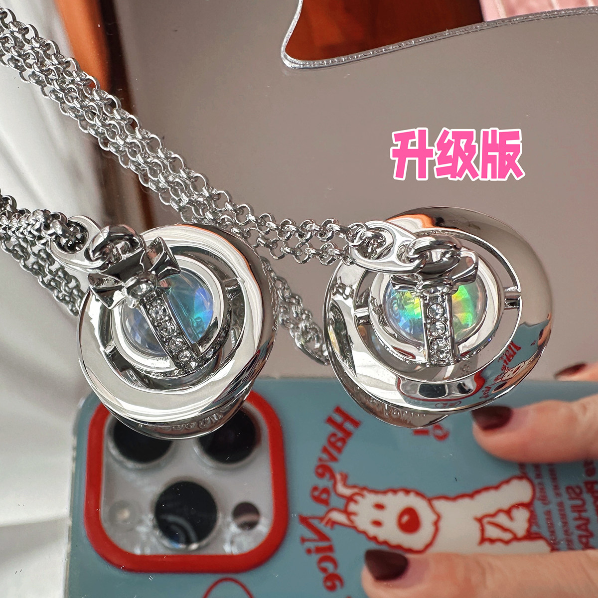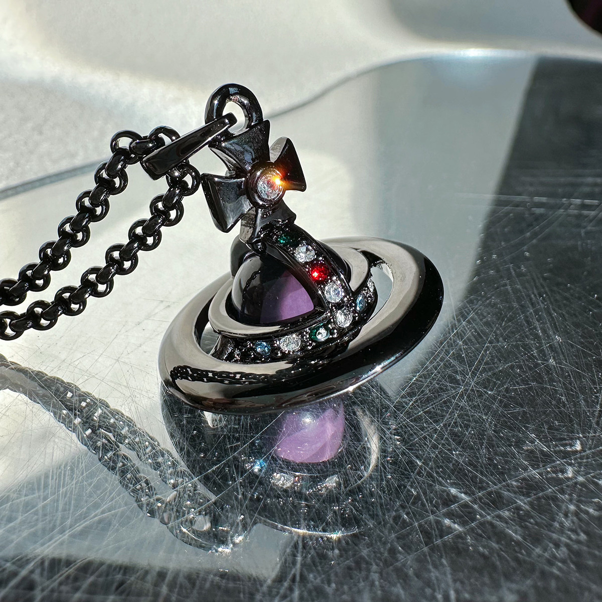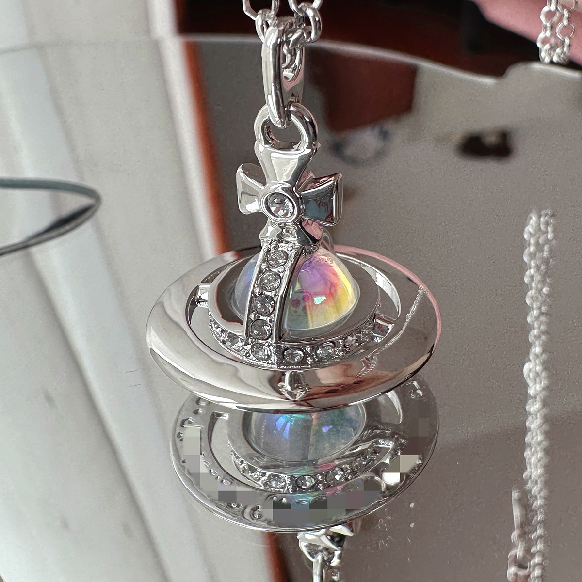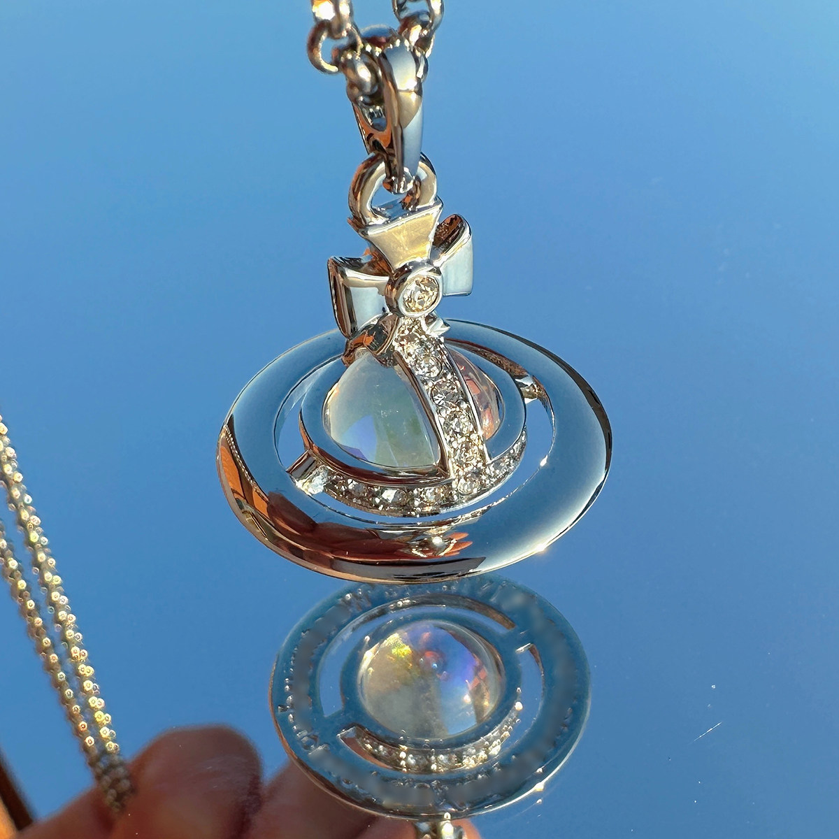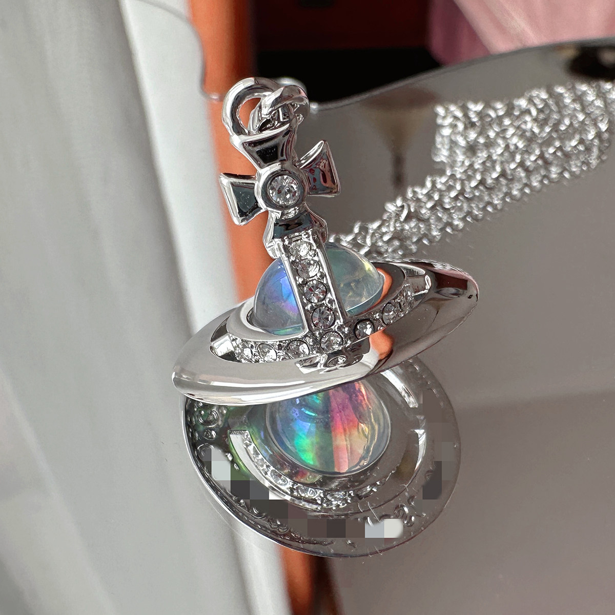 Nastyyuki Saturn-themed medium-sized flying saucer necklace with diamond and glass beads, high-end version, clavicle chain.