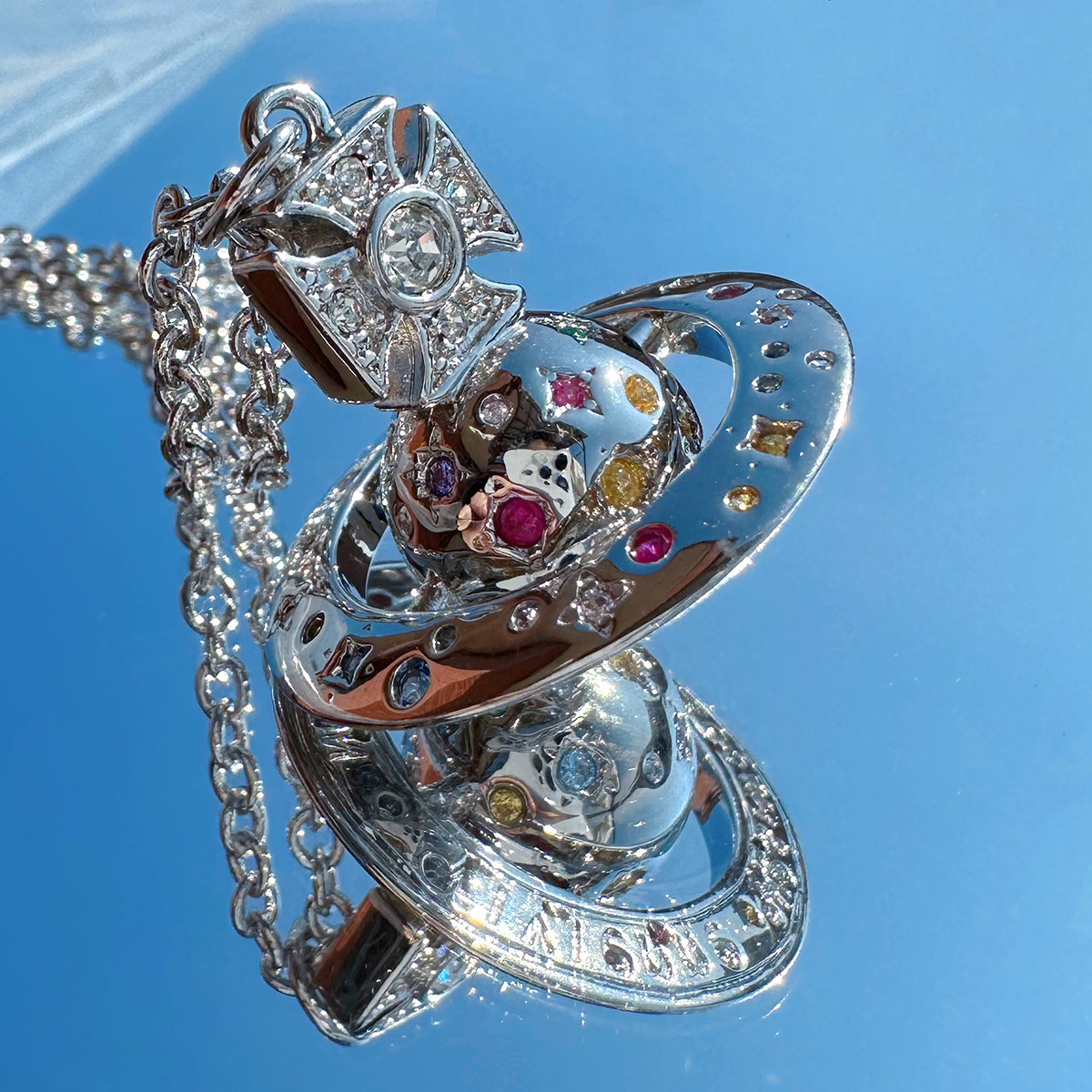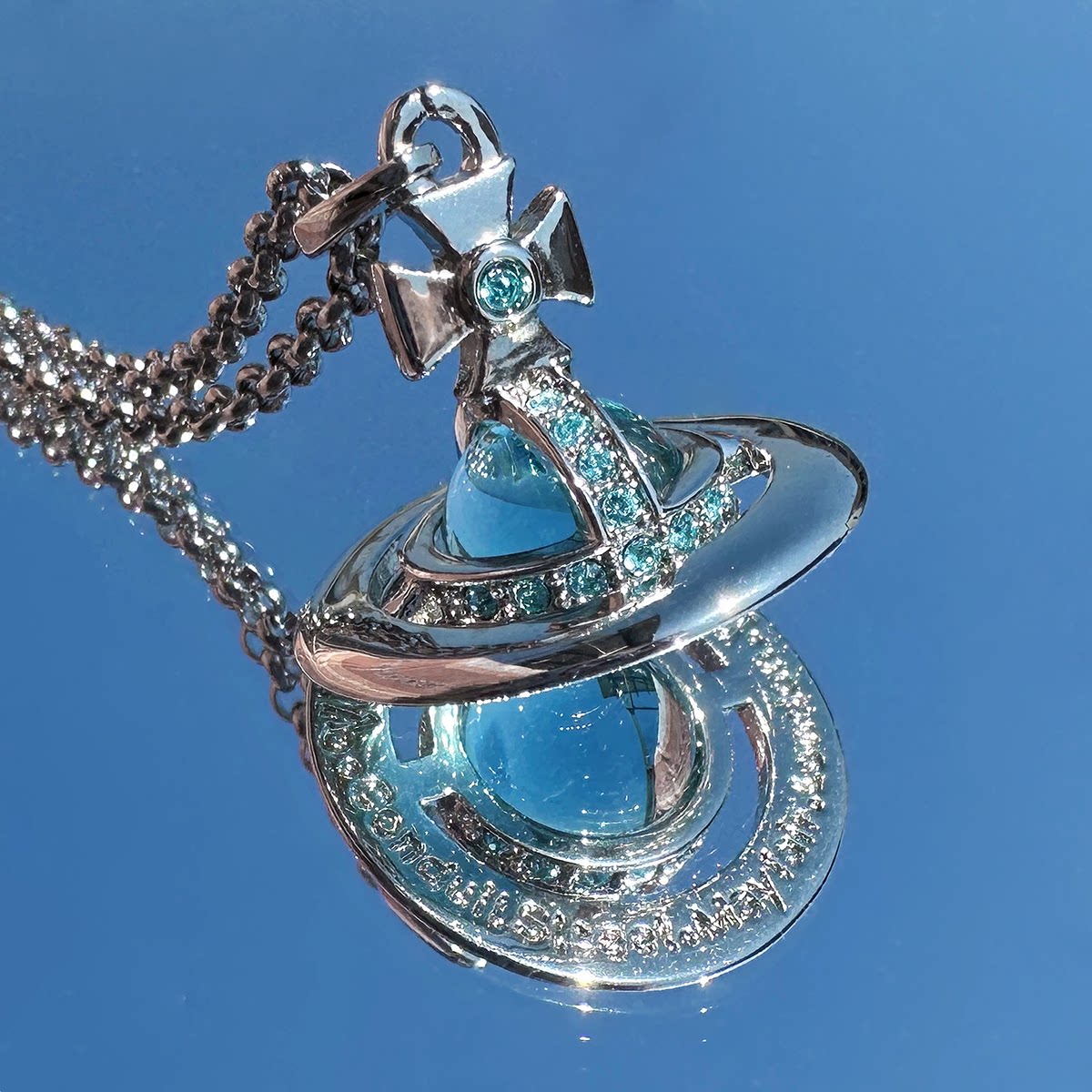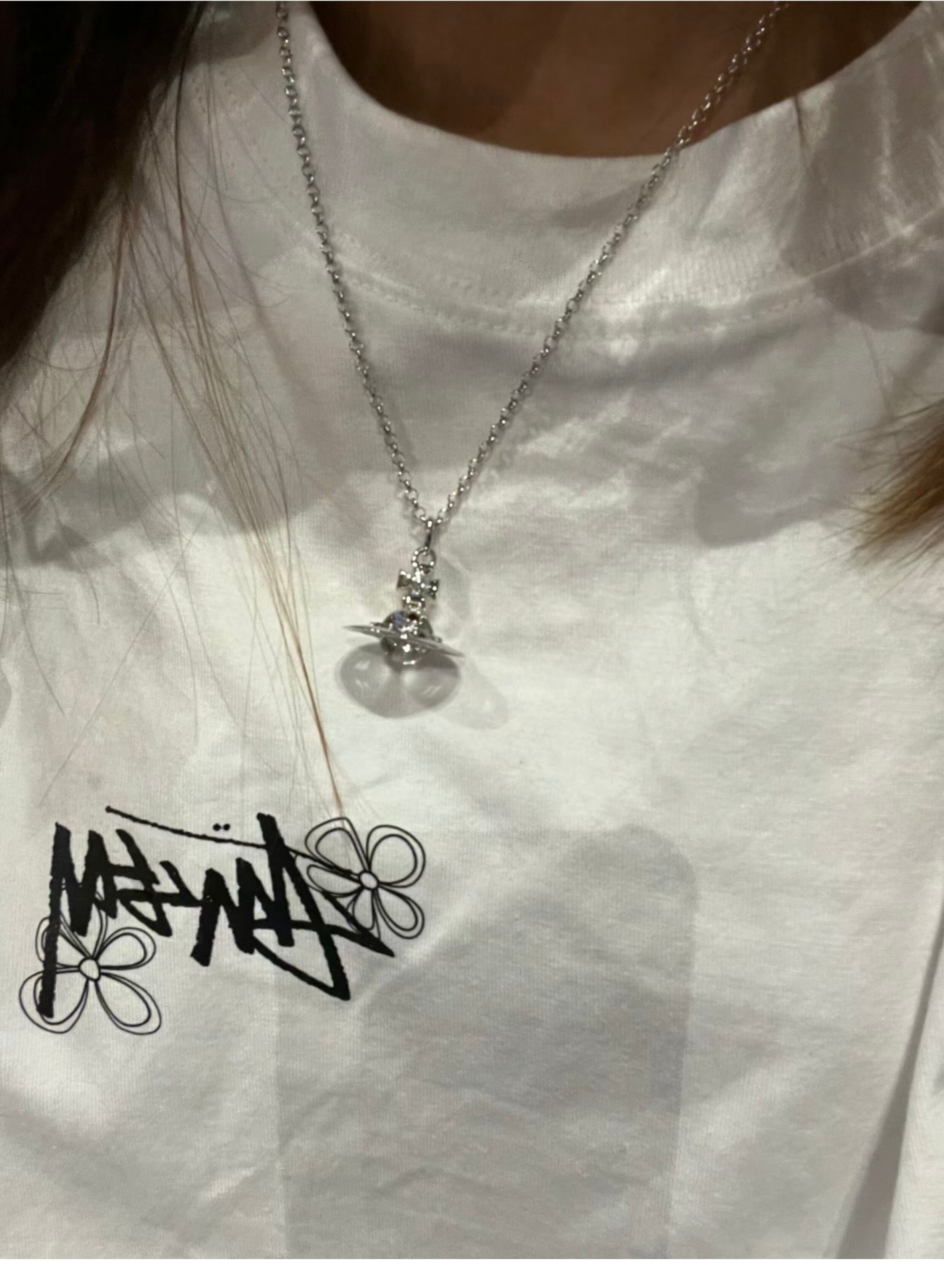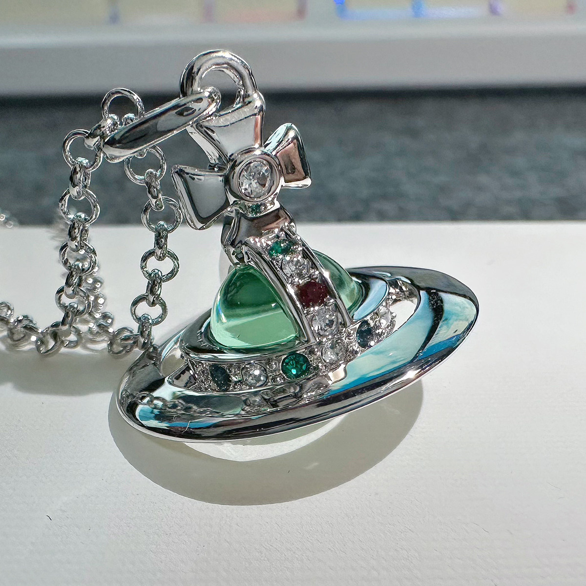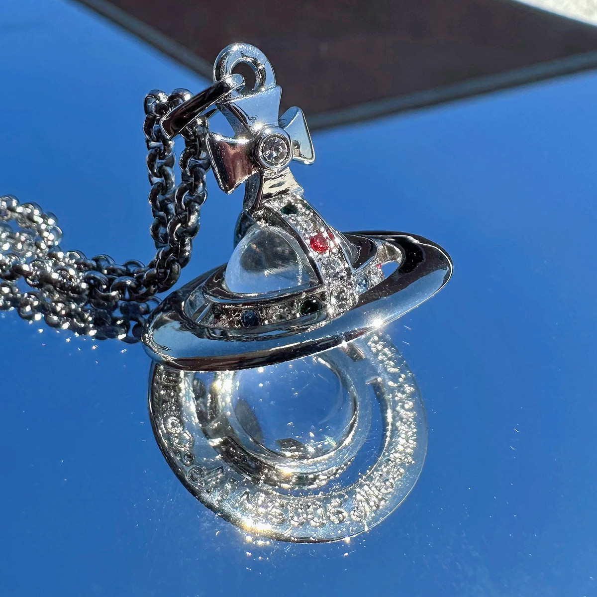 Nastyyuki Saturn-themed medium-sized flying saucer necklace with diamond and glass beads, high-end version, clavicle chain.