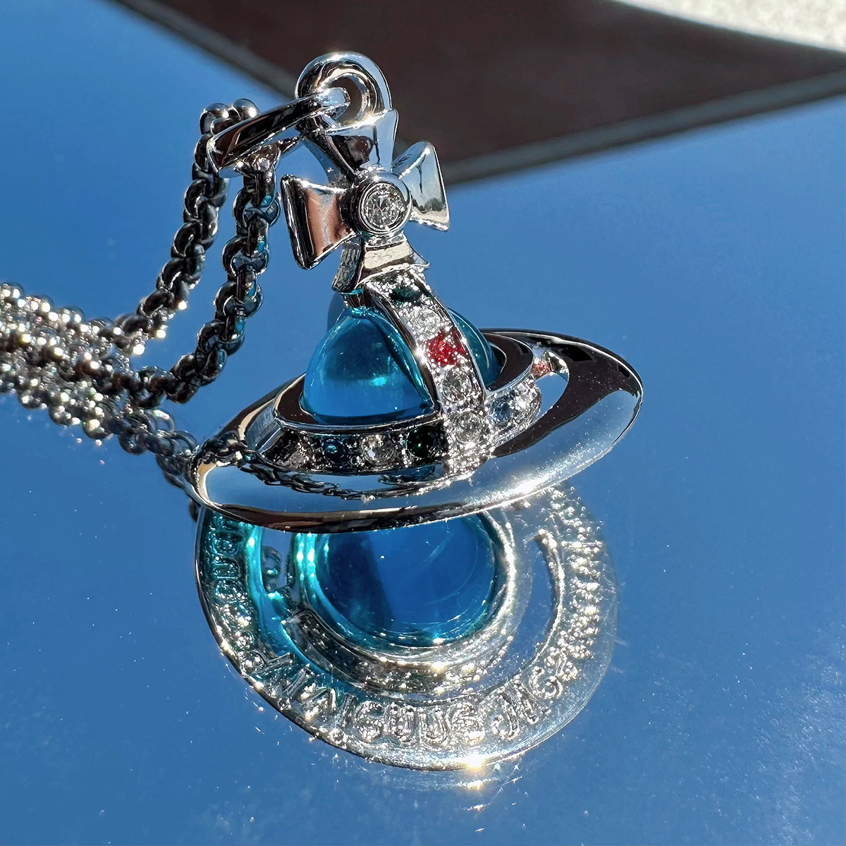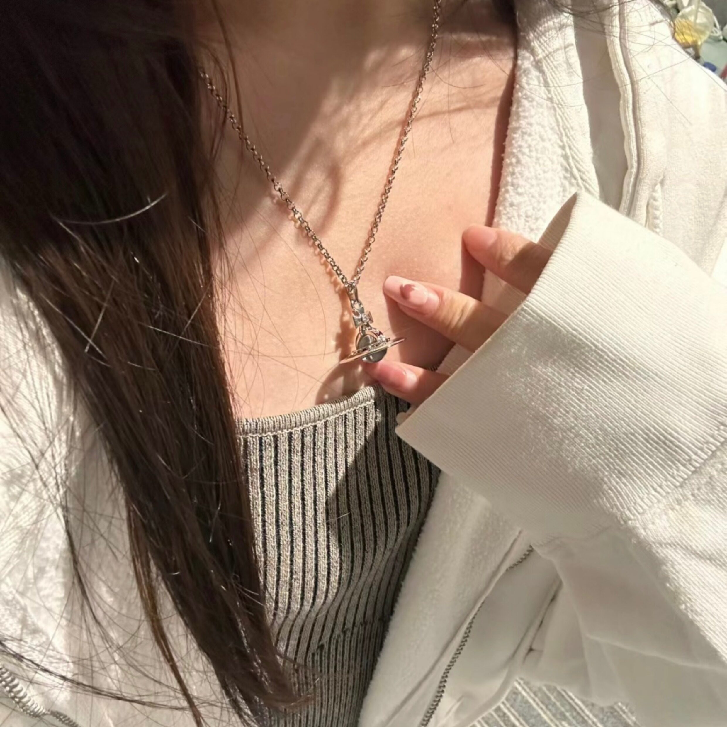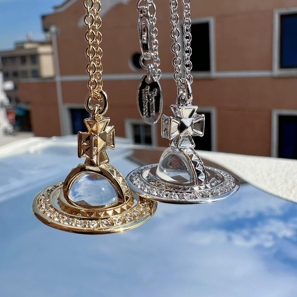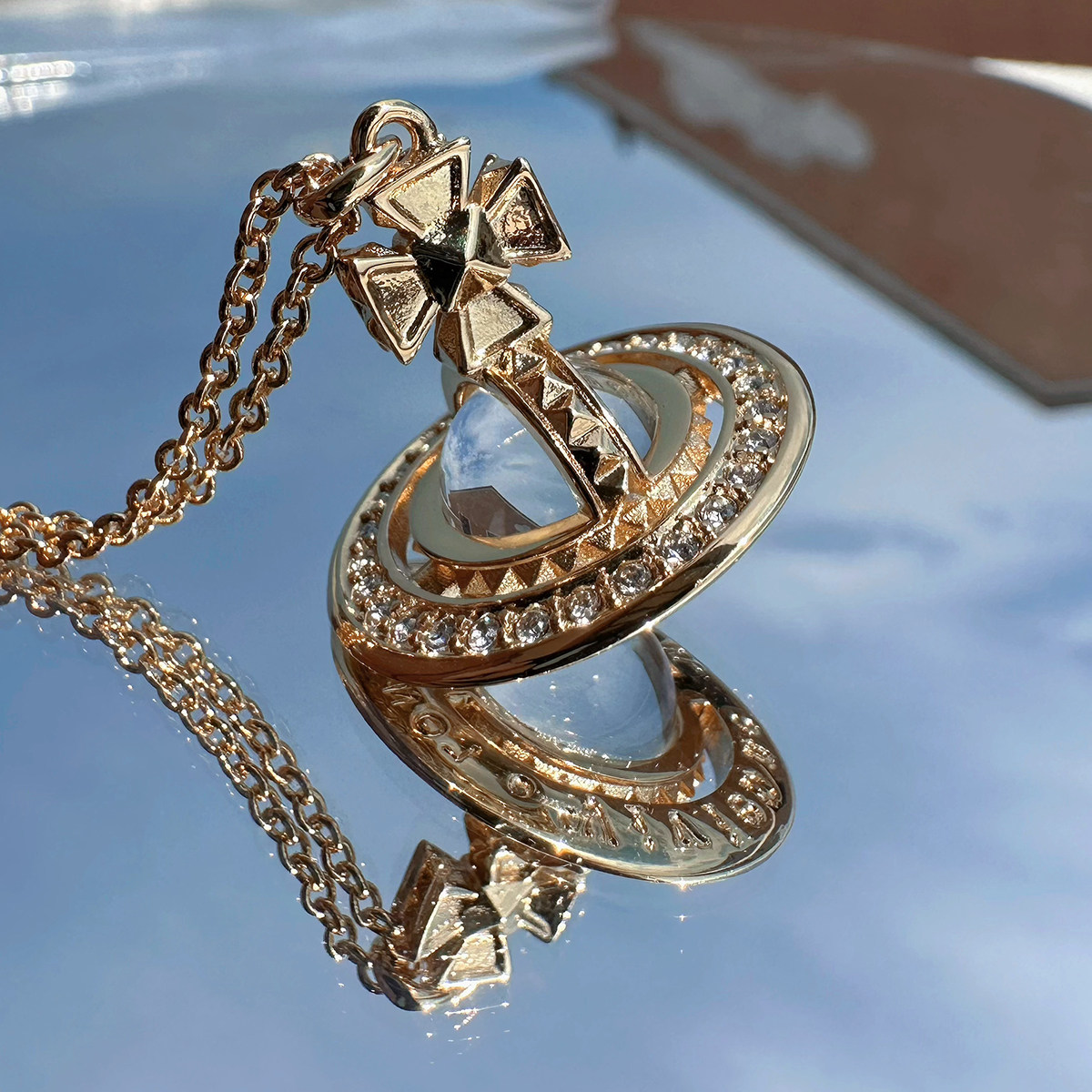 Nastyyuki Saturn-themed medium-sized flying saucer necklace with diamond and glass beads, high-end version, clavicle chain.