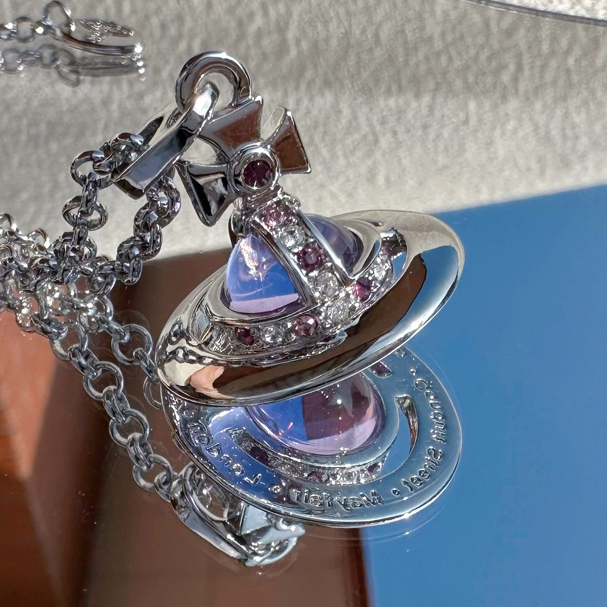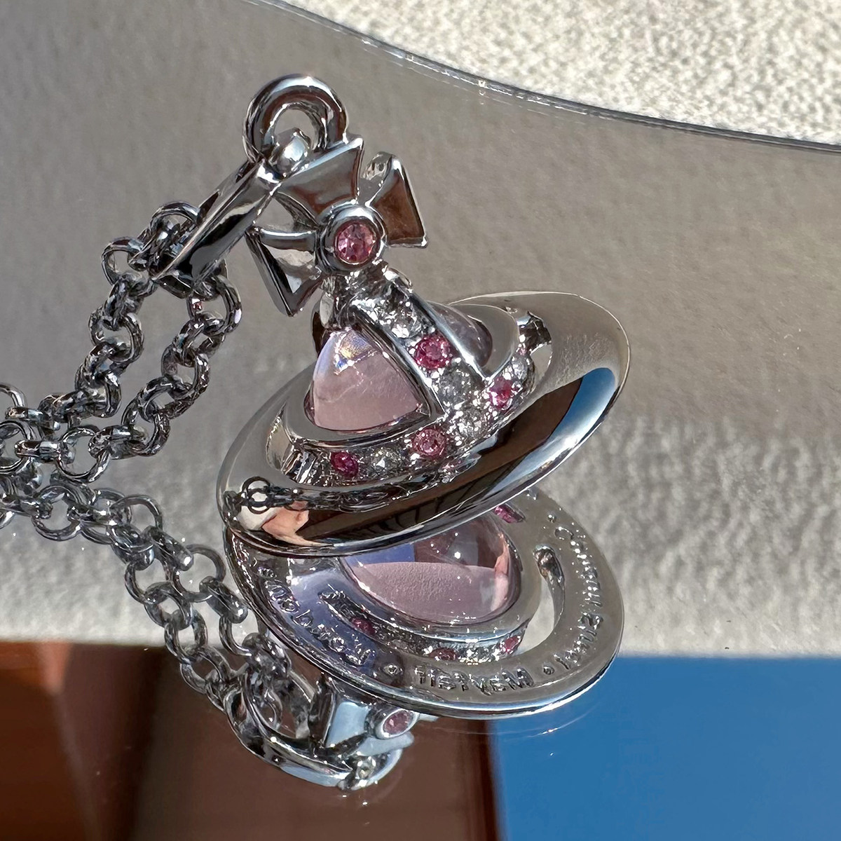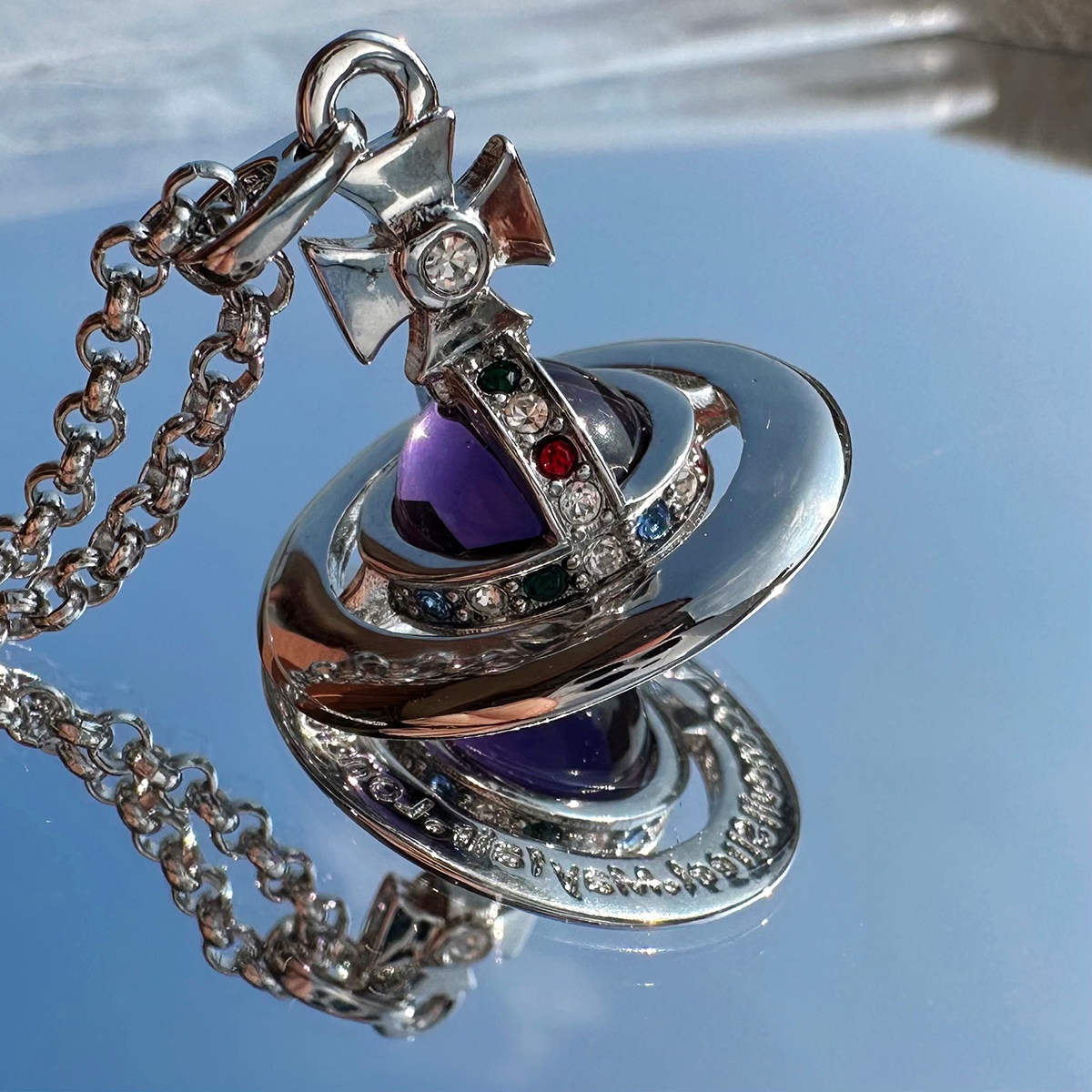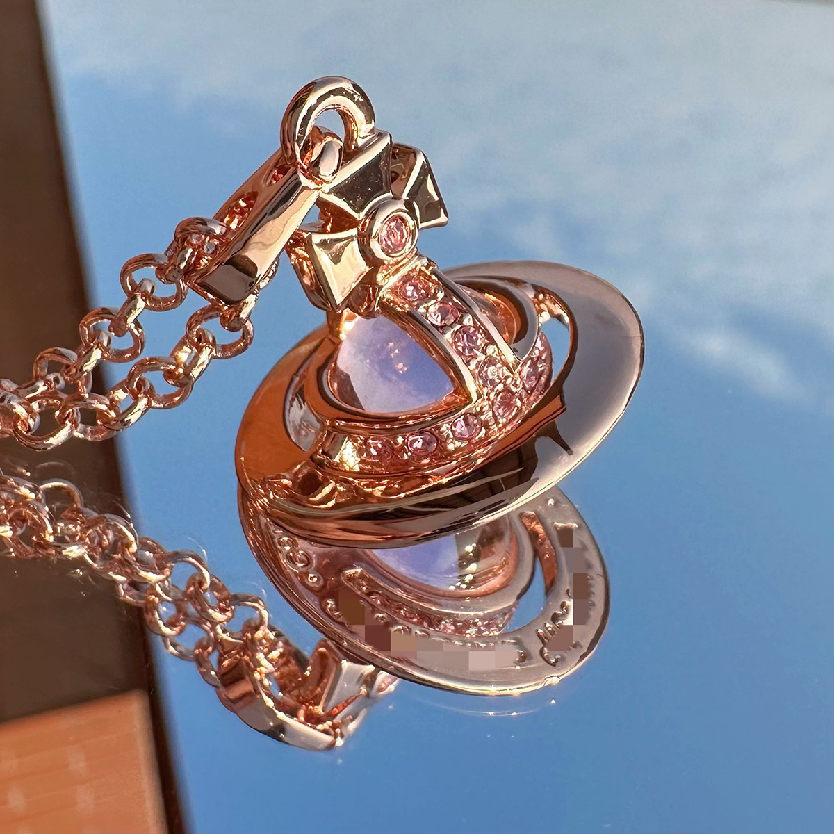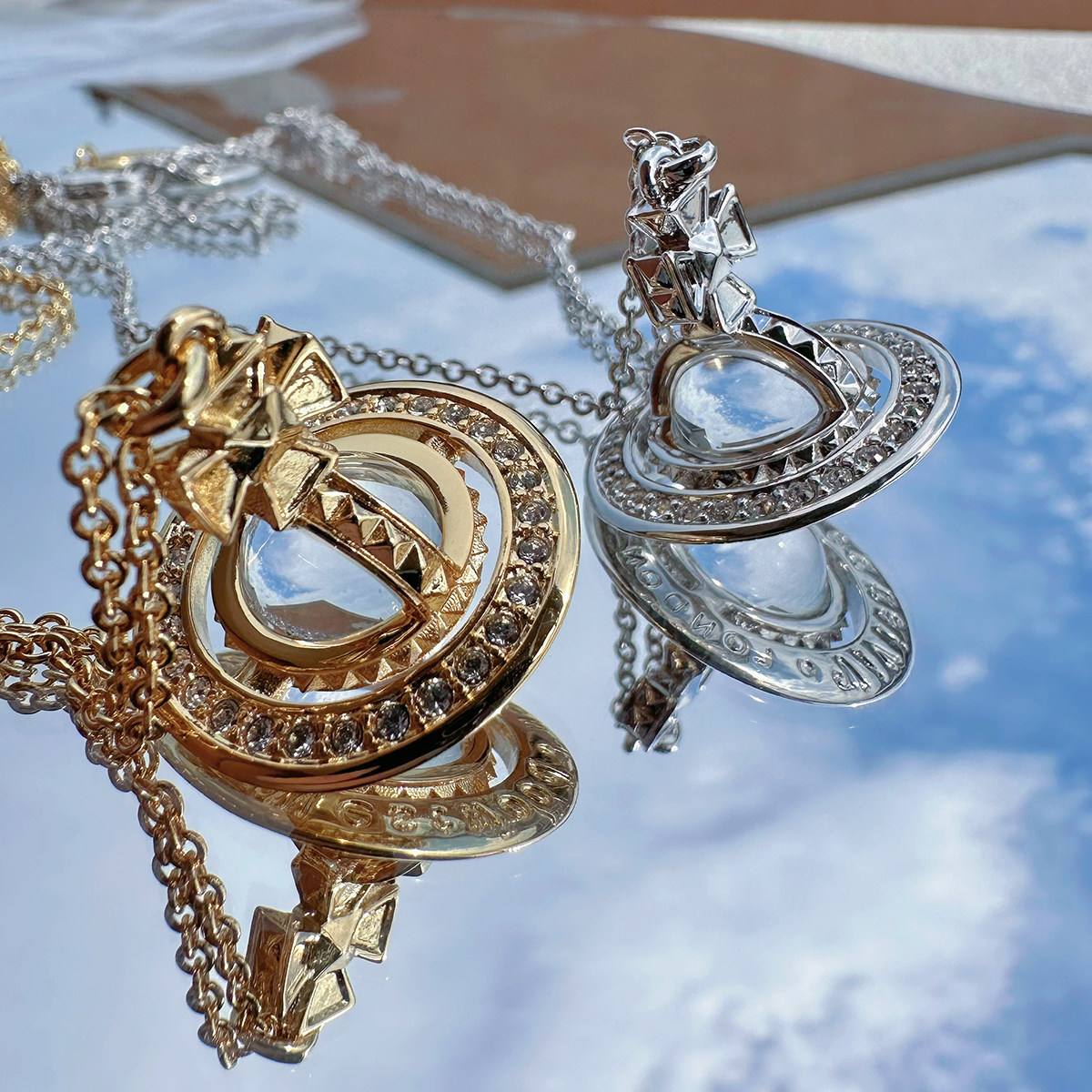 Nastyyuki Saturn-themed medium-sized flying saucer necklace with diamond and glass beads, high-end version, clavicle chain.