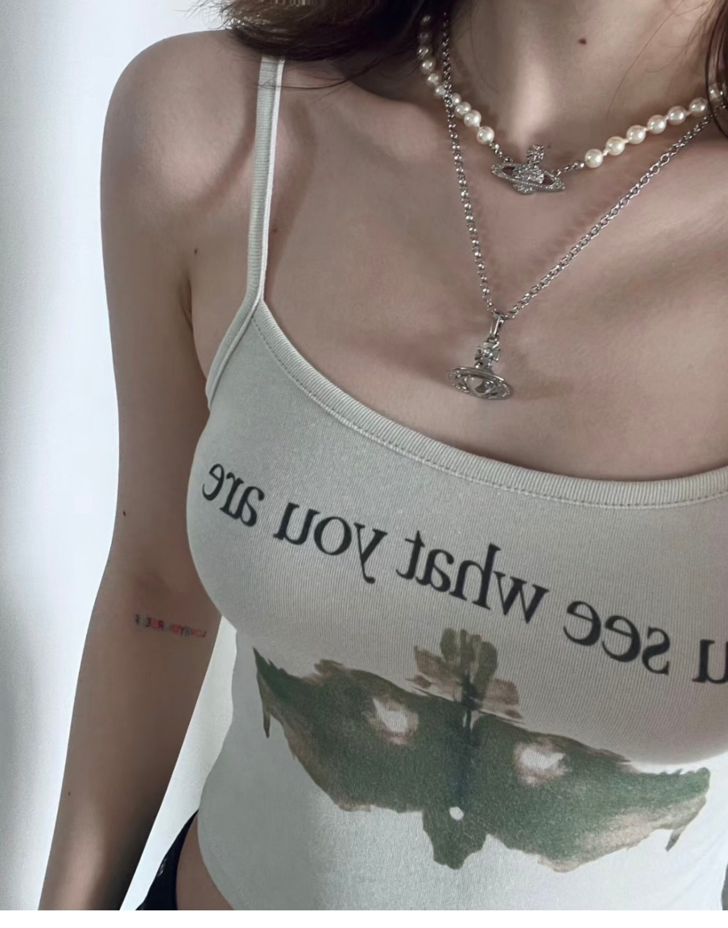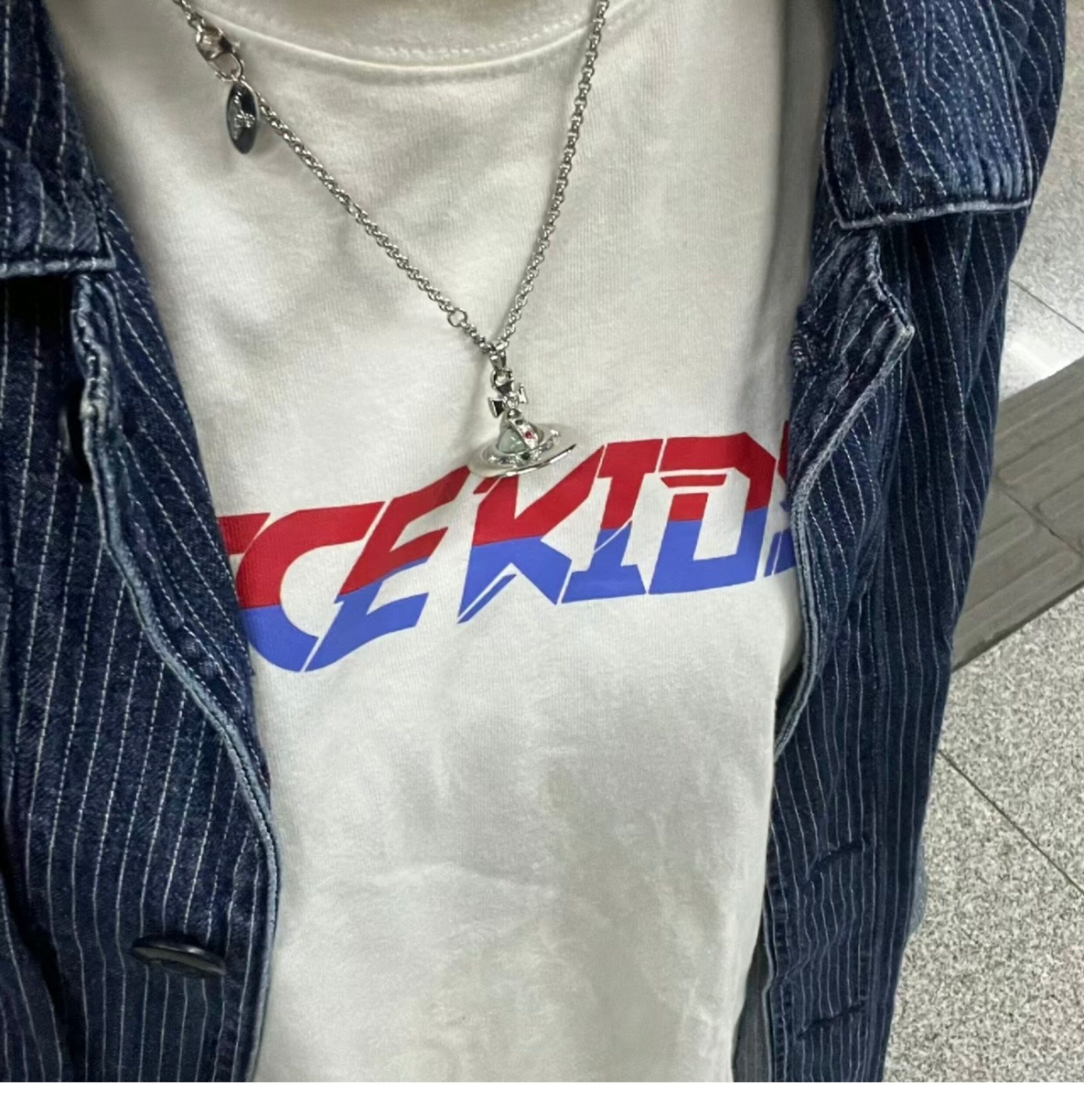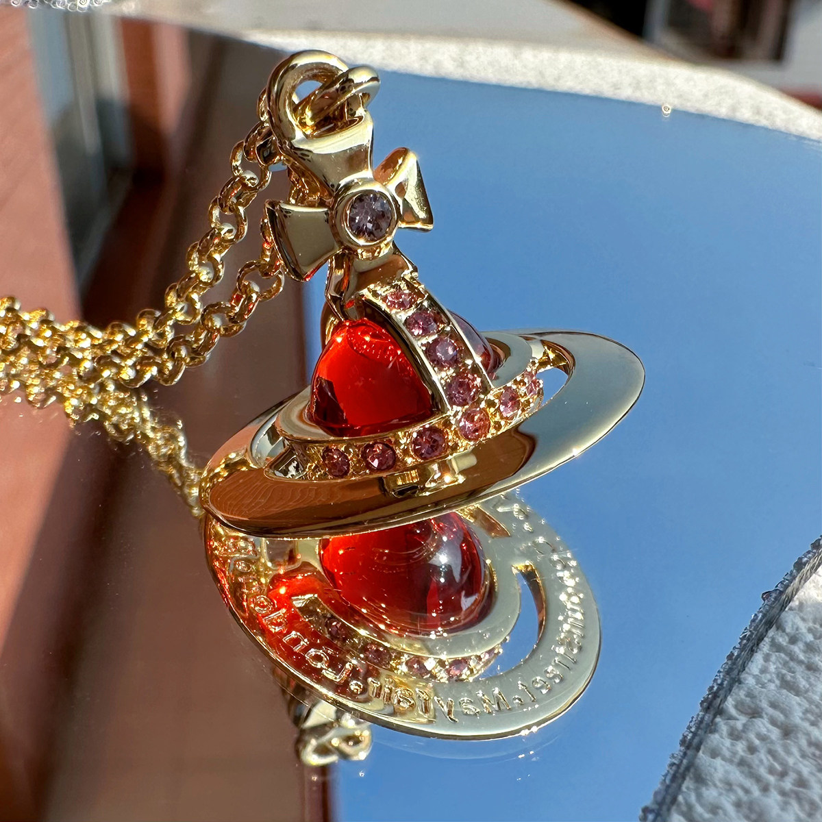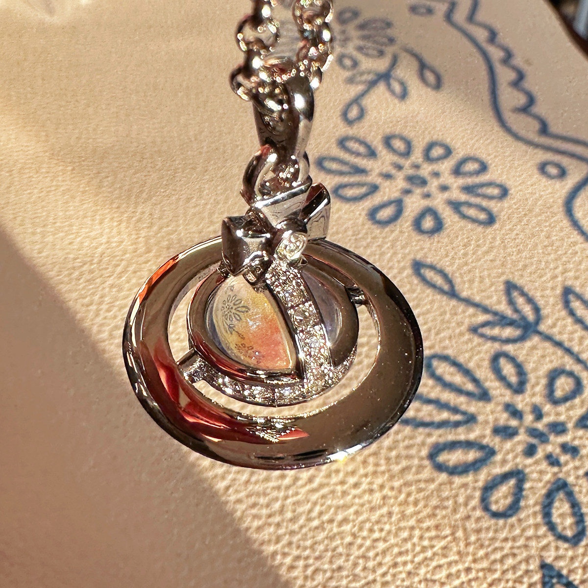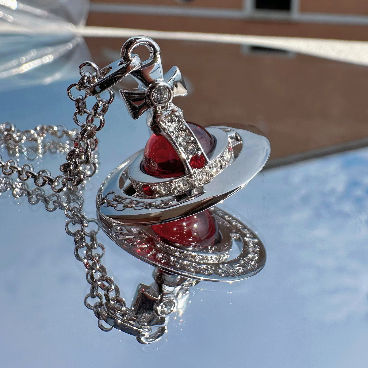 Nastyyuki Saturn-themed medium-sized flying saucer necklace with diamond and glass beads, high-end version, clavicle chain.